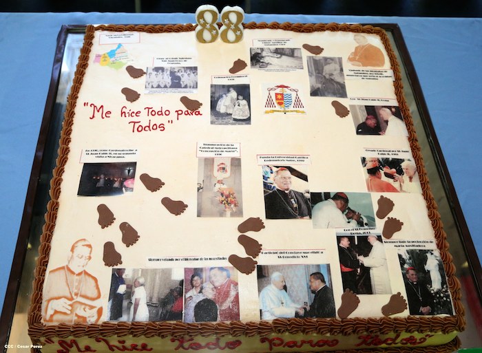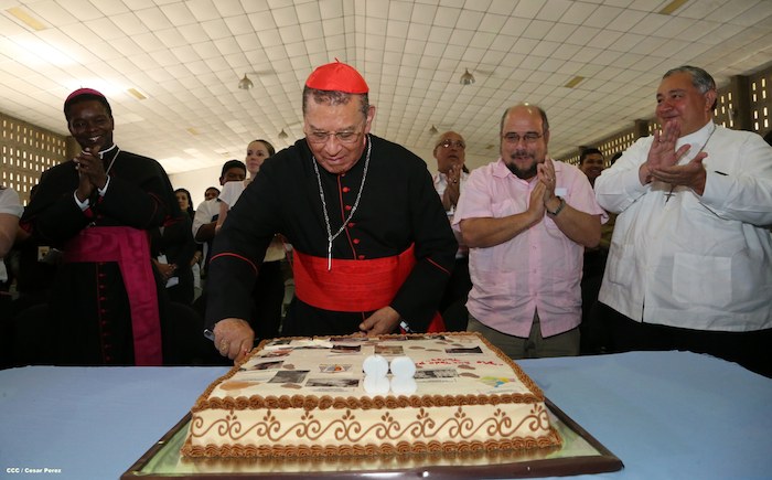 La comunidad educativa y las autoridades de la Universidad Católica (UNICA) homenajearon a Su Eminencia Reverendísima Cardenal Miguel Obando y Bravo, quien el próximo 2 de febrero estará celebrando su aniversario natal numero 88, en compañía de amigos y seres queridos.