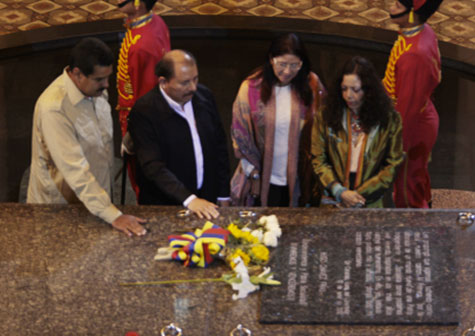 El Presidente Daniel Ortega y la Compañera Rosario Murillo, visitaron el Cuartel 4F en Venezuela y rindieron tributo al Líder de la Revolución Bolivariana, Comandante Hugo Chávez