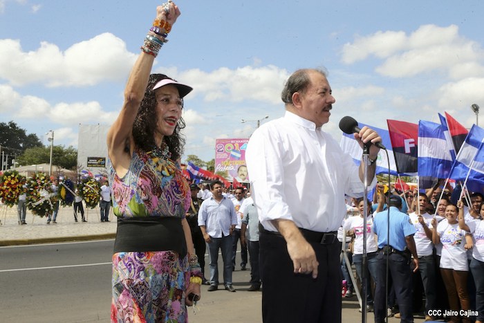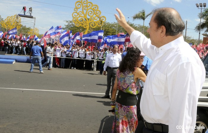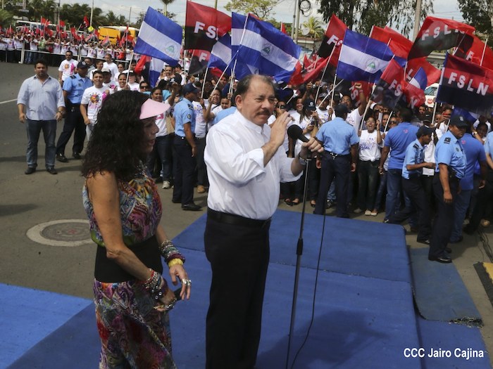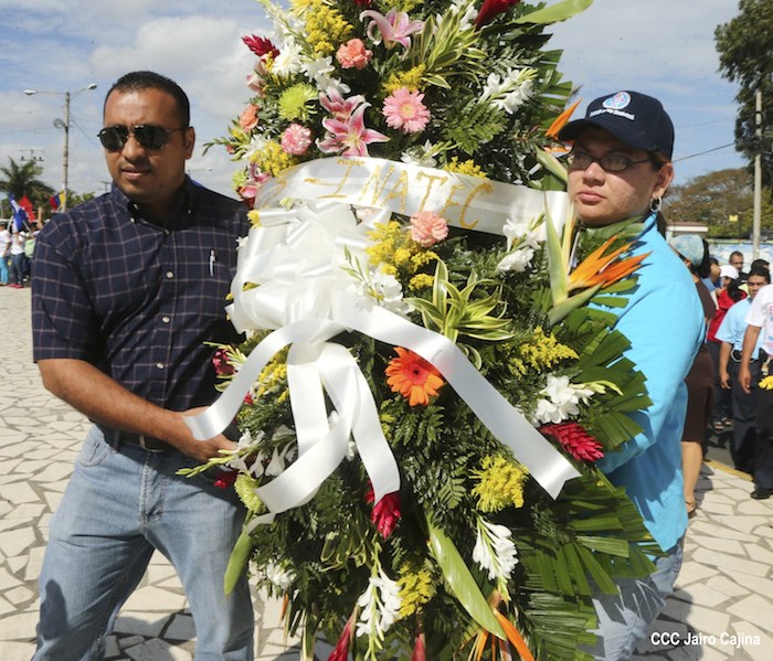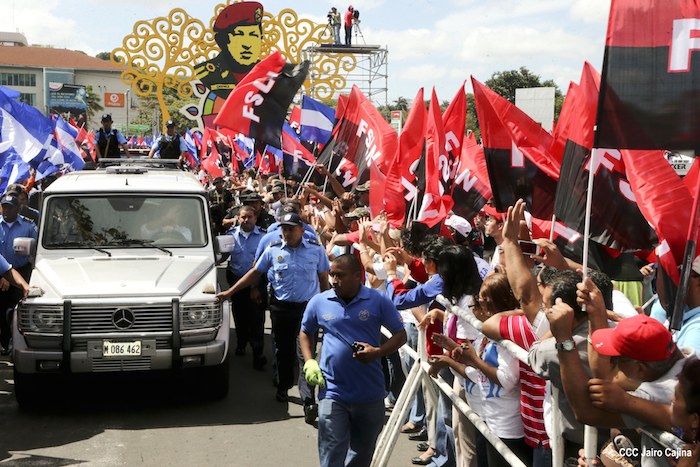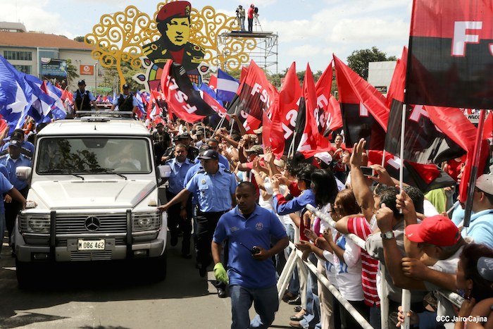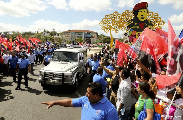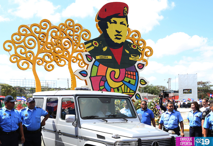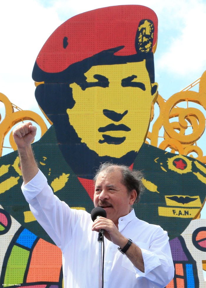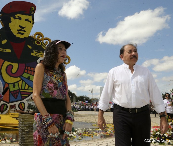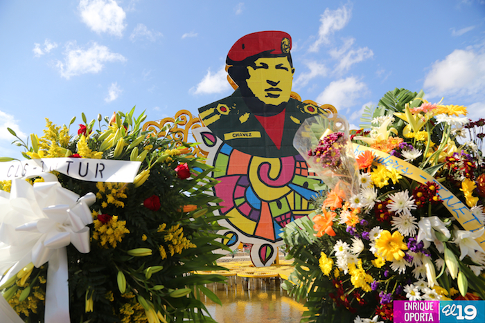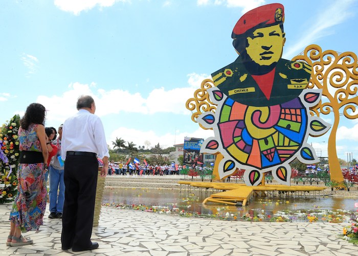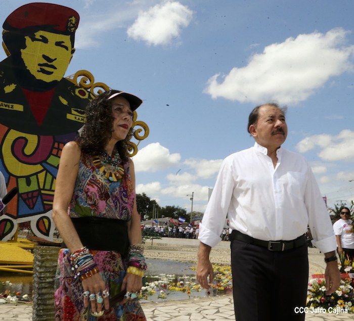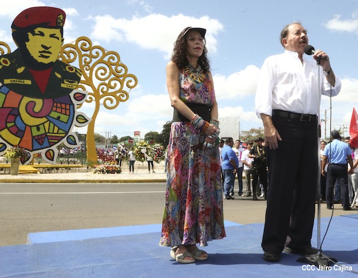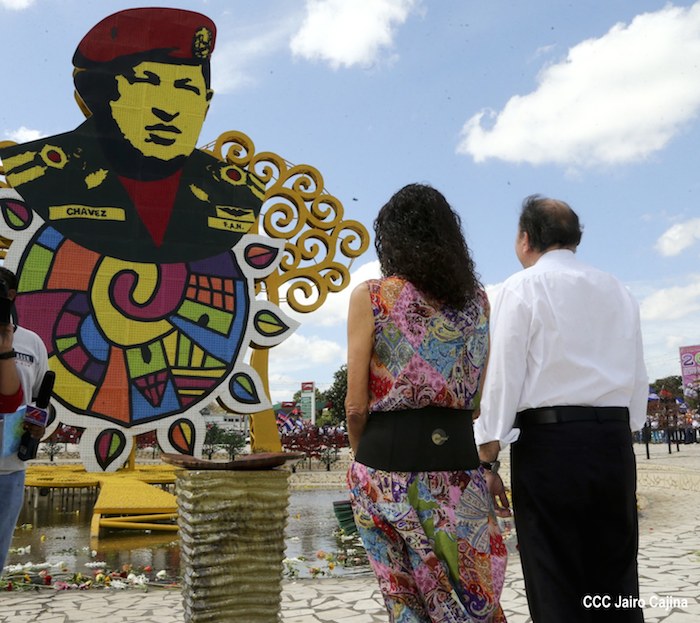 En la rotonda Hugo Chávez, de Managua, el presidente Daniel Ortega y la compañera Rosario Murillo depositaron una ofrenda floral y rindieron homenaje al Comandante Eterno de Nuestramérica.