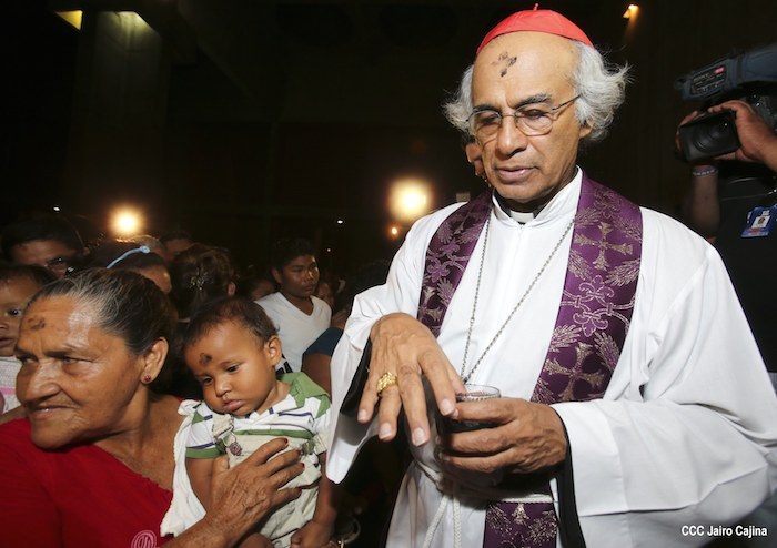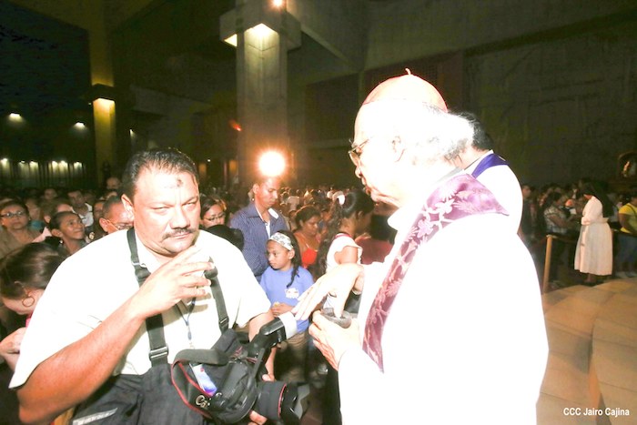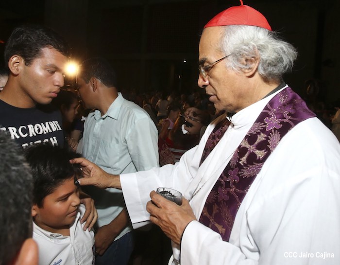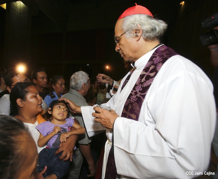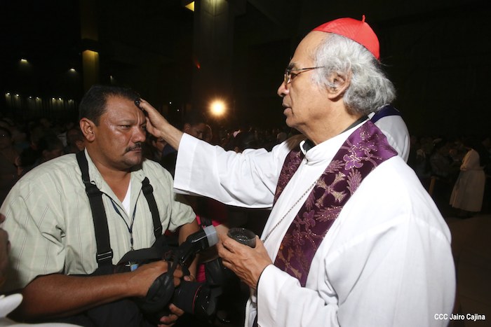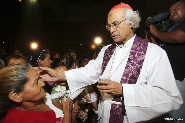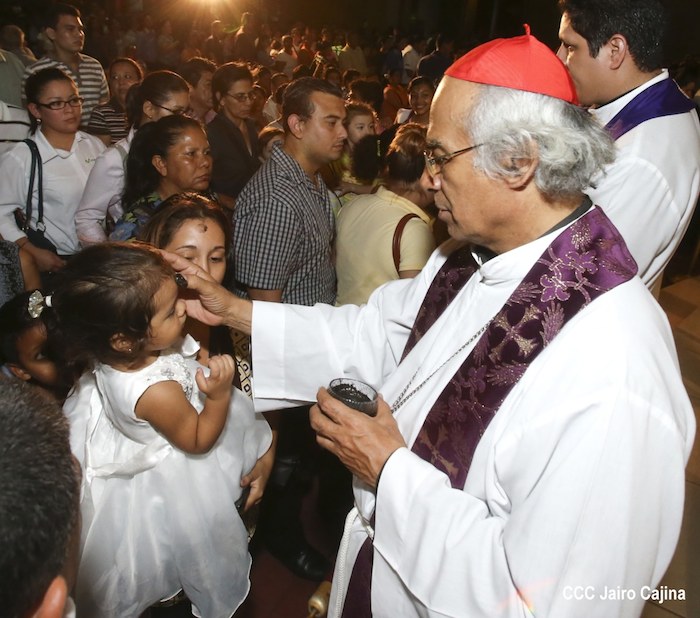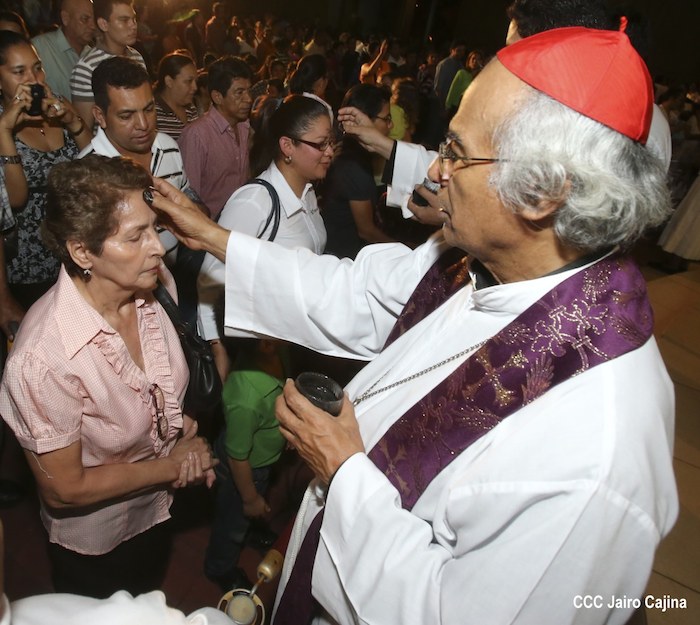Cardenal Leopoldo Brenes realiza la tradición de la Cuaresma, imponiendo la Cruz de Cenizas para librarse del pecado.