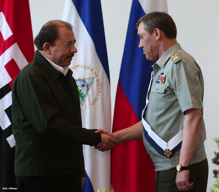 El presidente de Nicaragua, comandante Daniel Ortega, y la compañera Rosario Murillo, recibieron a una delegación de alto nivel de la Federación Rusa, encabezada por el Jefe del Estado Mayor del Ejército ruso, Valery Vasilievich Gerasimov.