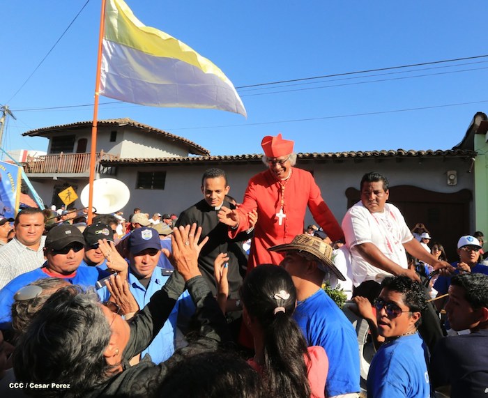 La rotonda San Jerónimo en la Ciudad de las Flores, Masaya, resultó pequeña ante el mar de gente que esperó a Su Eminencia Reverendísima Cardenal Leopoldo Brenes, quien fue recibido este domingo con todo el cariño y amor de este pueblo.