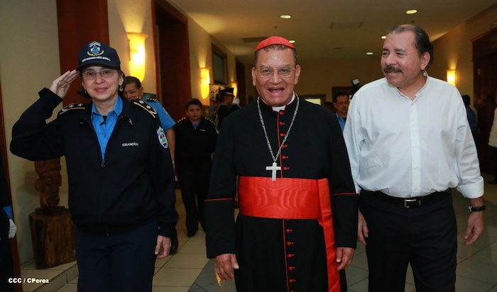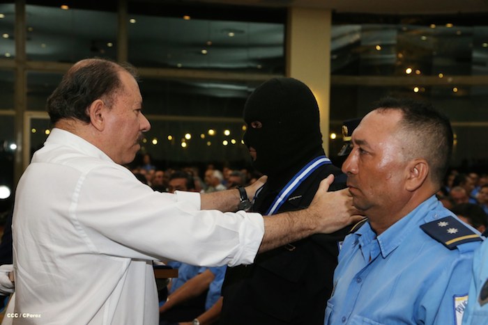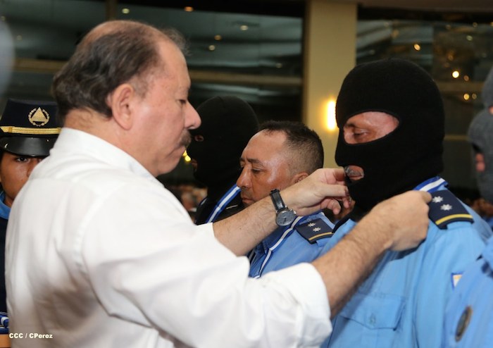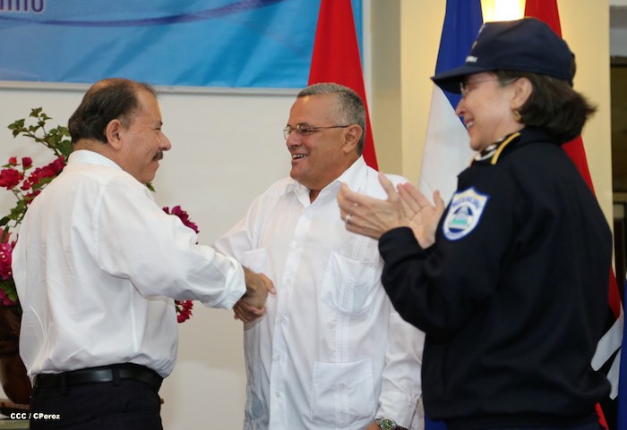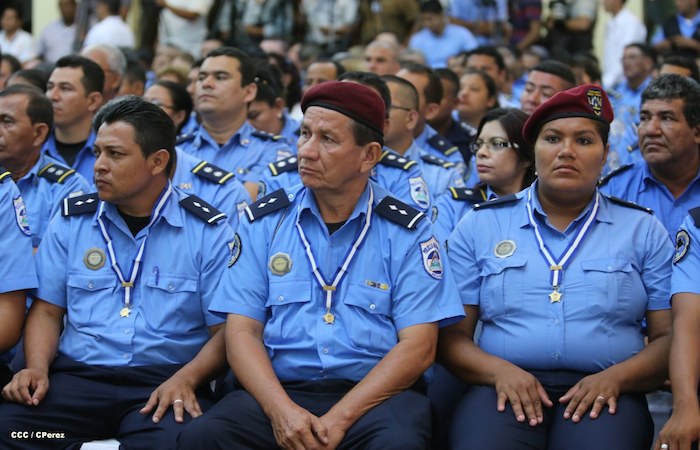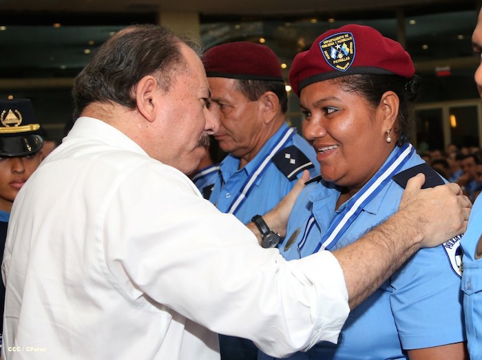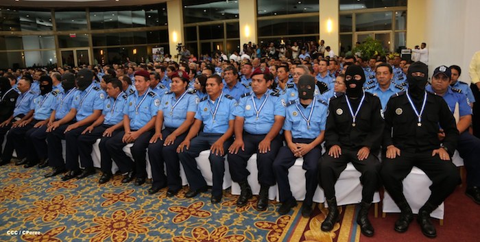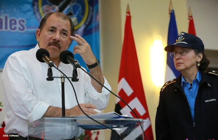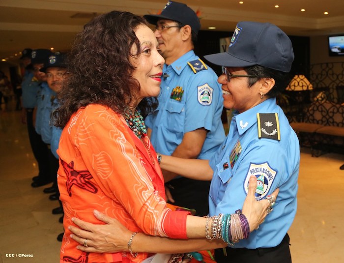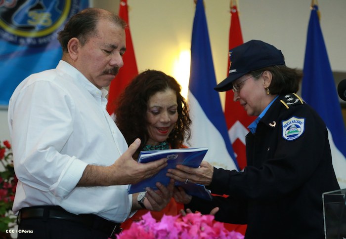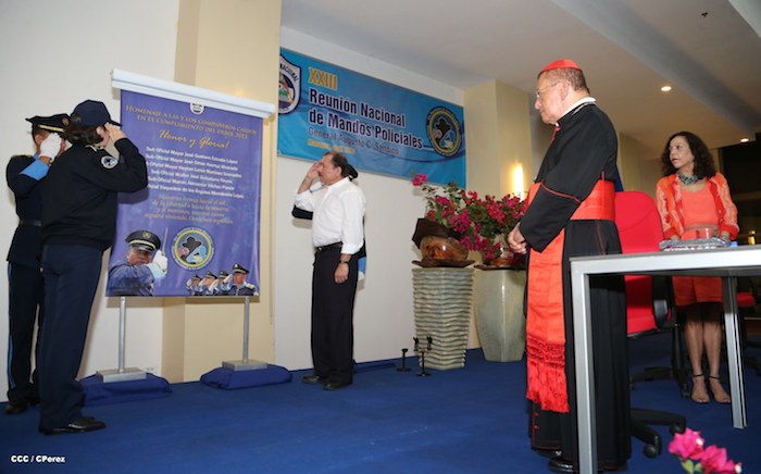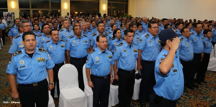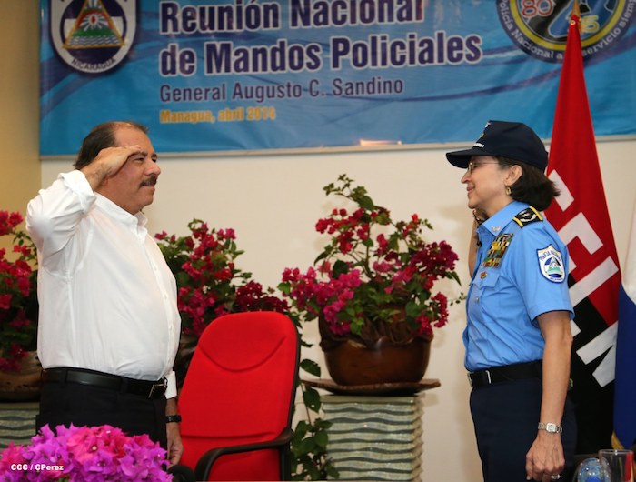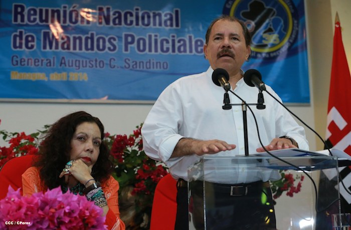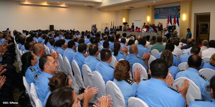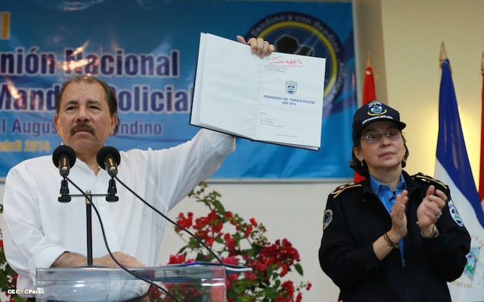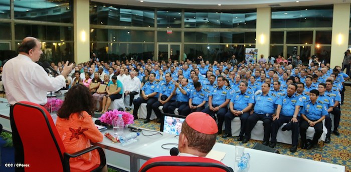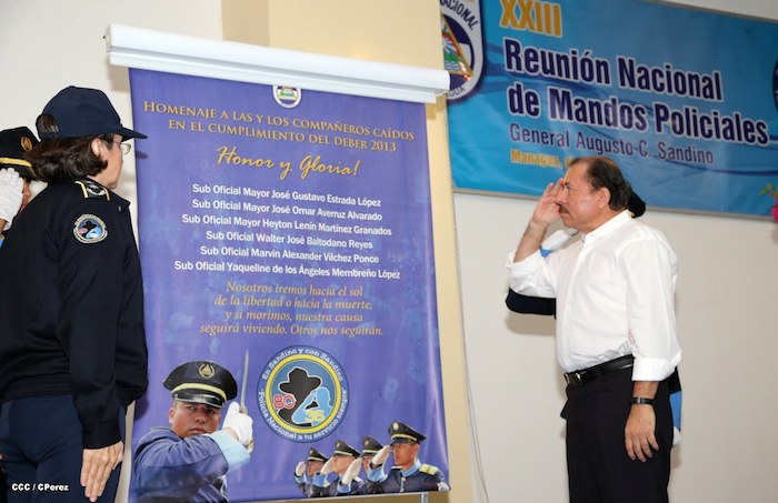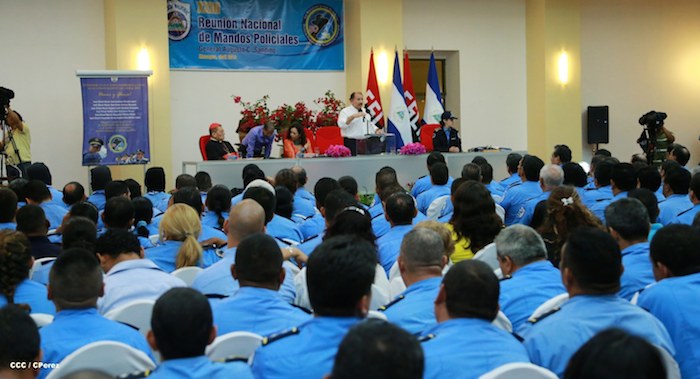 El Presidente de la República, comandante Daniel Ortega Saavedra, y la Coordinadora del Consejo de Comunicación y Ciudadanía, compañera Rosario Murillo, presidieron este martes la XXIII Reunión de Mandos de la Policía Nacional, dedicada al General de Hombres y Mujeres Libres, Augusto C. Sandino.