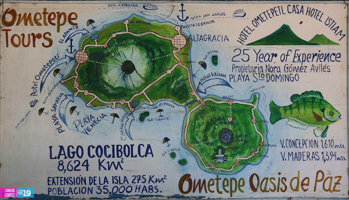La bella y espectacular isla de Ometepe, imponente con sus dos volcanes, Concepción y Maderas, se encuentra dentro del lago Cocibolca, en el departamento de Rivas.