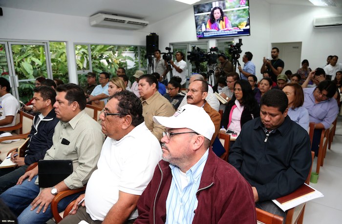 La Compañera Rosario Murillo, Coordinadora del Consejo de Comunicación y Ciudadanía, se reunió con el Gabinete de Gobierno y los alcaldes del país, para afianzar los planes municipales de cara a la alerta roja decretada por el gobierno, e incrementar las capacidades de respuesta frente a la emergencia ocasionada por la intensa actividad sísmica en el país.