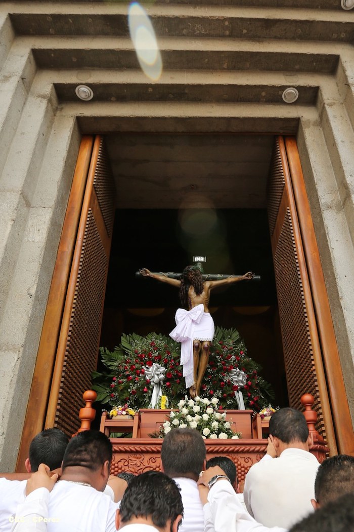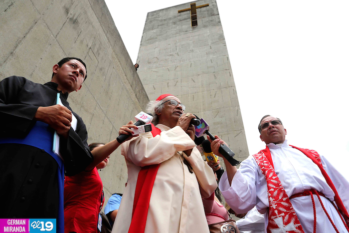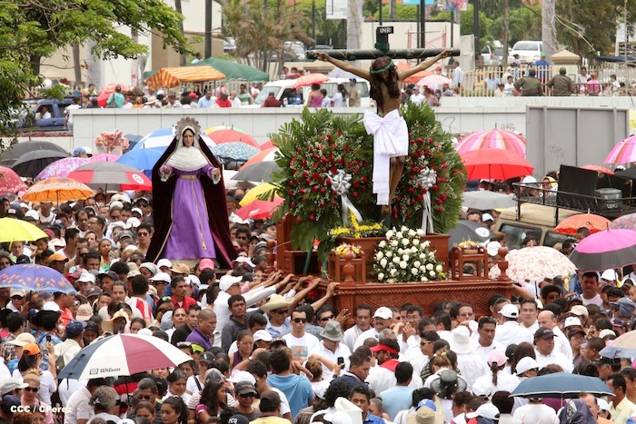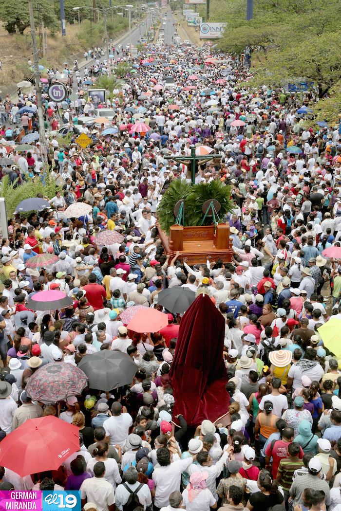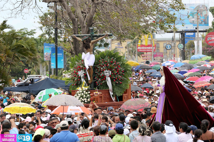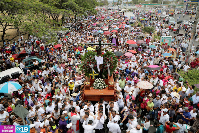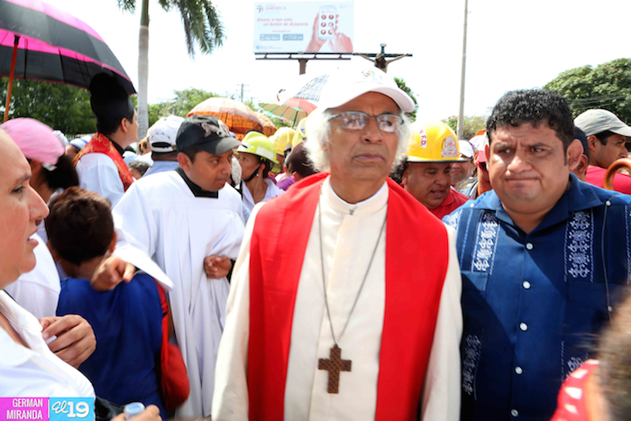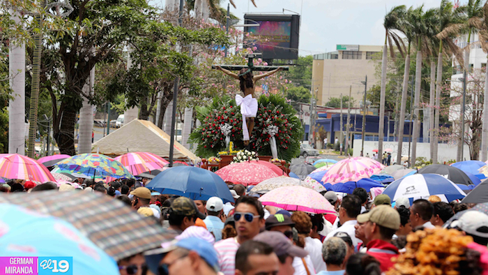 Cardenal Lepoldo Brenes acompaña la Imagen de Cristo en el Viacrucis Penitencial en Managua.