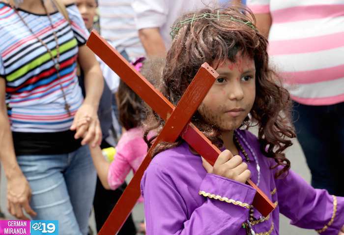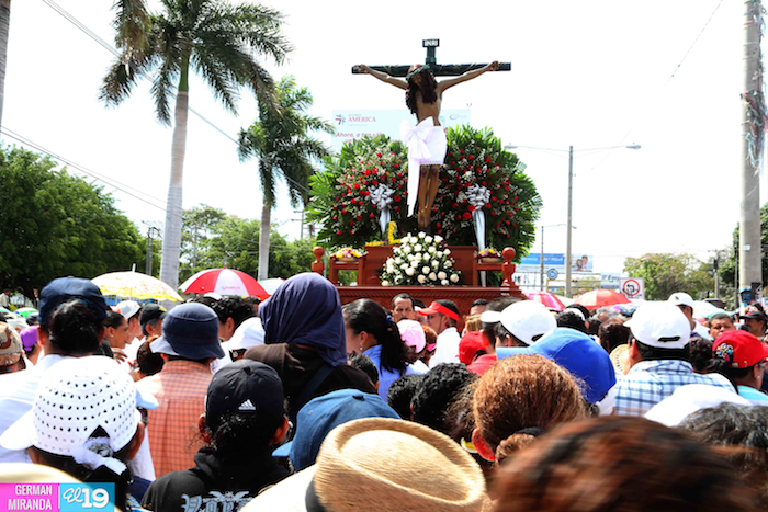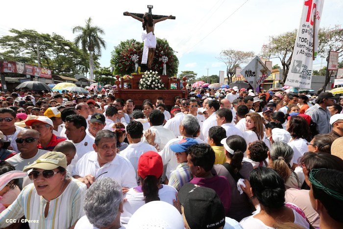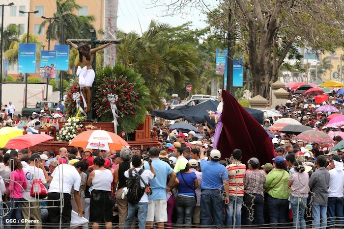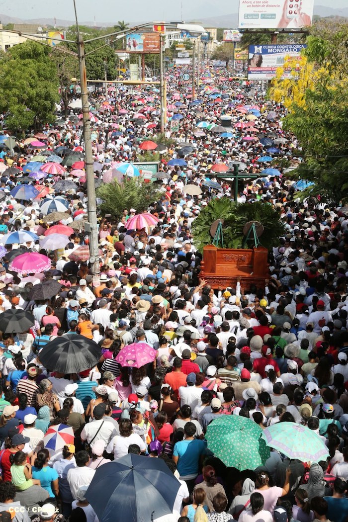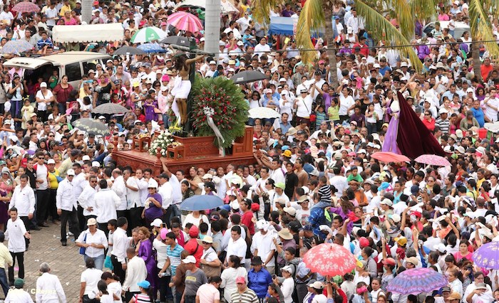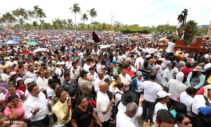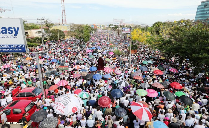 Cardenal Lepoldo Brenes acompaña la Imagen de Cristo en el Viacrucis Penitencial en Managua.