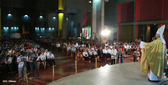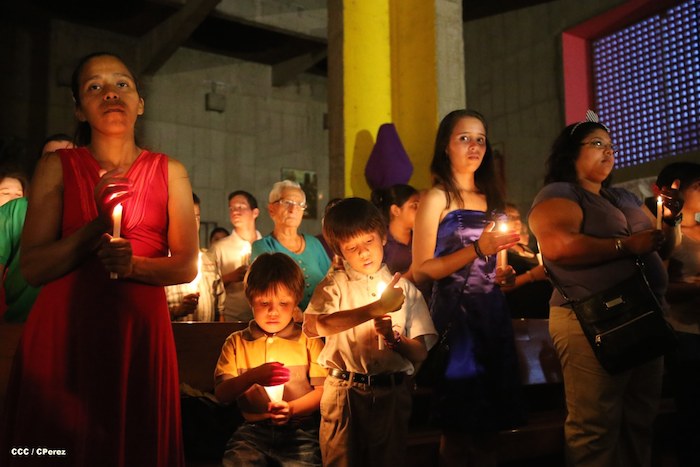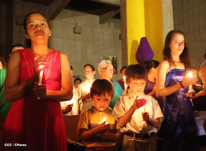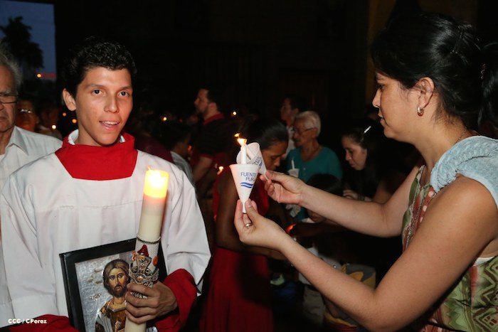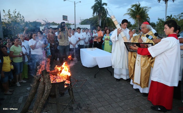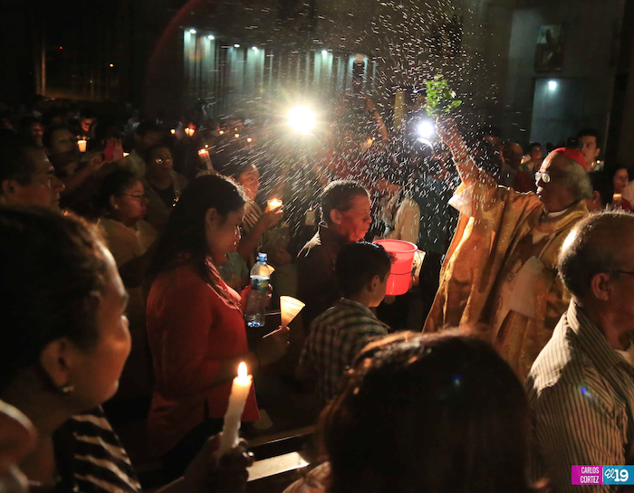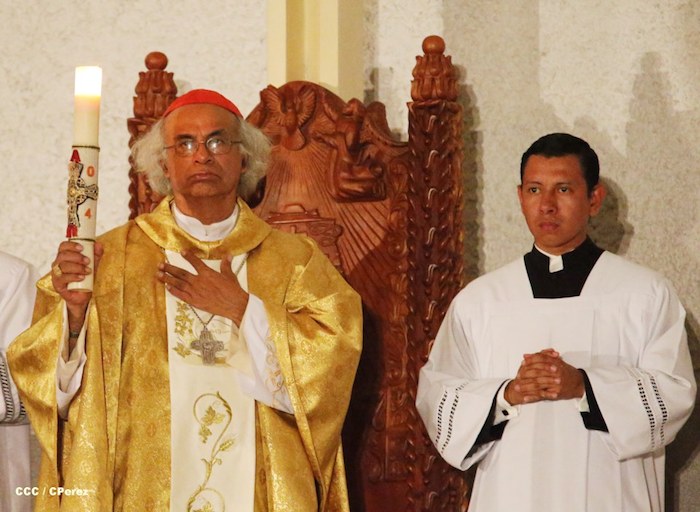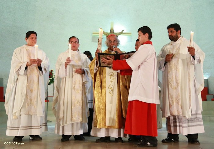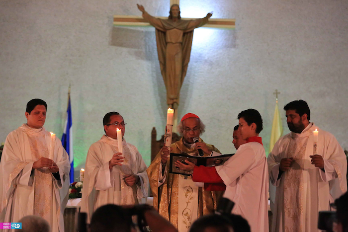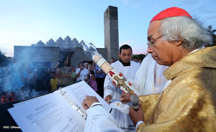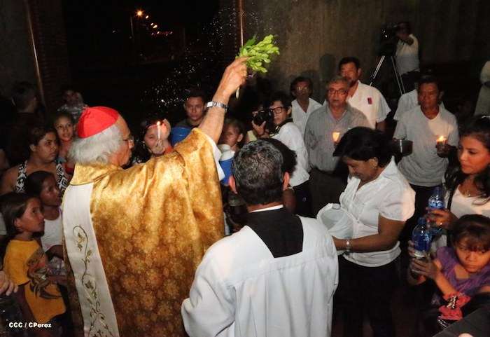 Un bonito y estremecedor mensaje emitió Su Eminencia Reverendísima, Cardenal Leopoldo Brenes, a la feligresía nicaragüense durante la Vigilia de Pascua este sábado santo por la noche. El recién ordenado Cardenal por el Papa Francisco, durante la misa litúrgica, se puso en pie frente a todas las familias católicas y, tomando fuertemente el micrófono, anunció la gran noticia: ¡Cristo ha resucitado!
