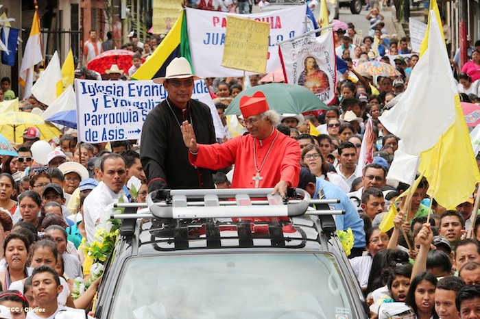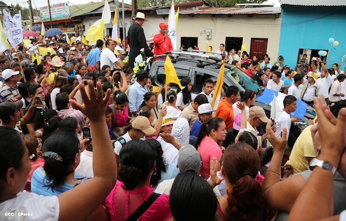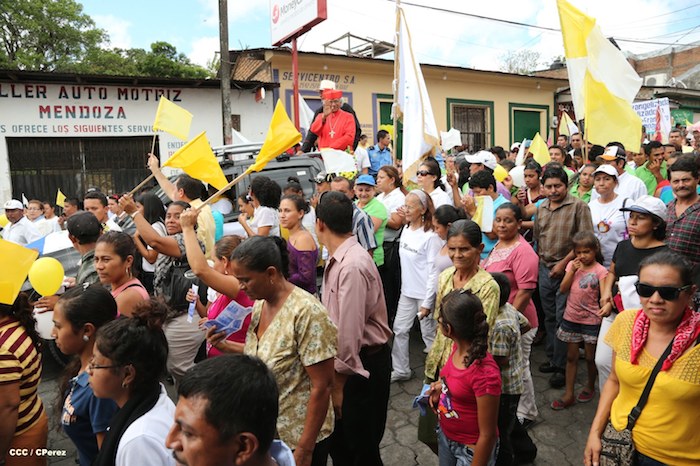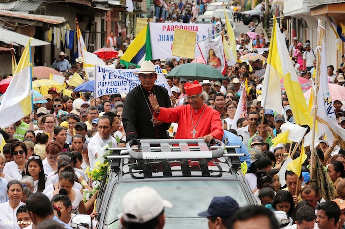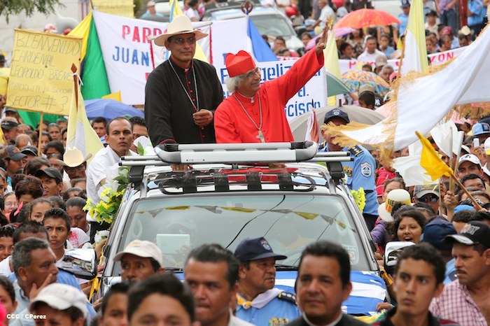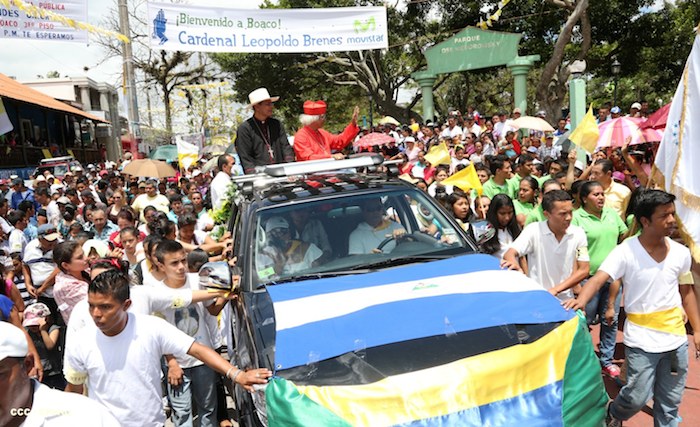 Miles de familias se lanzaron a las calles principales de Boaco para recibir con los tradicionales cohetes y morteros, así como con bandas colegiales de gimnasia rítmica, al cardenal Leopoldo José Brenes en su visita pastoral a aquella ciudad que realizó este domingo.
