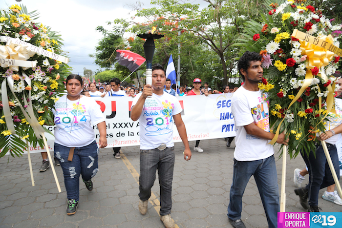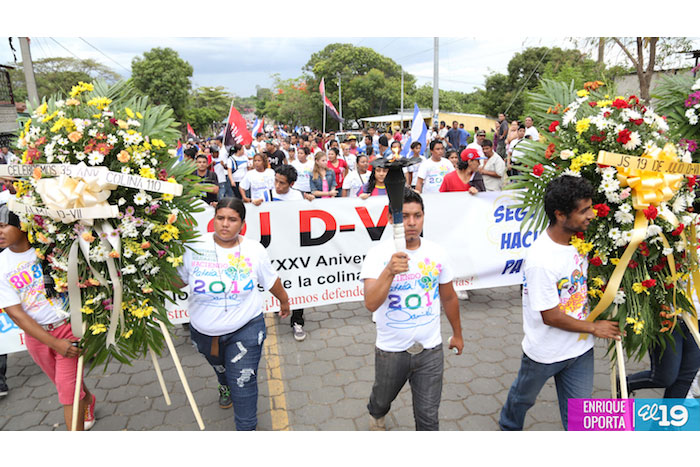 Centenares de familias participaron de una caminata en el distrito VII de Managua, la cual partió de la Colonia Primero de Mayo hasta llegar a la Colina 110, donde cayeron 37 jóvenes que defendieron esa posición para detener el avance de la Guardia Nacional del dictador Anastasio Somoza sobre los barrios insurreccionados en esa zona de Managua.