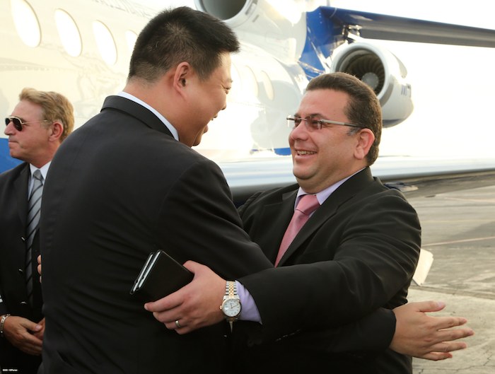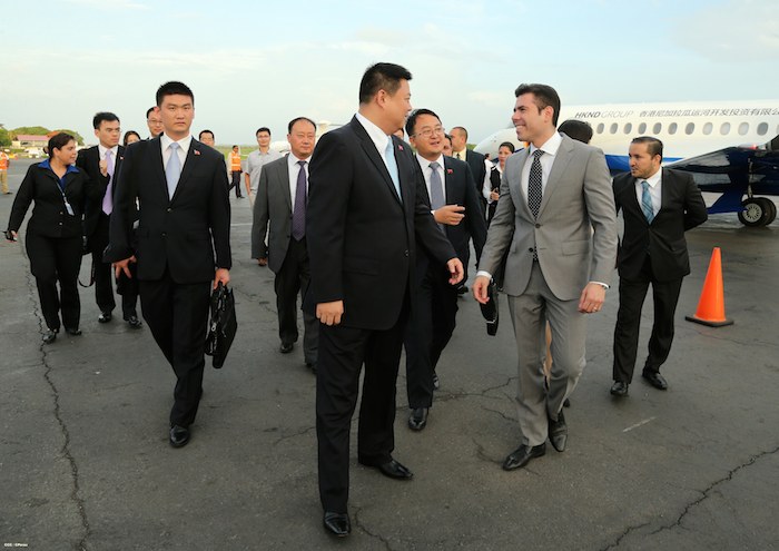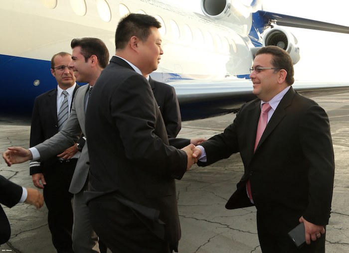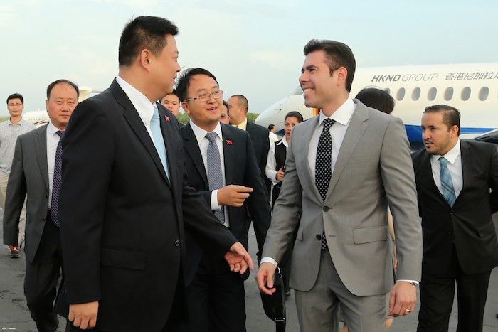 El señor Wang Jing, Presidente del Grupo HKND, concesionario del Gran Canal Interoceánico, arribó la tarde del sábado a Nicaragua, siendo recibido por el compañero Laureano Ortega Murillo, directivo de la Agencia Pro-Nicaragua y por autoridades del Aeropuerto Internacional Augusto C. Sandino.