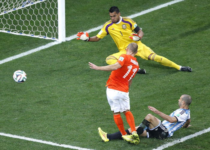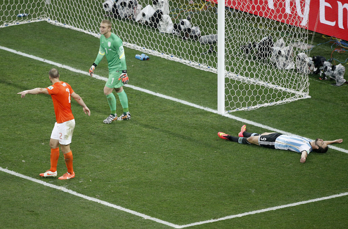 La selección de Alejandro Sabella dejó tendida a la Naranja Mecánica en la tanda de penales 4-2, luego de haber sostenido un encuentro de infarto en la Arena Corinthians de Sao Paulo con marcador a 0 durante los 90 minutos reglamentarios y los 30 de tiempo extra.