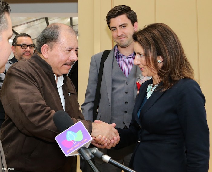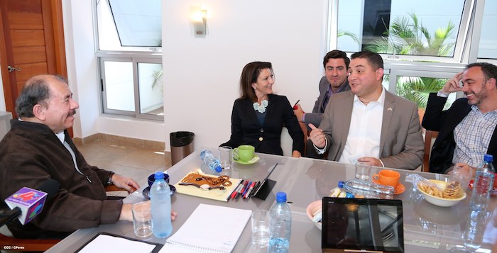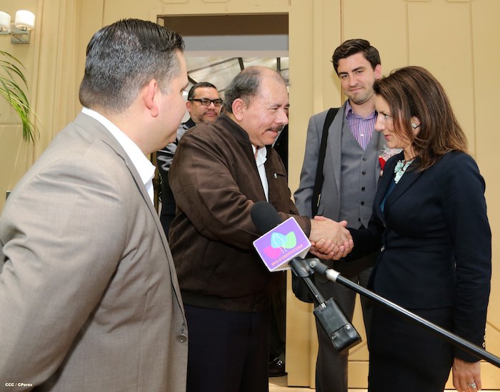 La Compañera Rosario Murillo, Coordinadora del Consejo de Comunicación y Ciudadanía, informó que el Presidente de la República, Comandante Daniel Ortega Saavedra, sostuvo este mediodía un encuentro con la vicepresidenta de la Cámara de Comercio de Estados Unidos, señora Jodi Bond.