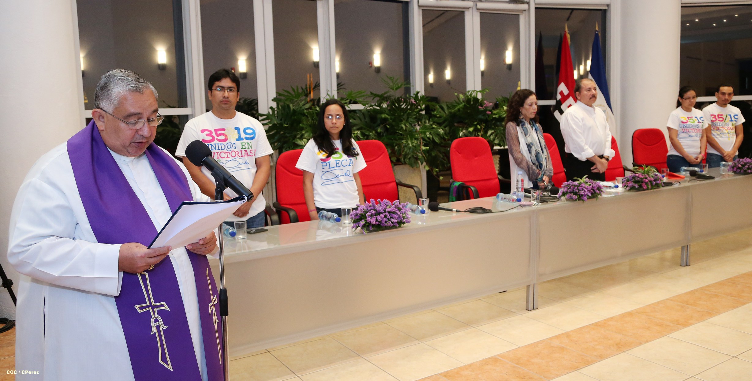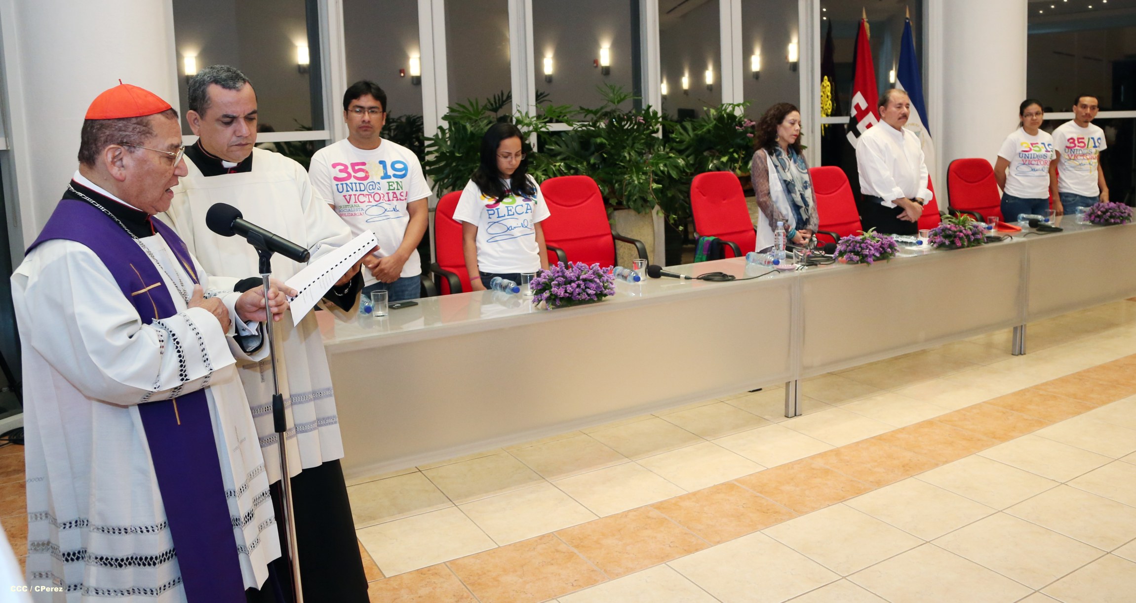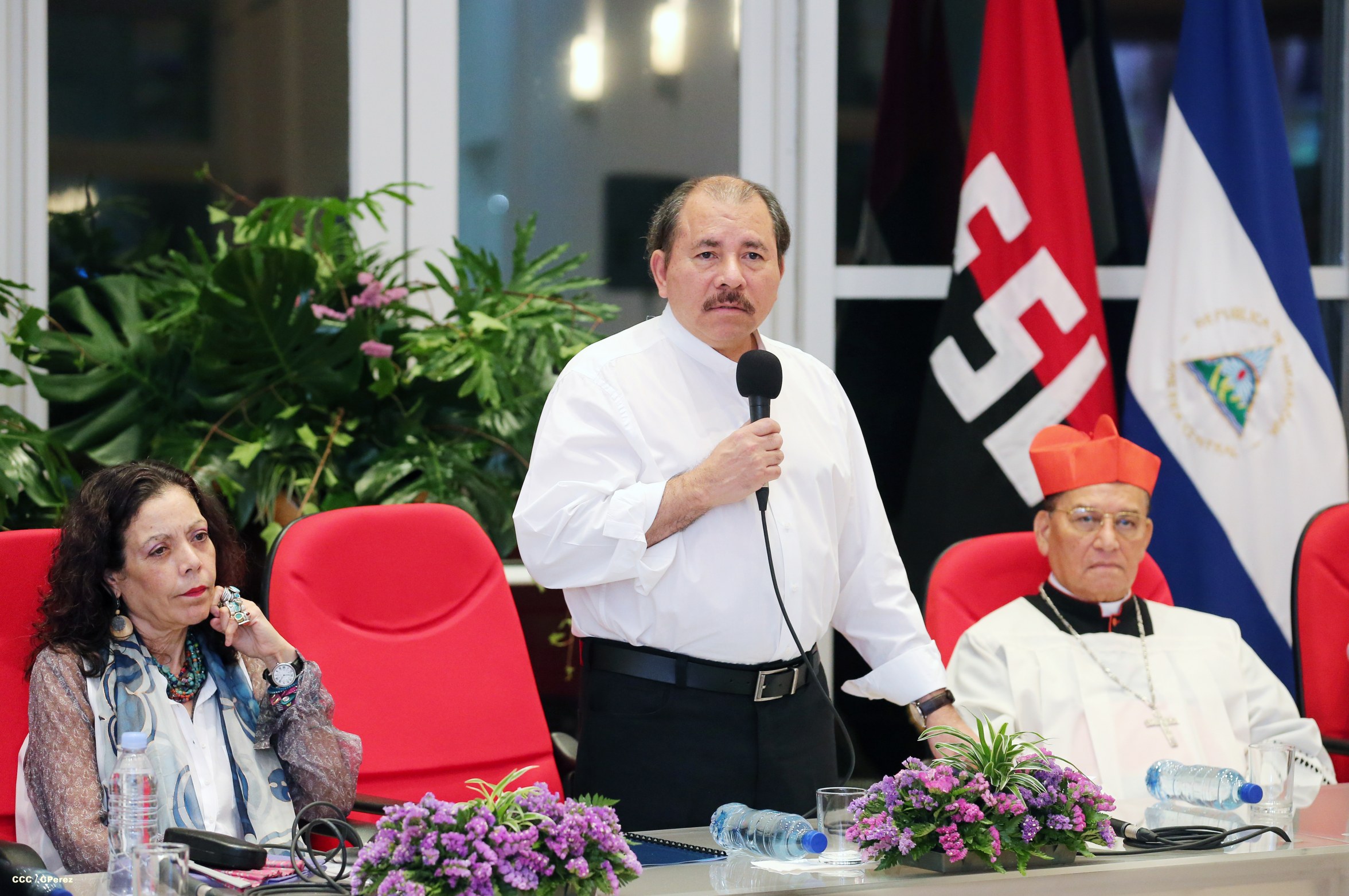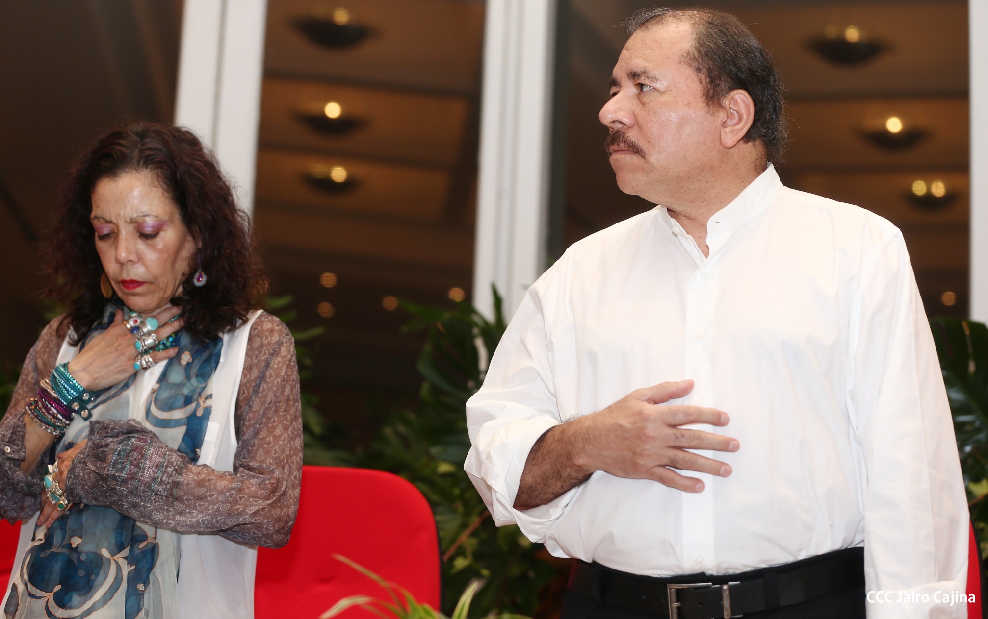 El Presidente de la República, Comandante Daniel Ortega Saavedra, y la Coordinadora del Consejo de Comunicación y Ciudadanía, Compañera Rosario Murillo, participaron del acto-homenaje celebrado en Casa de los Pueblos a las víctimas de la cobarde masacre contra las familias que regresaban de la Fiesta Nacional del 19 de Julio, ratificando el compromiso con el pueblo nicaragüense con las fuerzas de la Paz y del Amor.