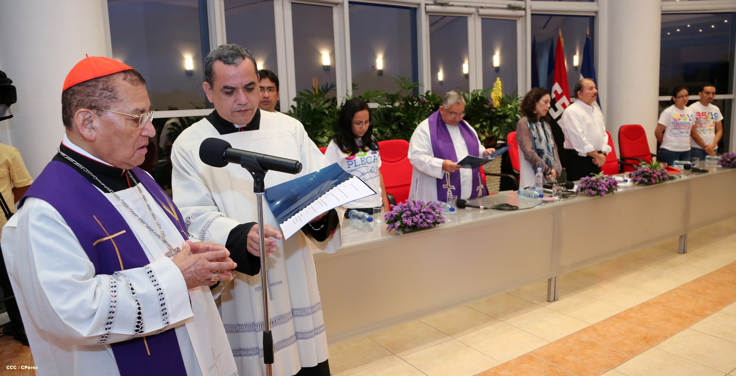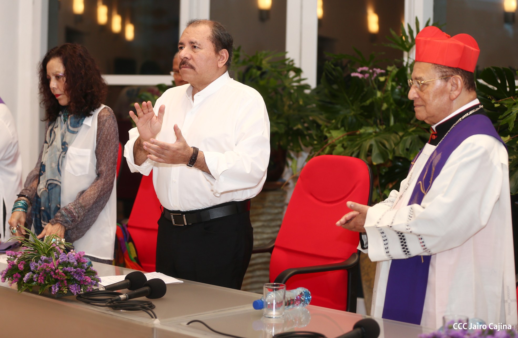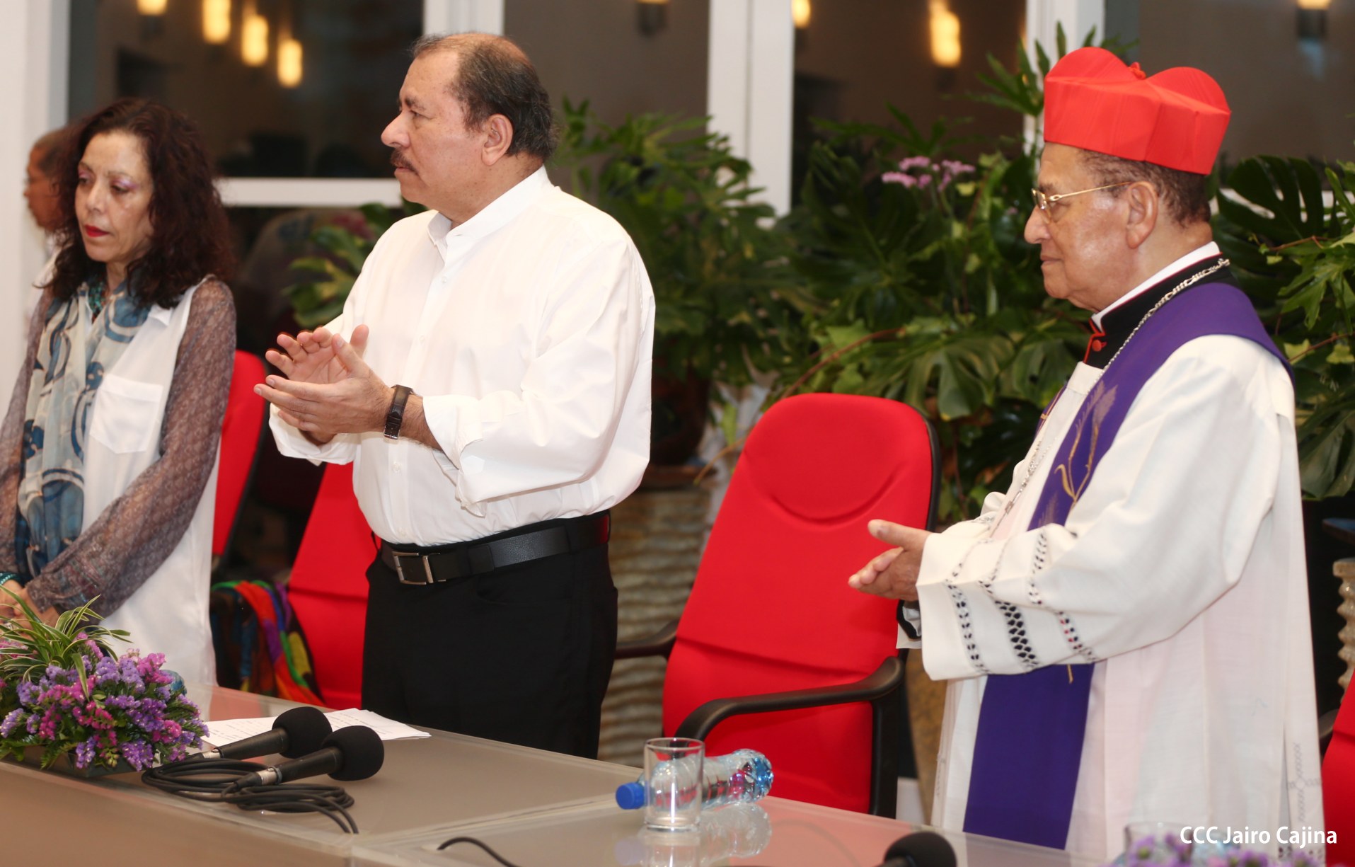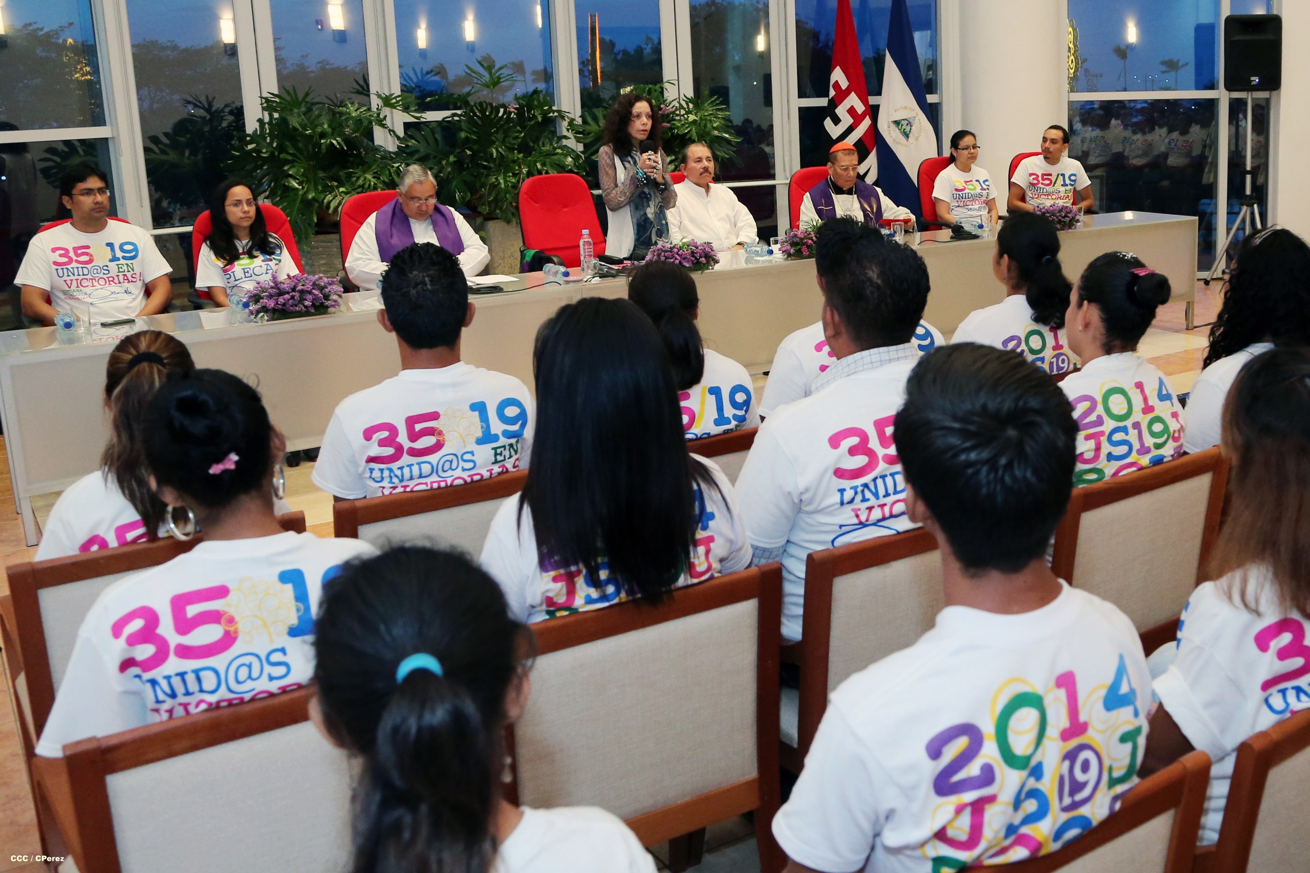 El Presidente de la República, Comandante Daniel Ortega Saavedra, y la Coordinadora del Consejo de Comunicación y Ciudadanía, Compañera Rosario Murillo, participaron del acto-homenaje celebrado en Casa de los Pueblos a las víctimas de la cobarde masacre contra las familias que regresaban de la Fiesta Nacional del 19 de Julio, ratificando el compromiso con el pueblo nicaragüense con las fuerzas de la Paz y del Amor.