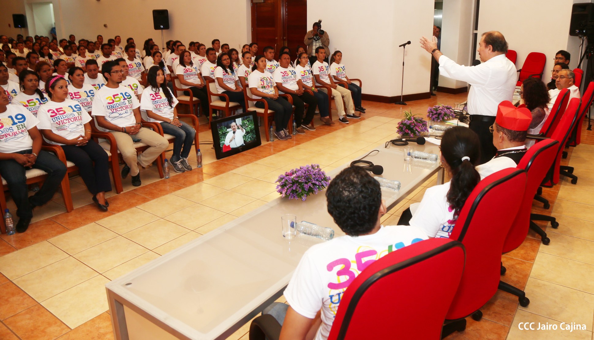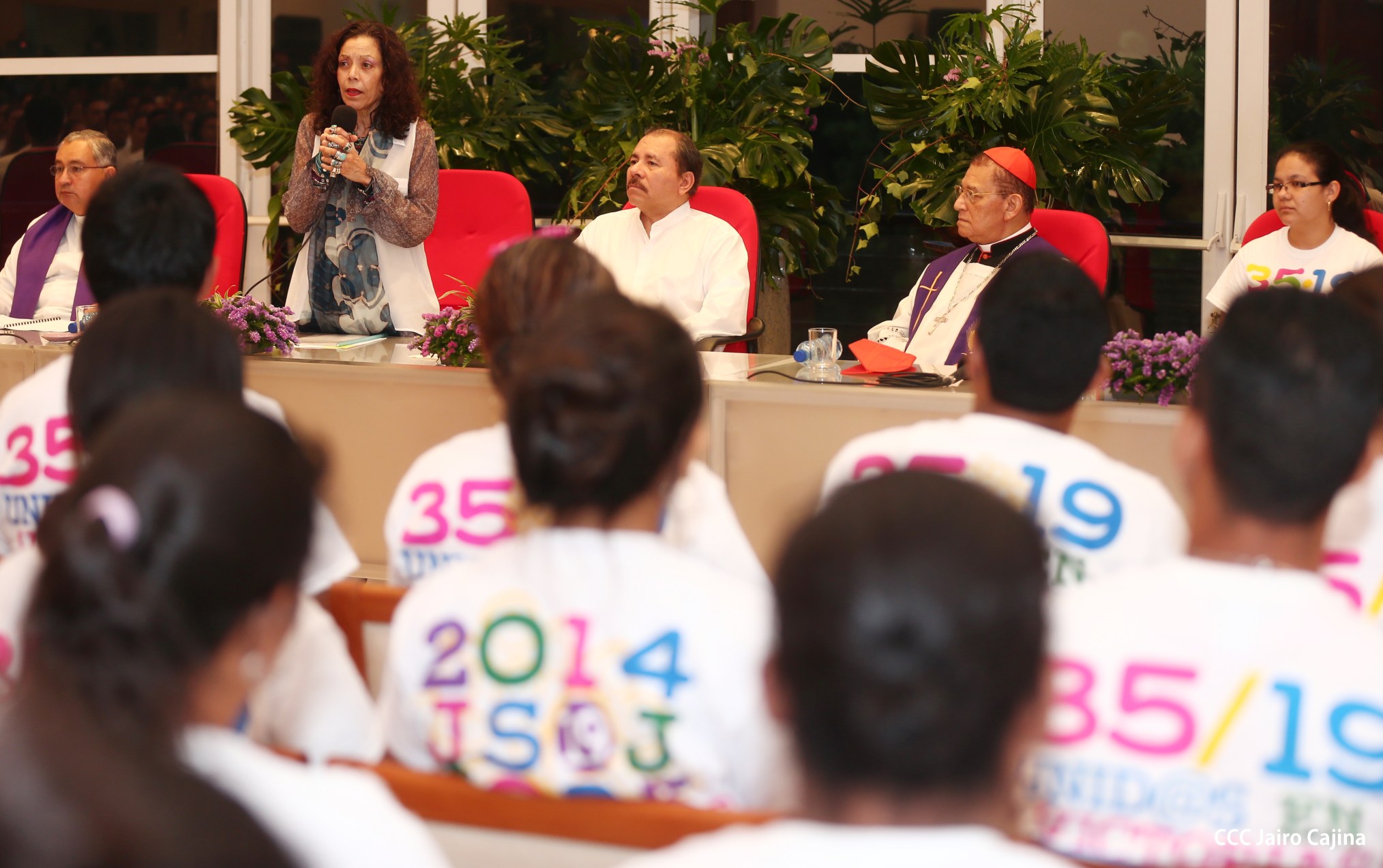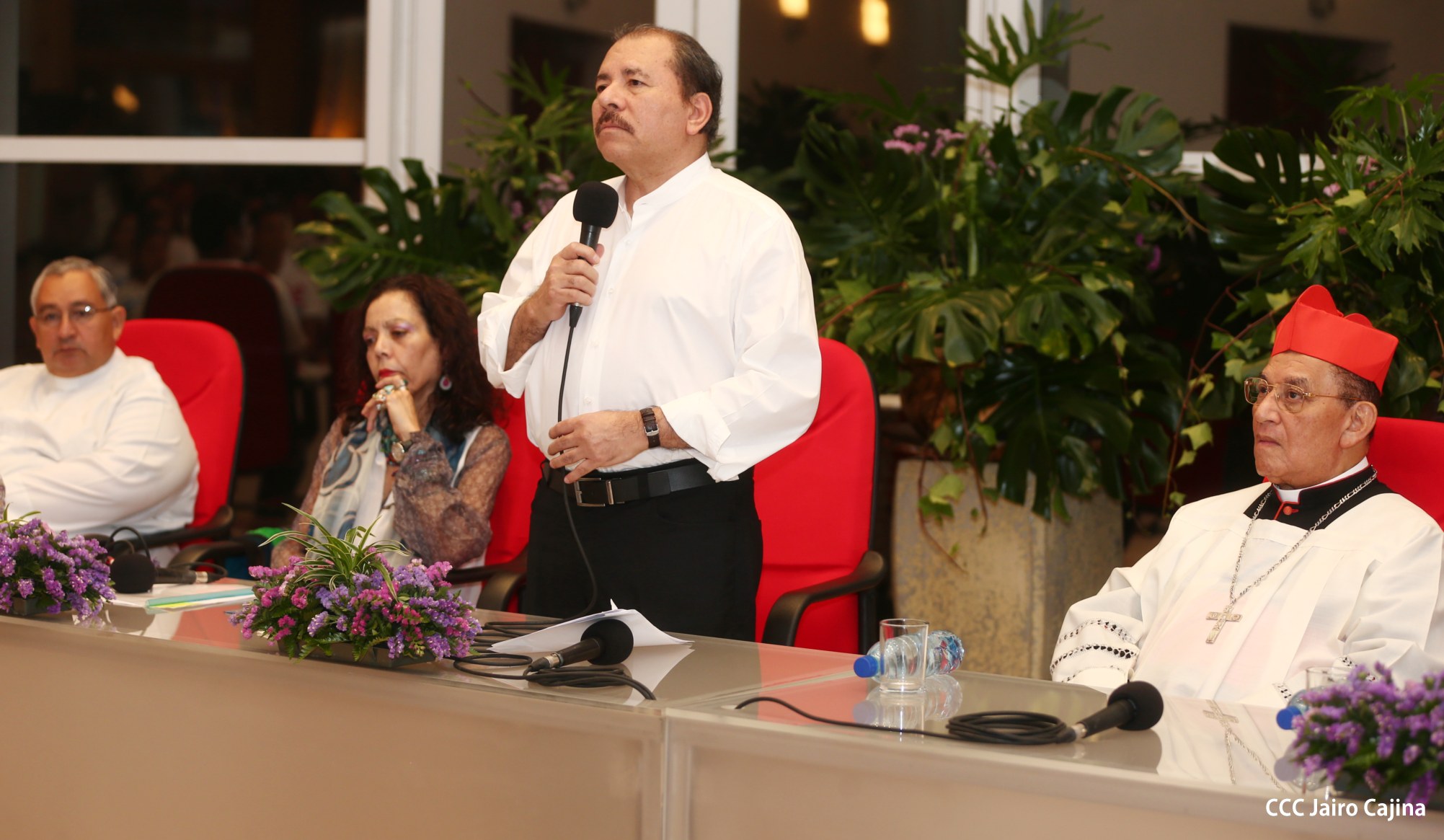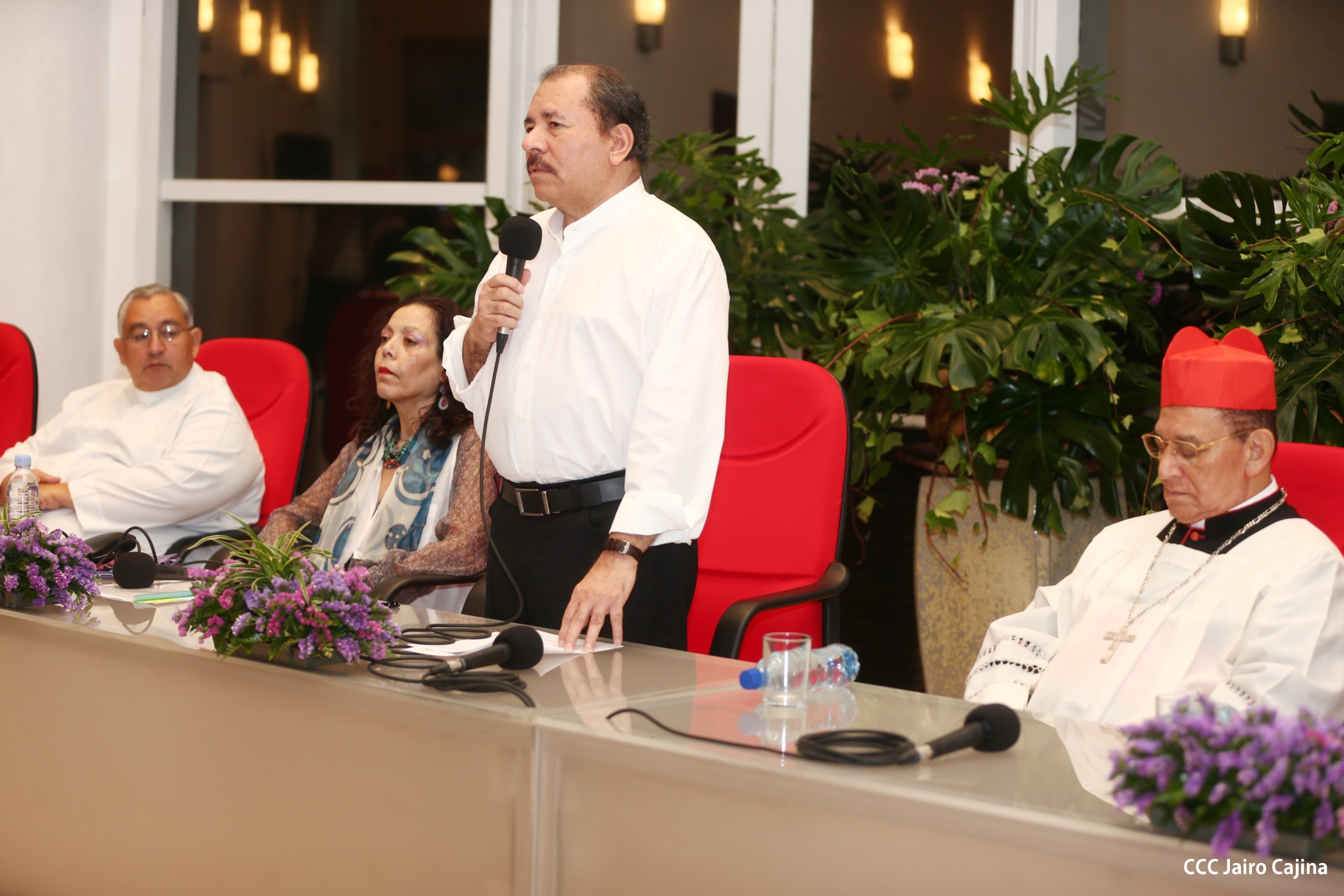 El Presidente de la República, Comandante Daniel Ortega Saavedra, y la Coordinadora del Consejo de Comunicación y Ciudadanía, Compañera Rosario Murillo, participaron del acto-homenaje celebrado en Casa de los Pueblos a las víctimas de la cobarde masacre contra las familias que regresaban de la Fiesta Nacional del 19 de Julio, ratificando el compromiso con el pueblo nicaragüense con las fuerzas de la Paz y del Amor.