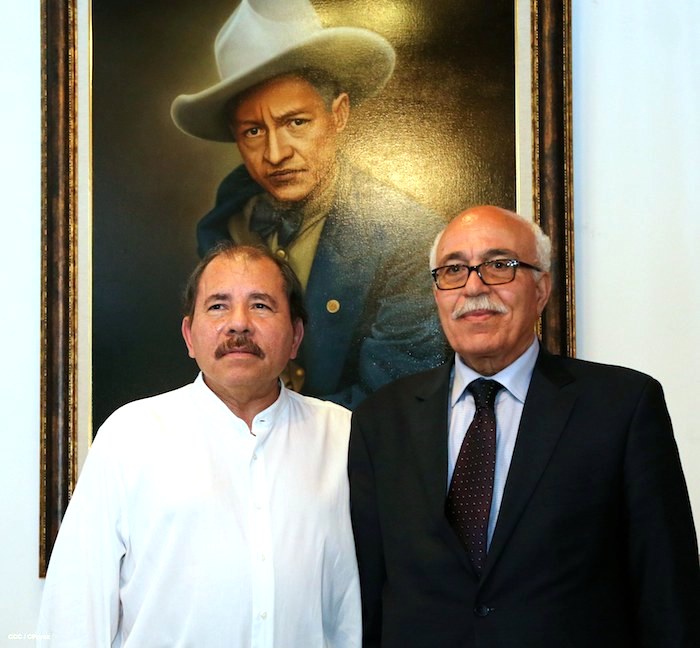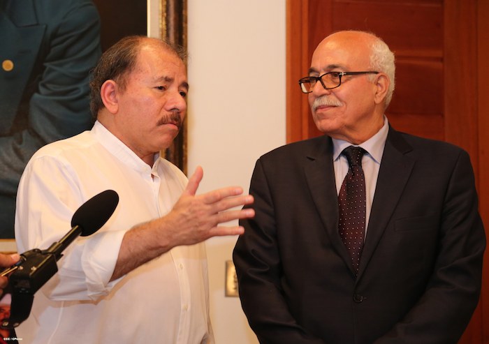 El Presidente de la República, Comandante Daniel Ortega Saavedra, sostuvo un fraternal encuentro la noche de este miércoles con el compañero Saleh Rafat Saeed Saleh, representante del Presidente del Estado de Palestina y de la Organización para la Liberación de Palestina (OLP), Mahmoud Abbas.