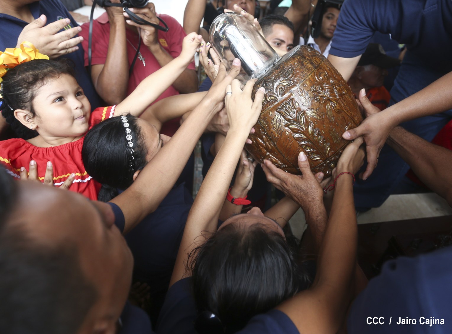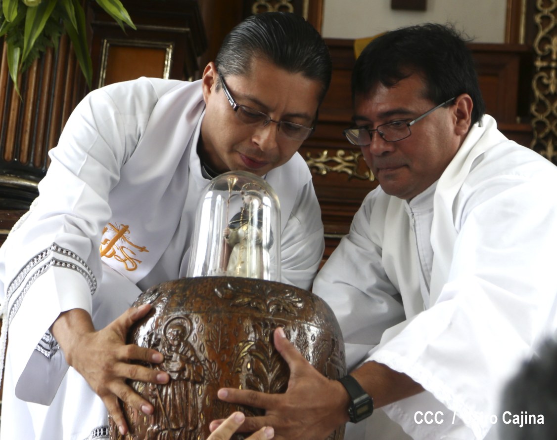 Miles de capitalinos devotos de Santo Domingo participaron de la tradicional bajada de la milagrosa imagen de su santuario para ser ubicada en la peaña en la que recorrerá el trayecto de la iglesia de las Sierritas hasta su iglesia ubicada en la vieja Managua, donde permanecerá por diez días y será visitada por sus fieles creyentes.