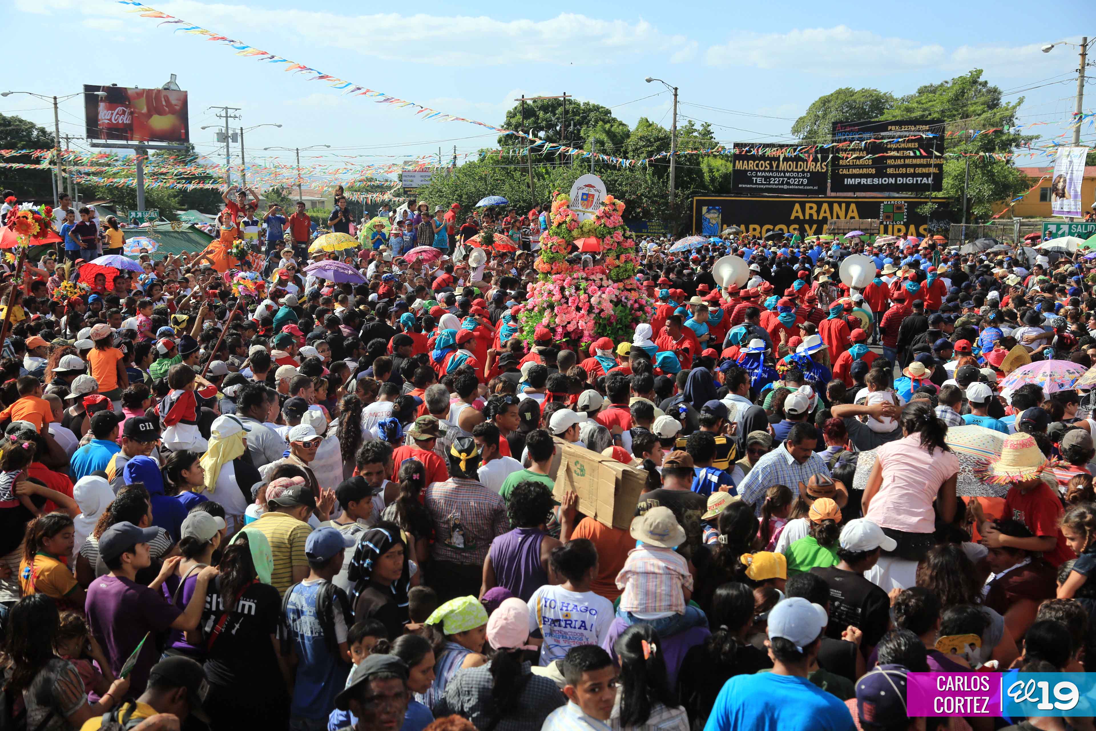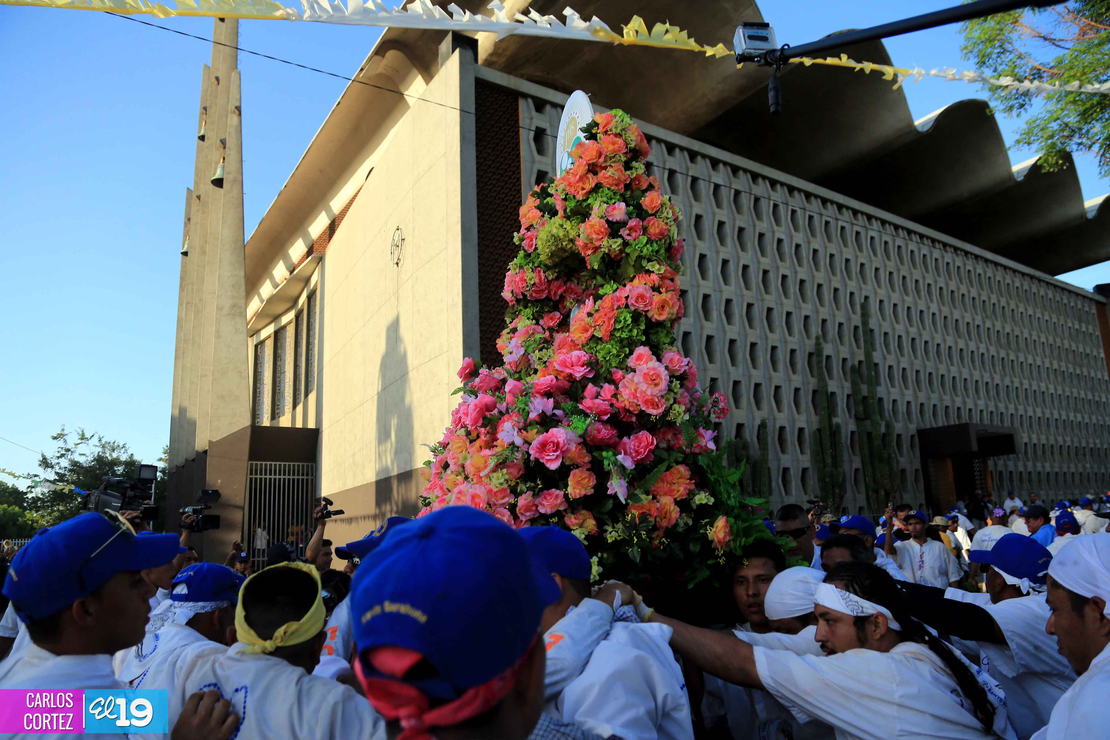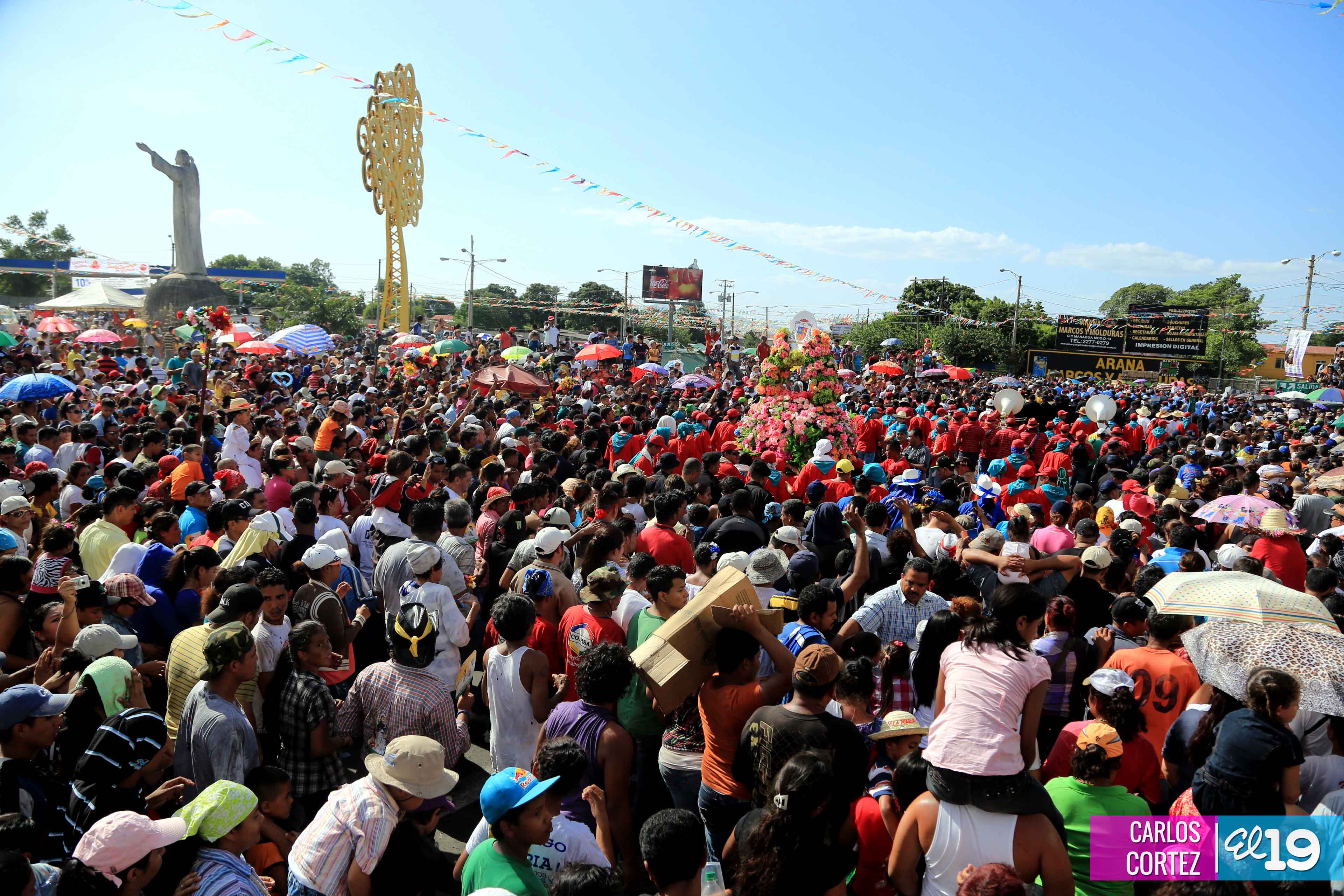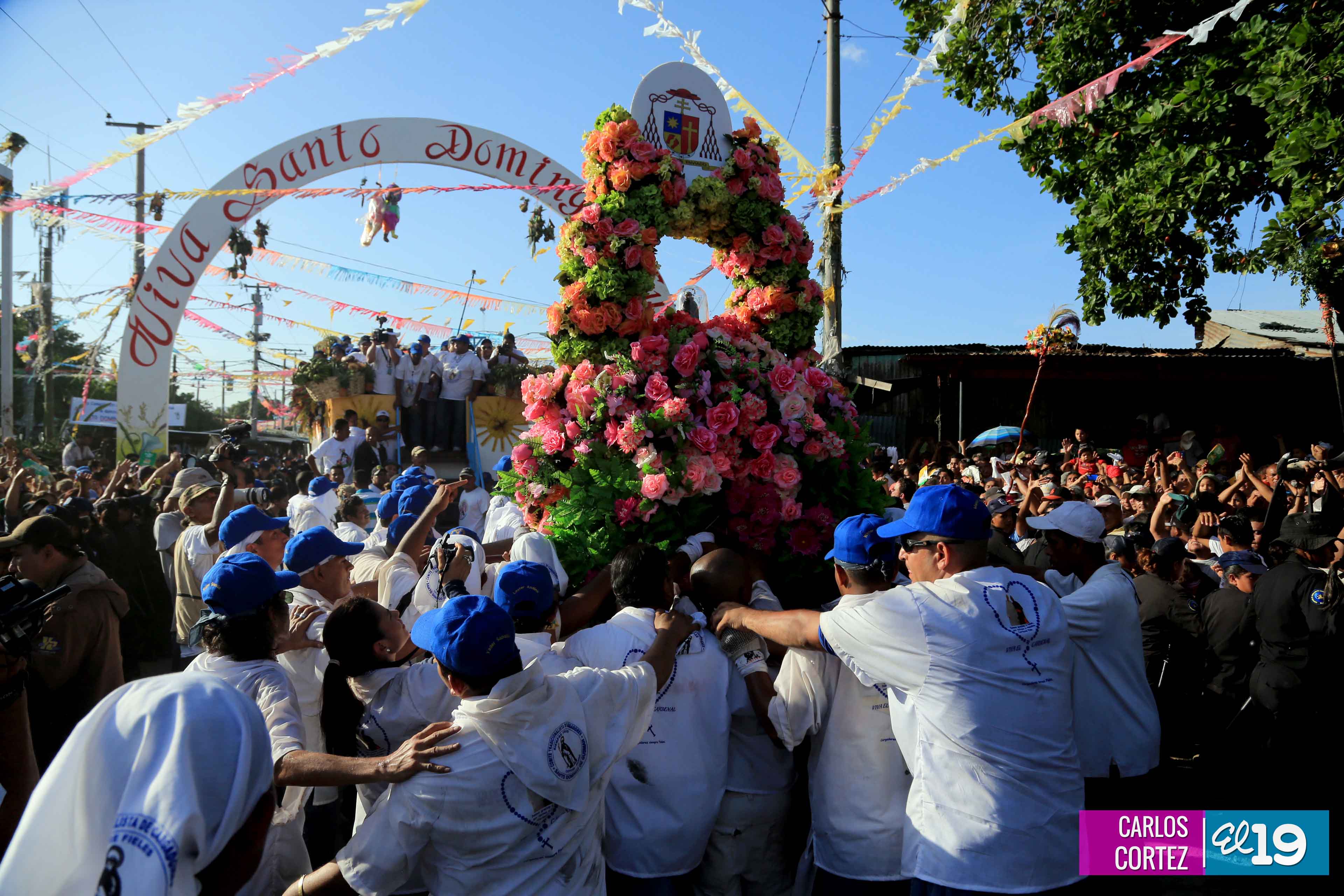 Centenares de miles de nicaragüenses acompañaron por casi 12 horas la llegada de Santo Domingo de Guzmán a Managua, que entre vivas, explosión de cohetes y una algarabía multicolor lo llevaron hasta la Iglesia de su mismo nombre en el sector del barrio 19 de Julio, lugar en que permanecerá los próximos diez días.