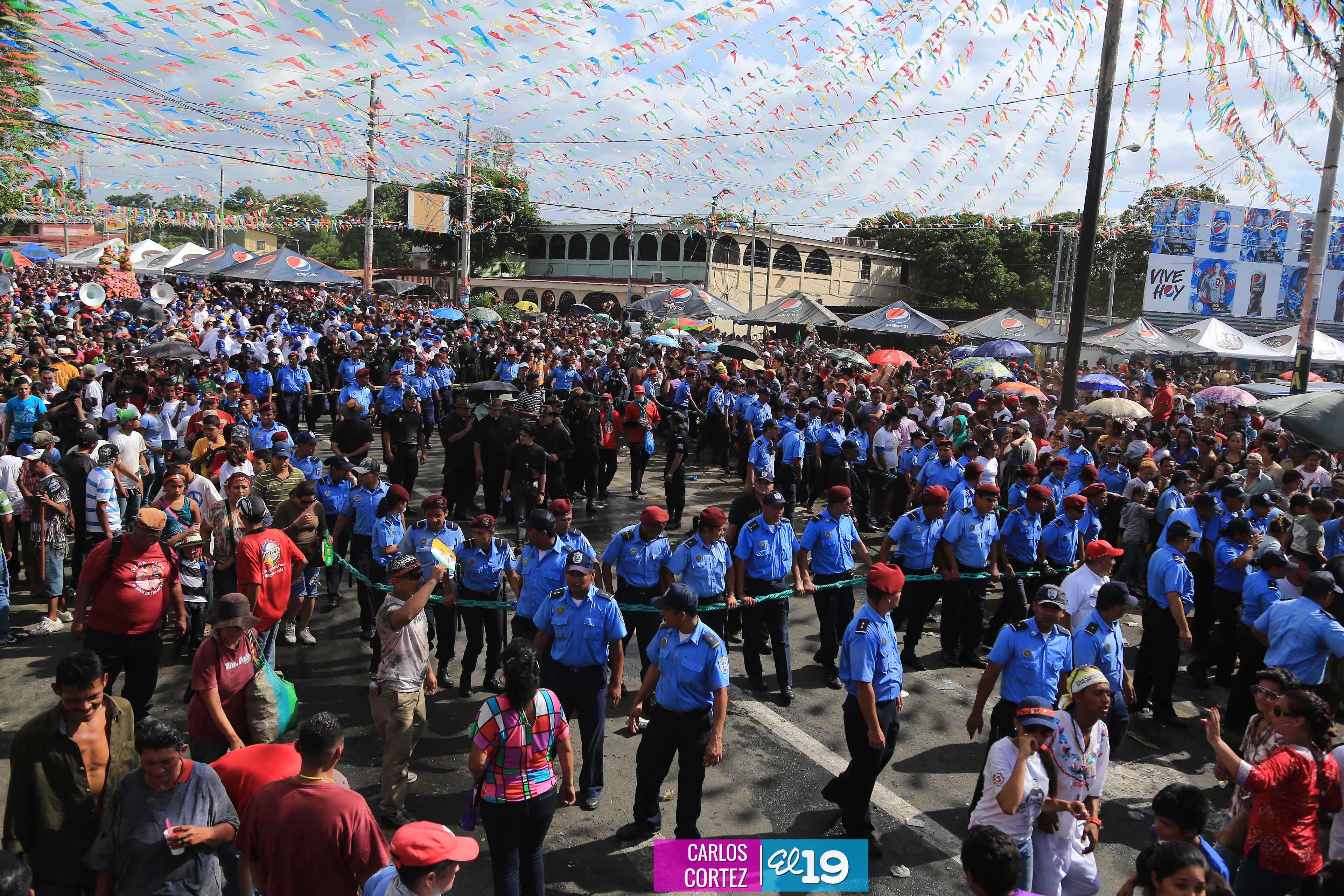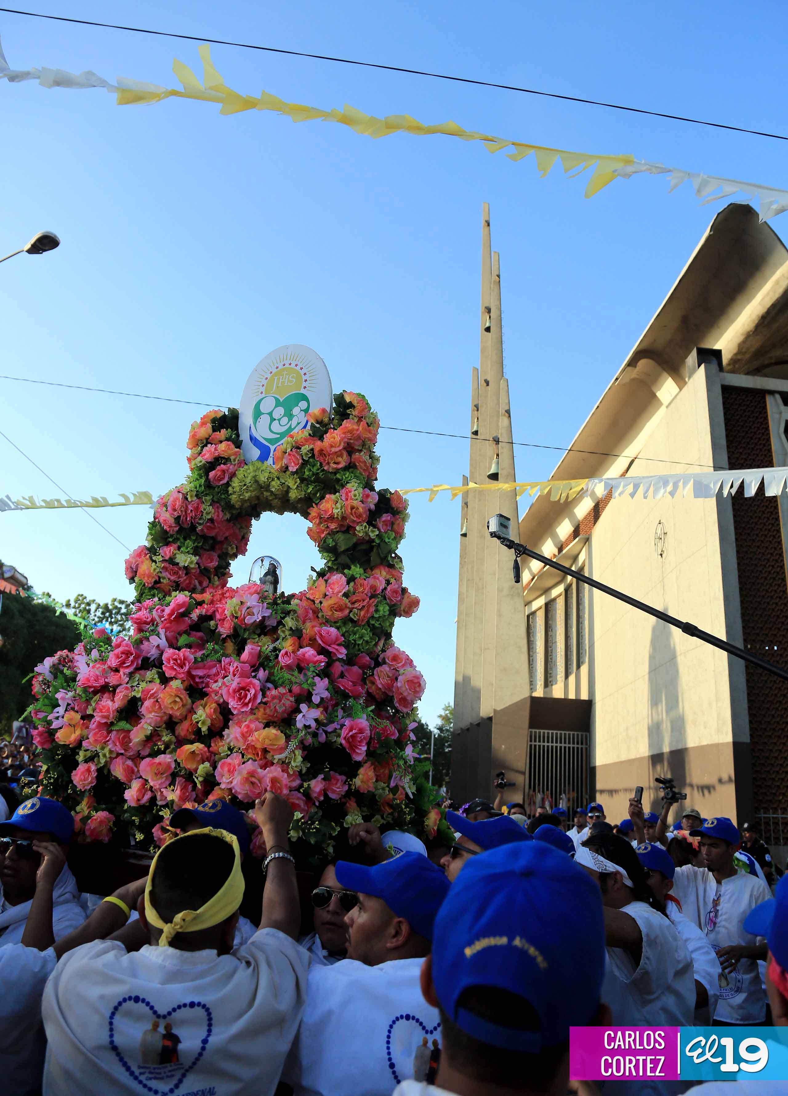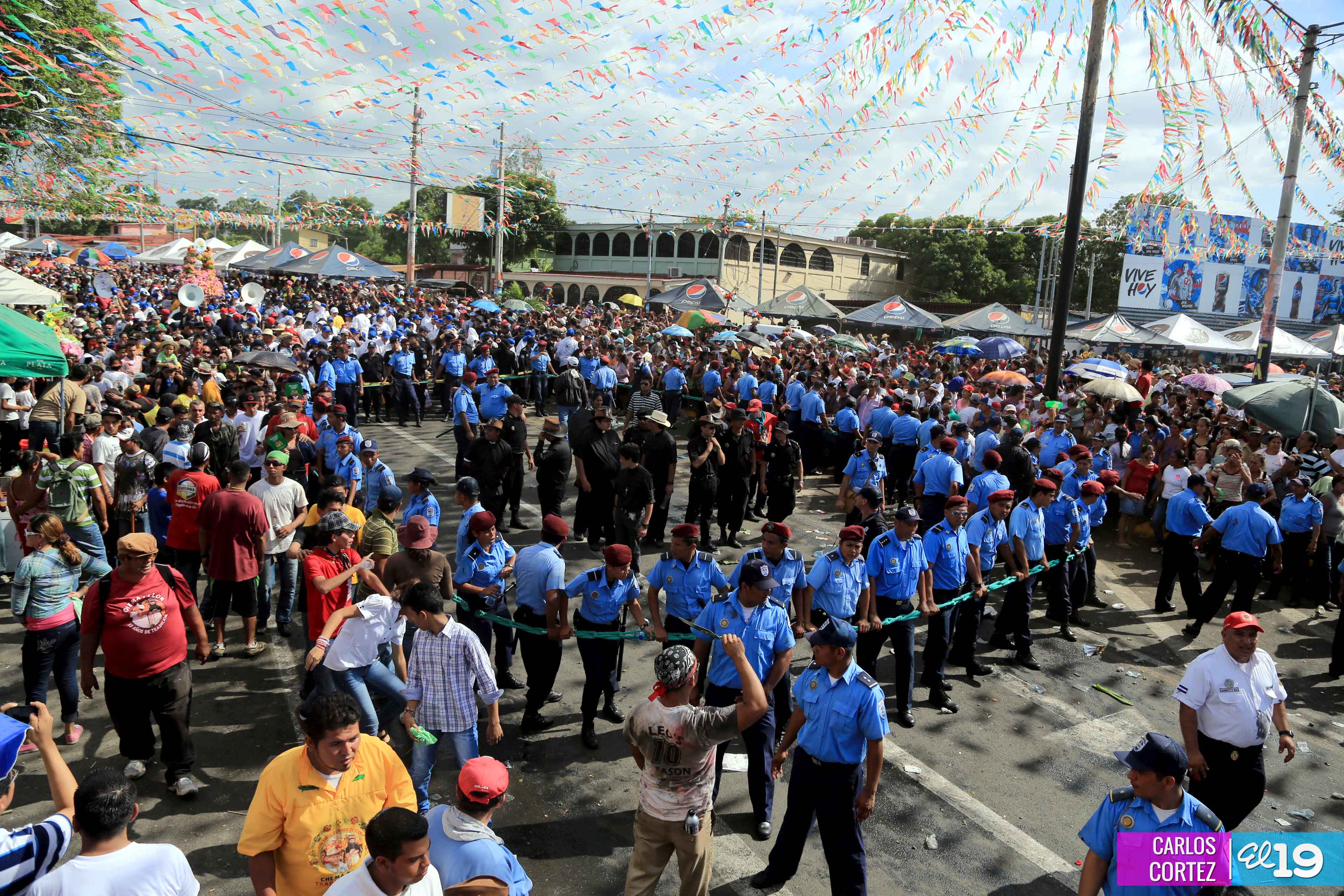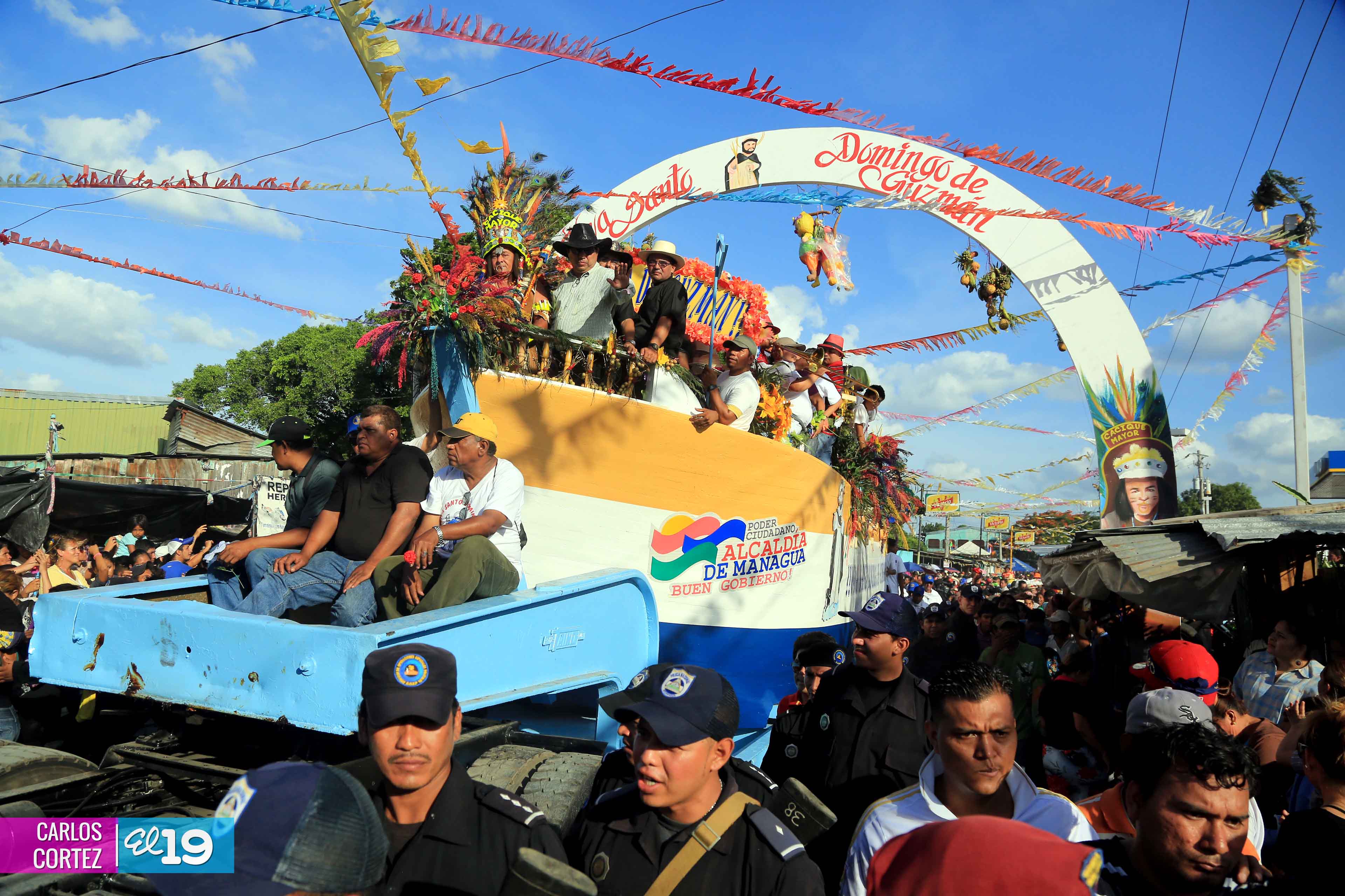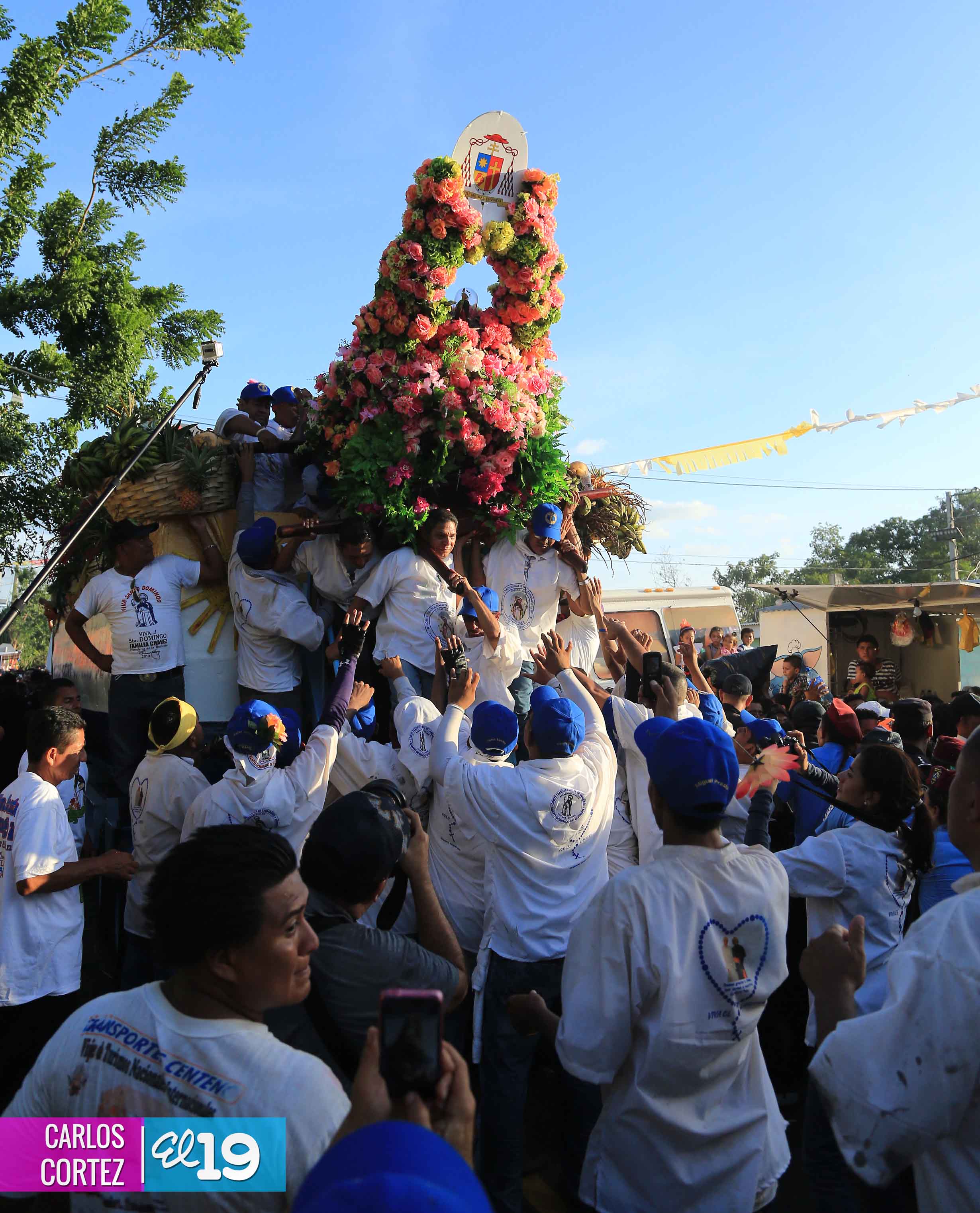 Centenares de miles de nicaragüenses acompañaron por casi 12 horas la llegada de Santo Domingo de Guzmán a Managua, que entre vivas, explosión de cohetes y una algarabía multicolor lo llevaron hasta la Iglesia de su mismo nombre en el sector del barrio 19 de Julio, lugar en que permanecerá los próximos diez días.
