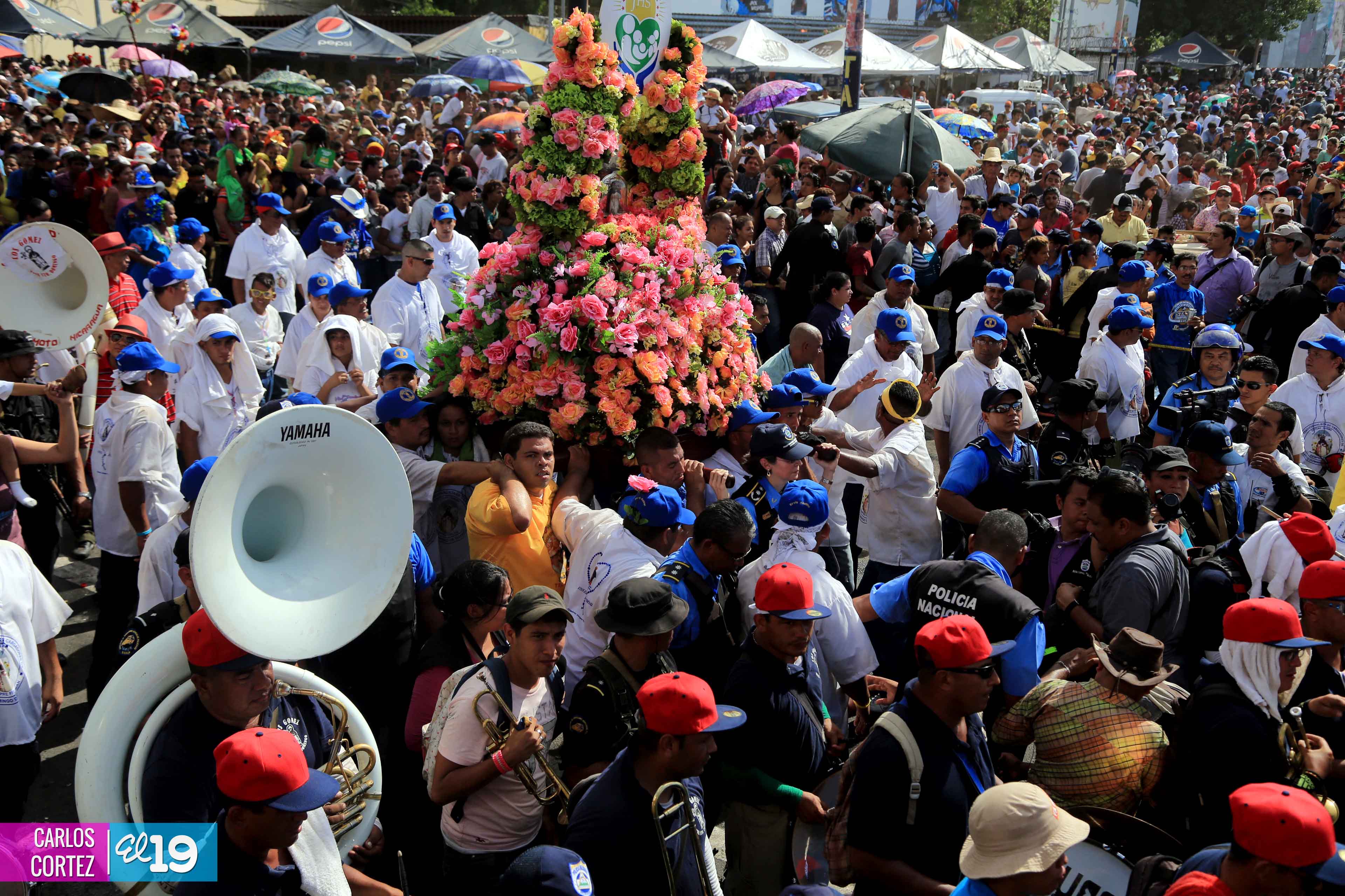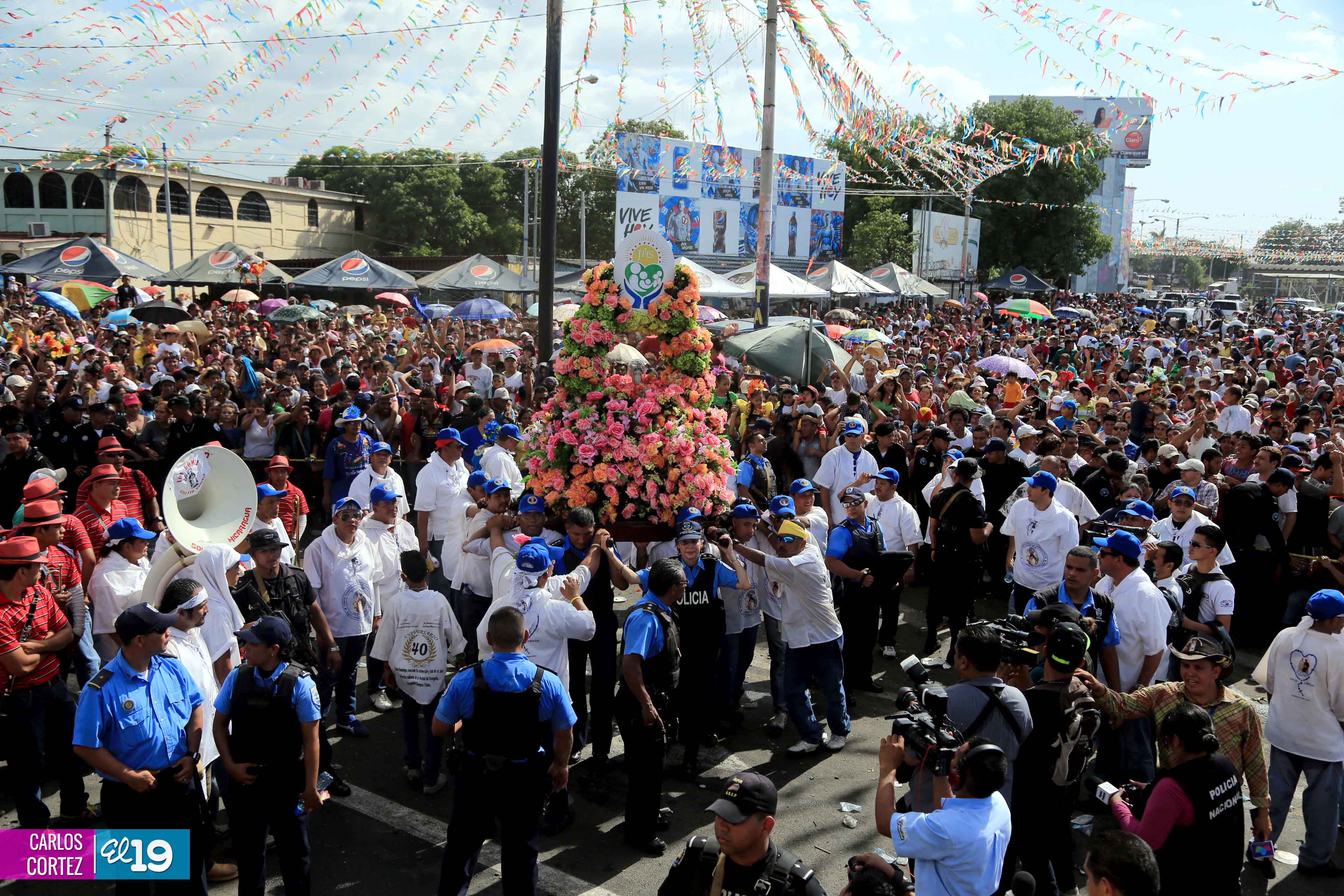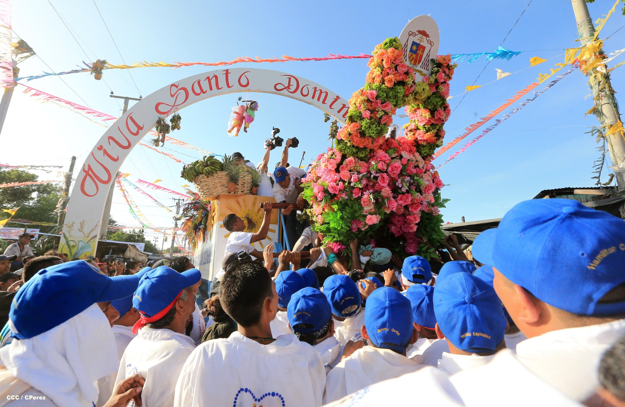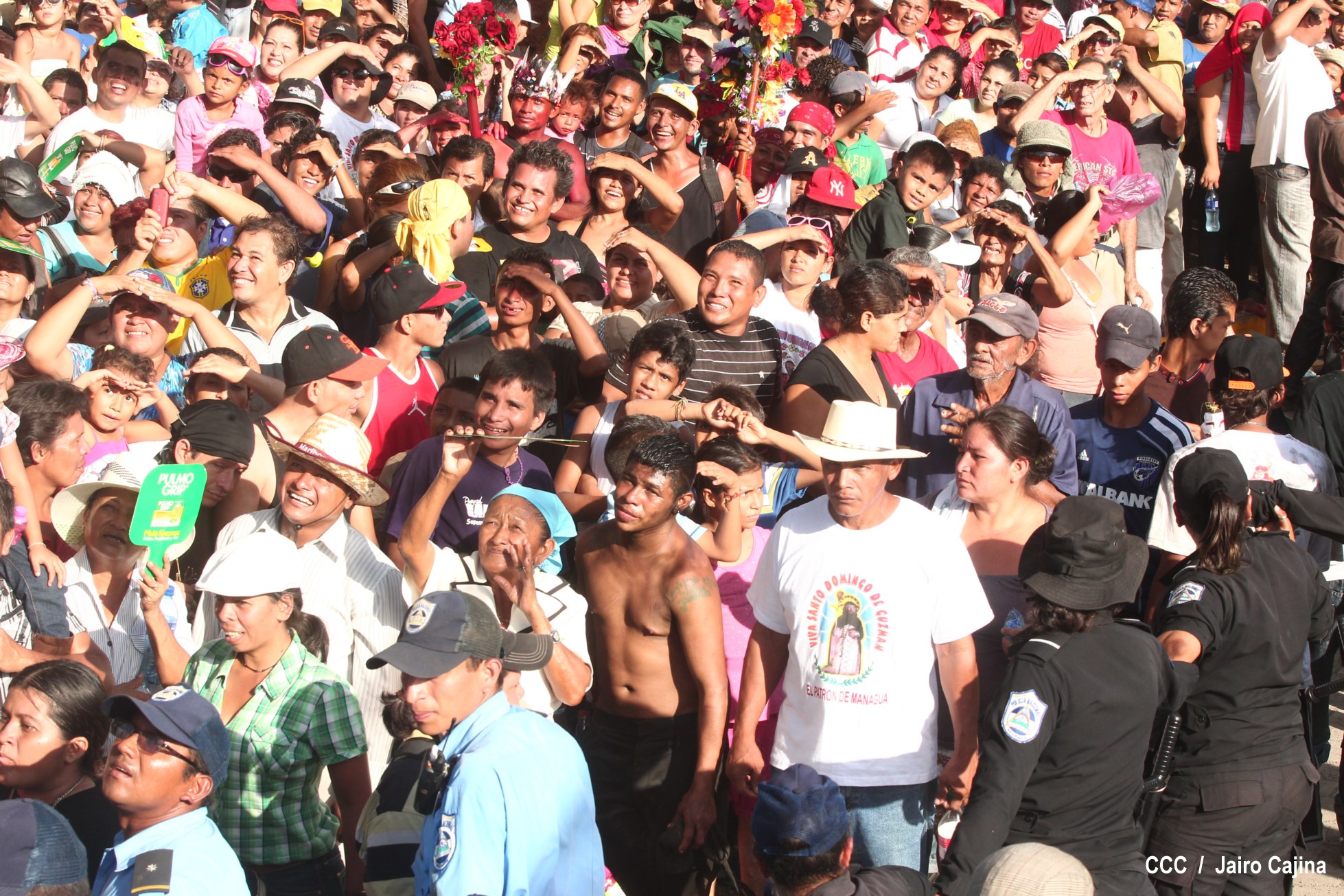 Centenares de miles de nicaragüenses acompañaron por casi 12 horas la llegada de Santo Domingo de Guzmán a Managua, que entre vivas, explosión de cohetes y una algarabía multicolor lo llevaron hasta la Iglesia de su mismo nombre en el sector del barrio 19 de Julio, lugar en que permanecerá los próximos diez días.