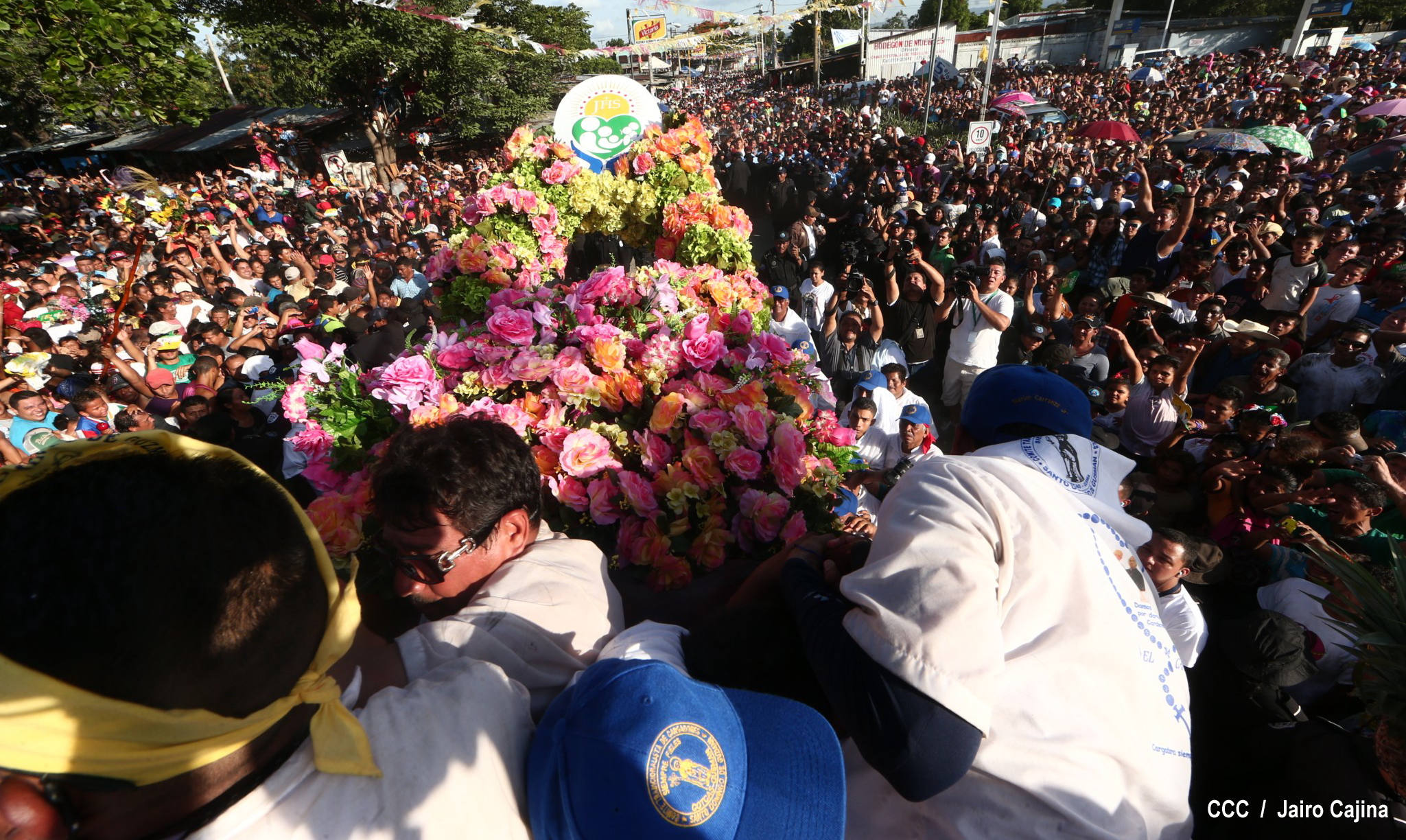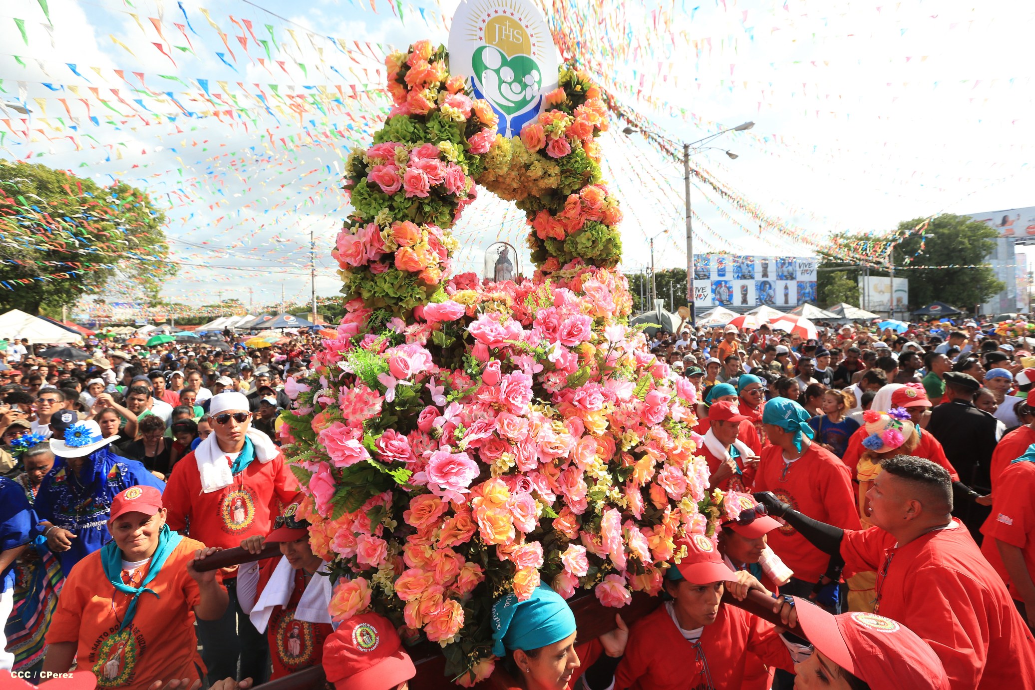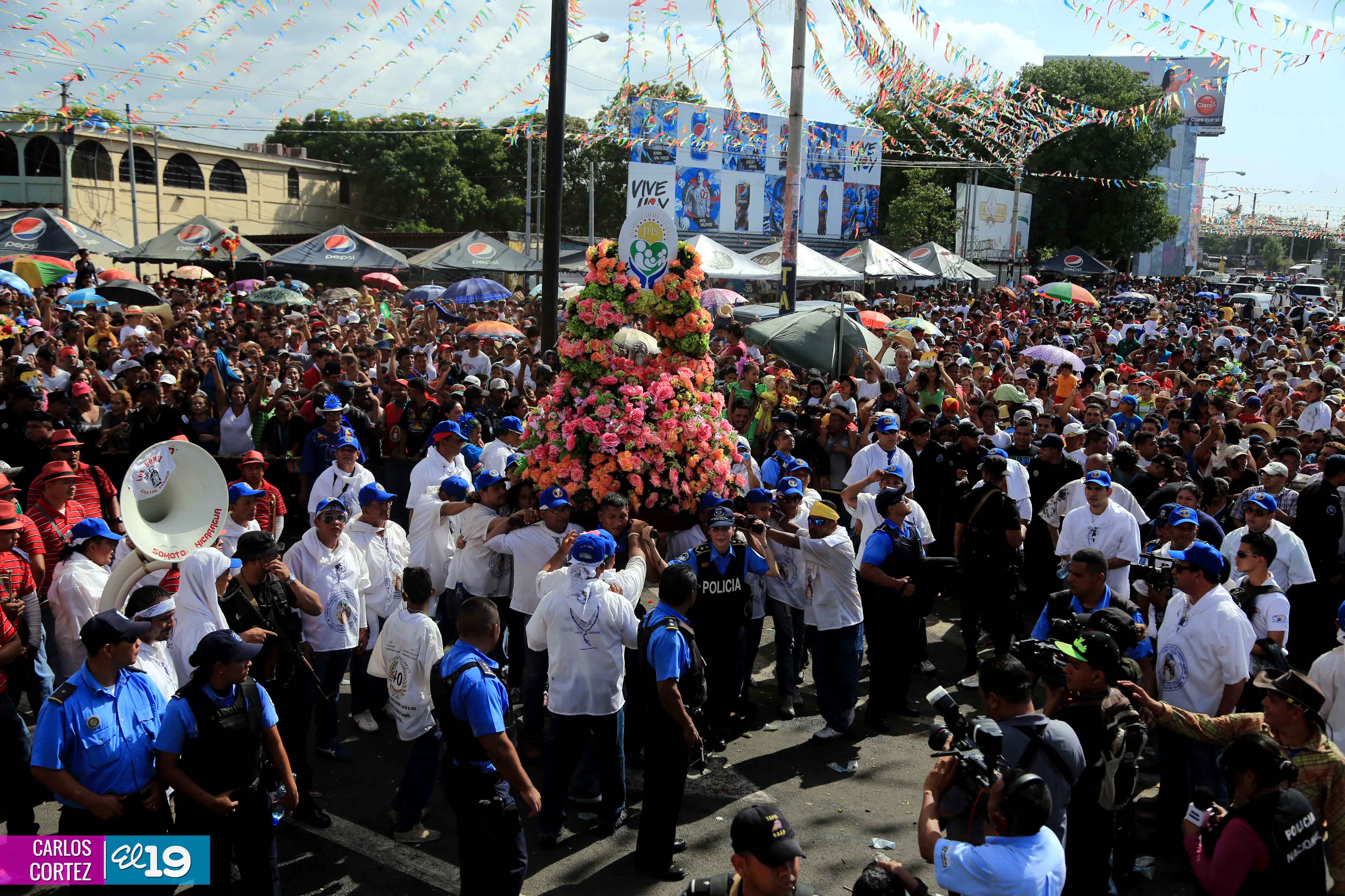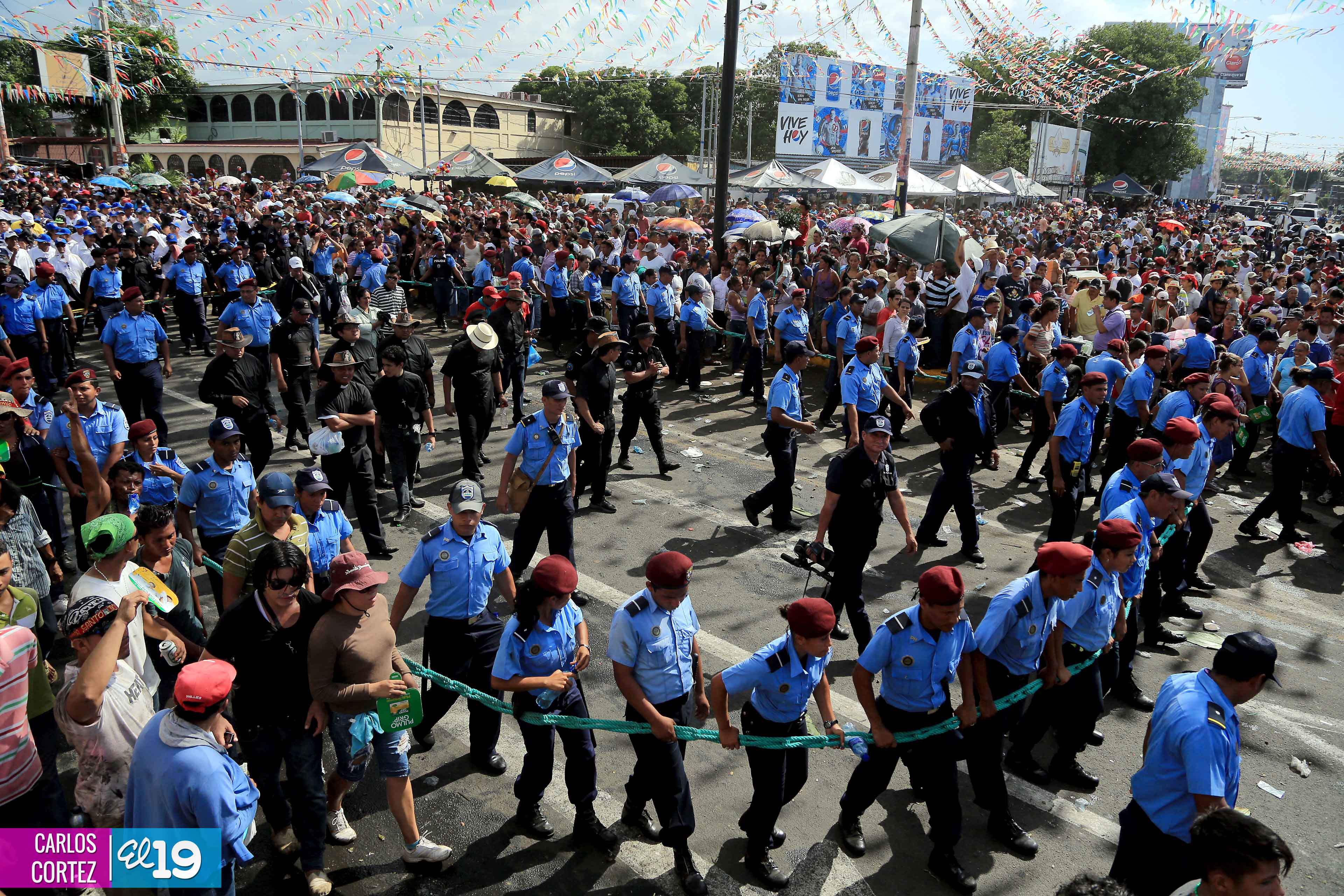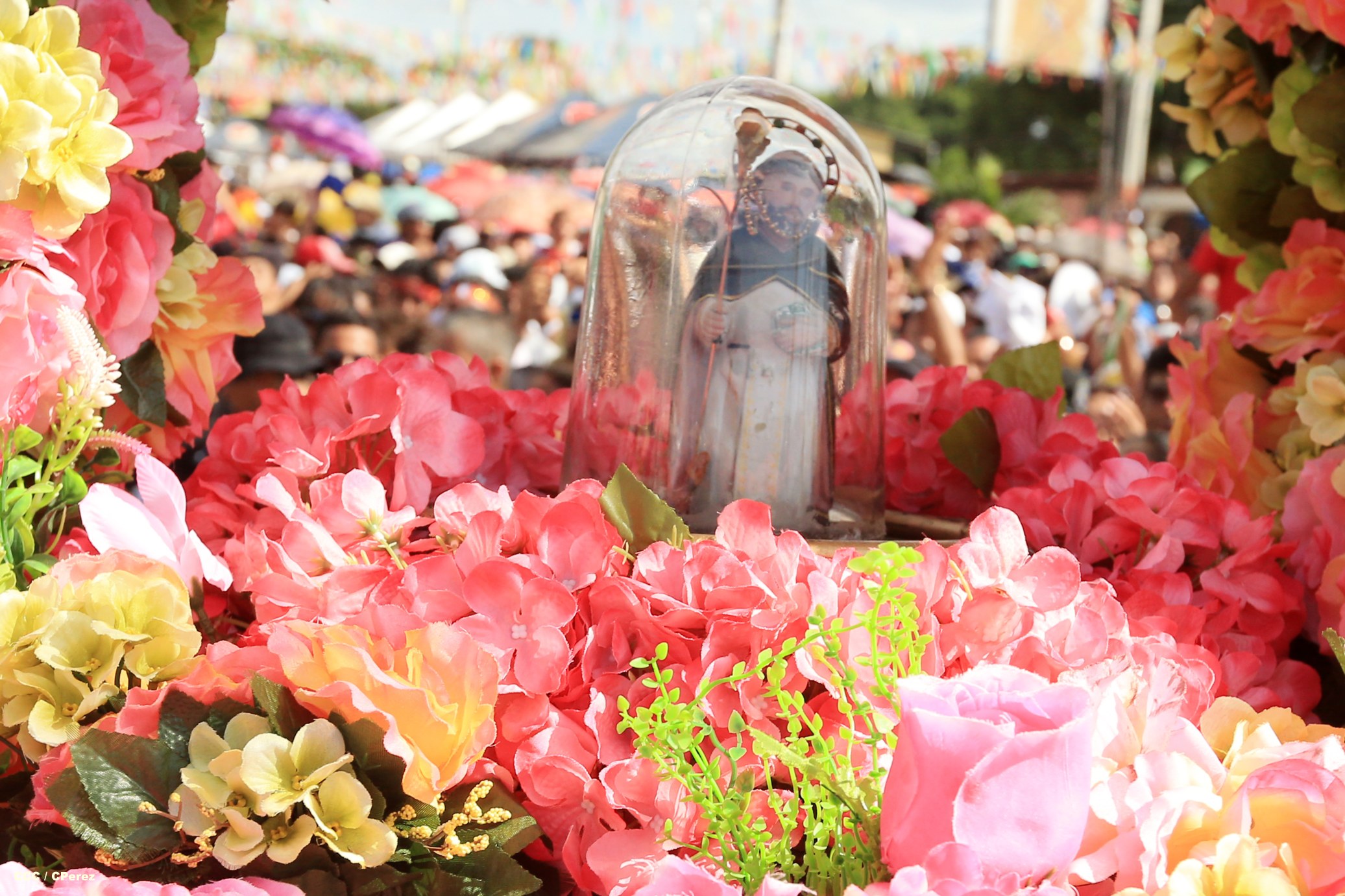 Centenares de miles de nicaragüenses acompañaron por casi 12 horas la llegada de Santo Domingo de Guzmán a Managua, que entre vivas, explosión de cohetes y una algarabía multicolor lo llevaron hasta la Iglesia de su mismo nombre en el sector del barrio 19 de Julio, lugar en que permanecerá los próximos diez días.