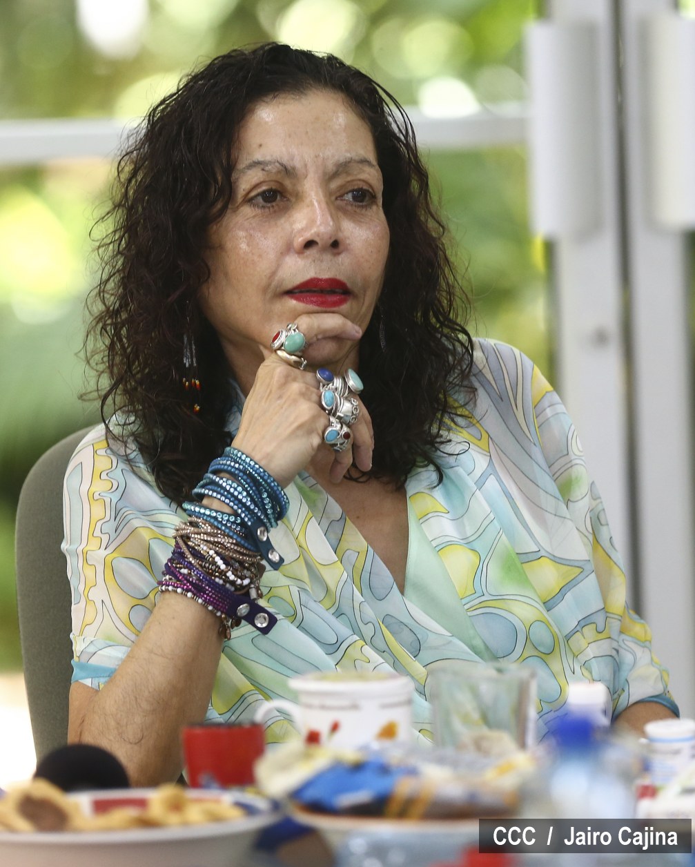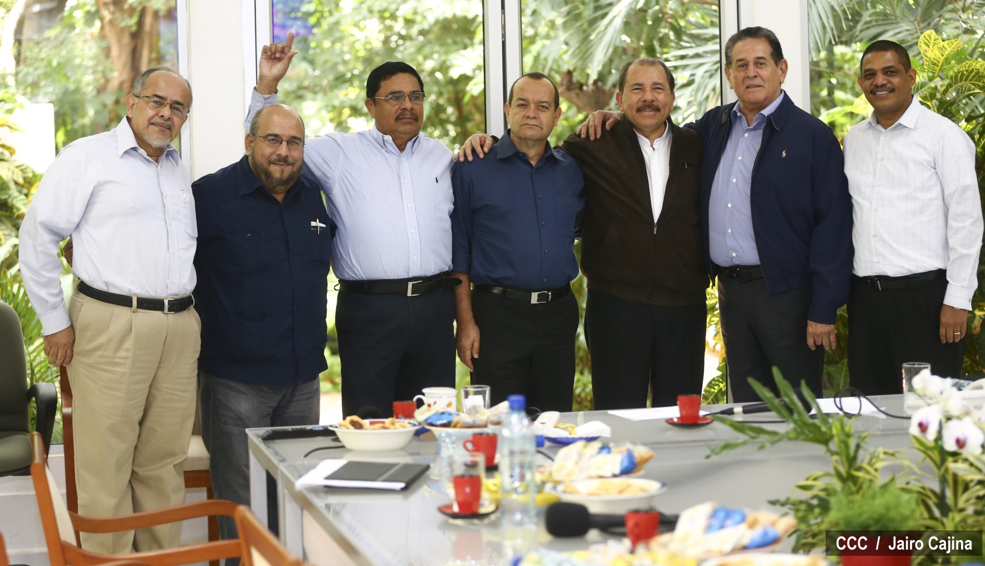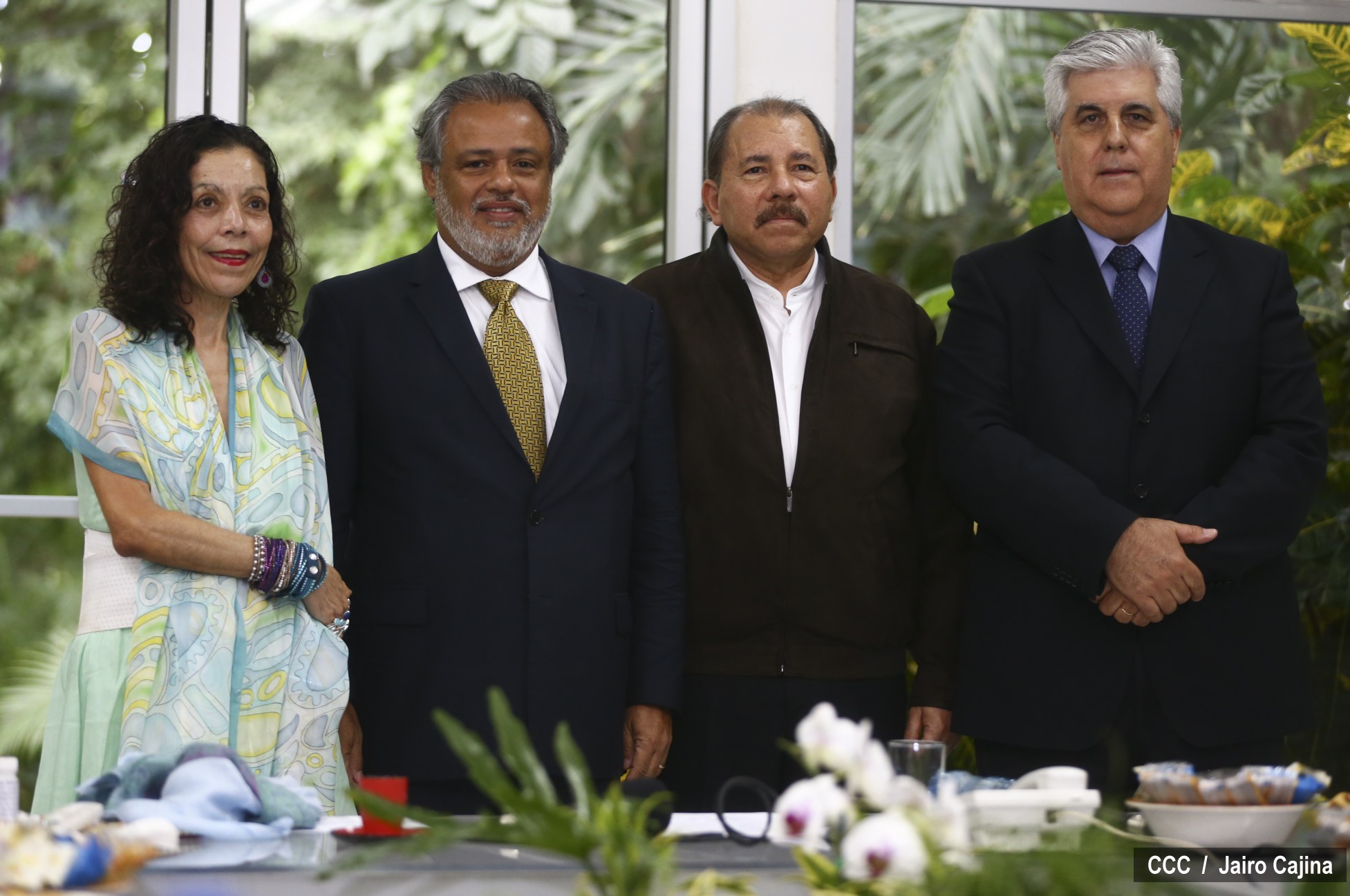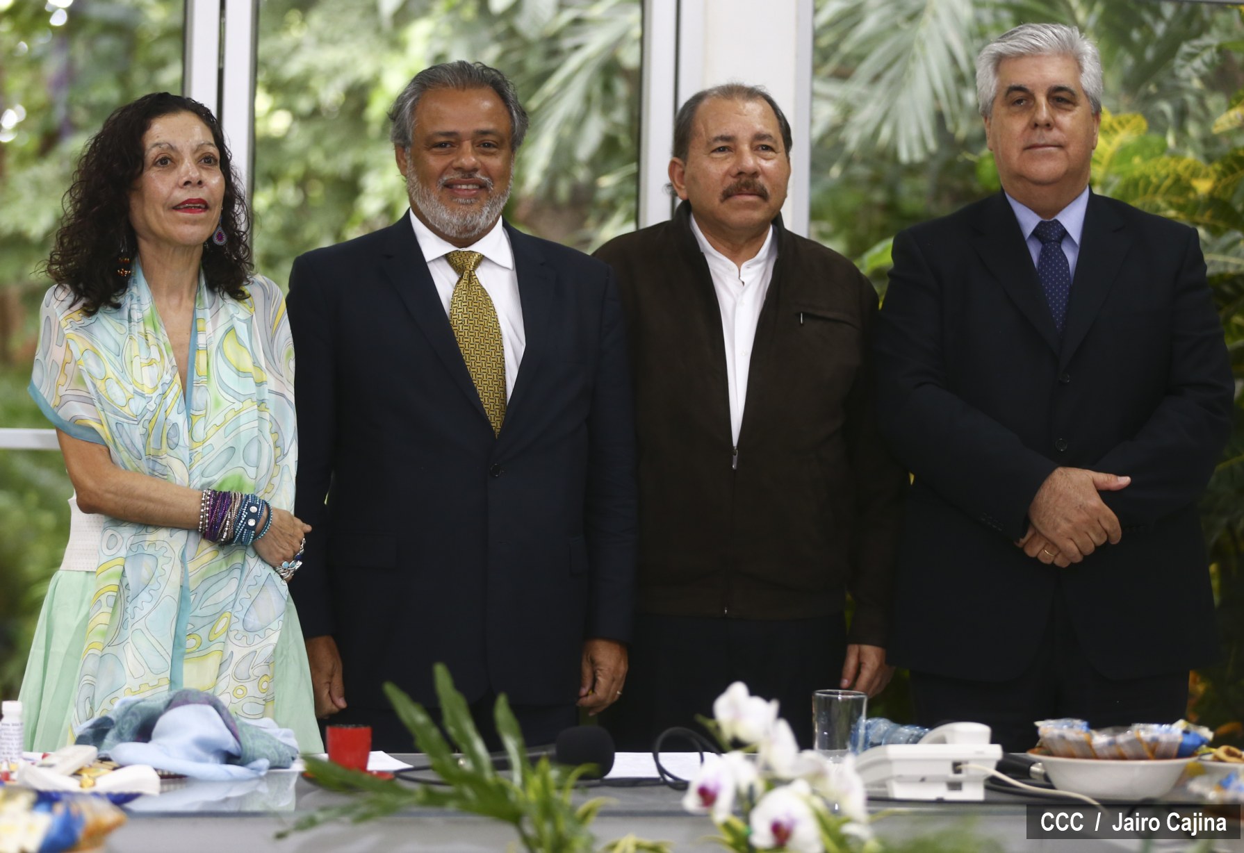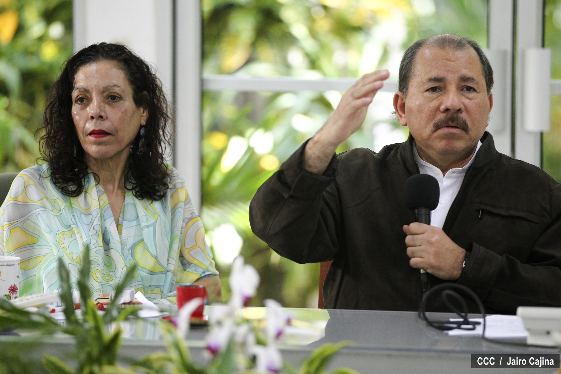 El Presidente de la República, Comandante Daniel Ortega Saavedra, y la Compañera Rosario Murillo, Coordinadora del Consejo de Comunicación y Ciudadanía, sostuvieron una sesión de trabajo con los representantes de empresas brasileñas que a partir del próximo año iniciarán la construcción de la planta de generación hidroeléctrica Tumarín.