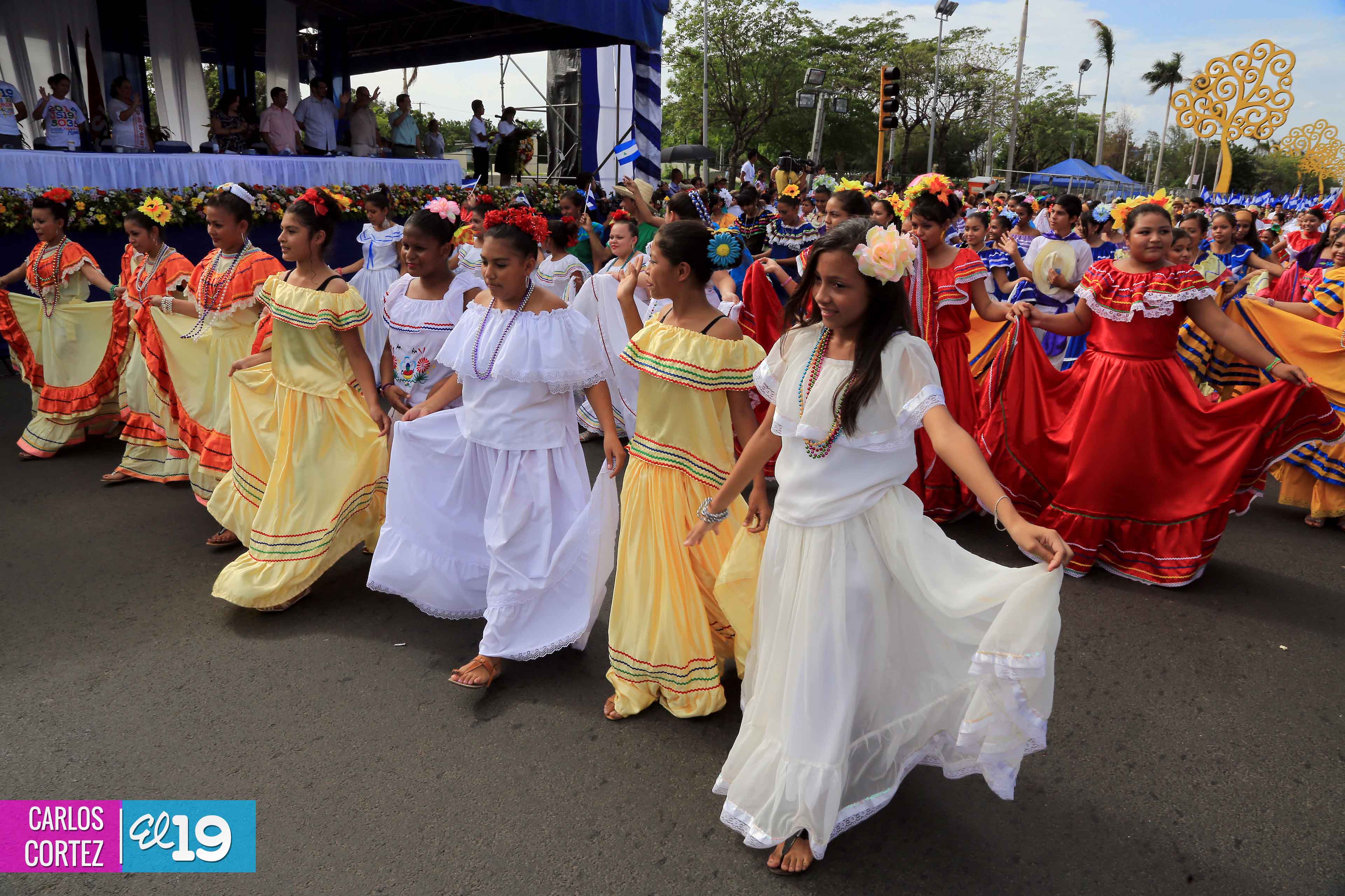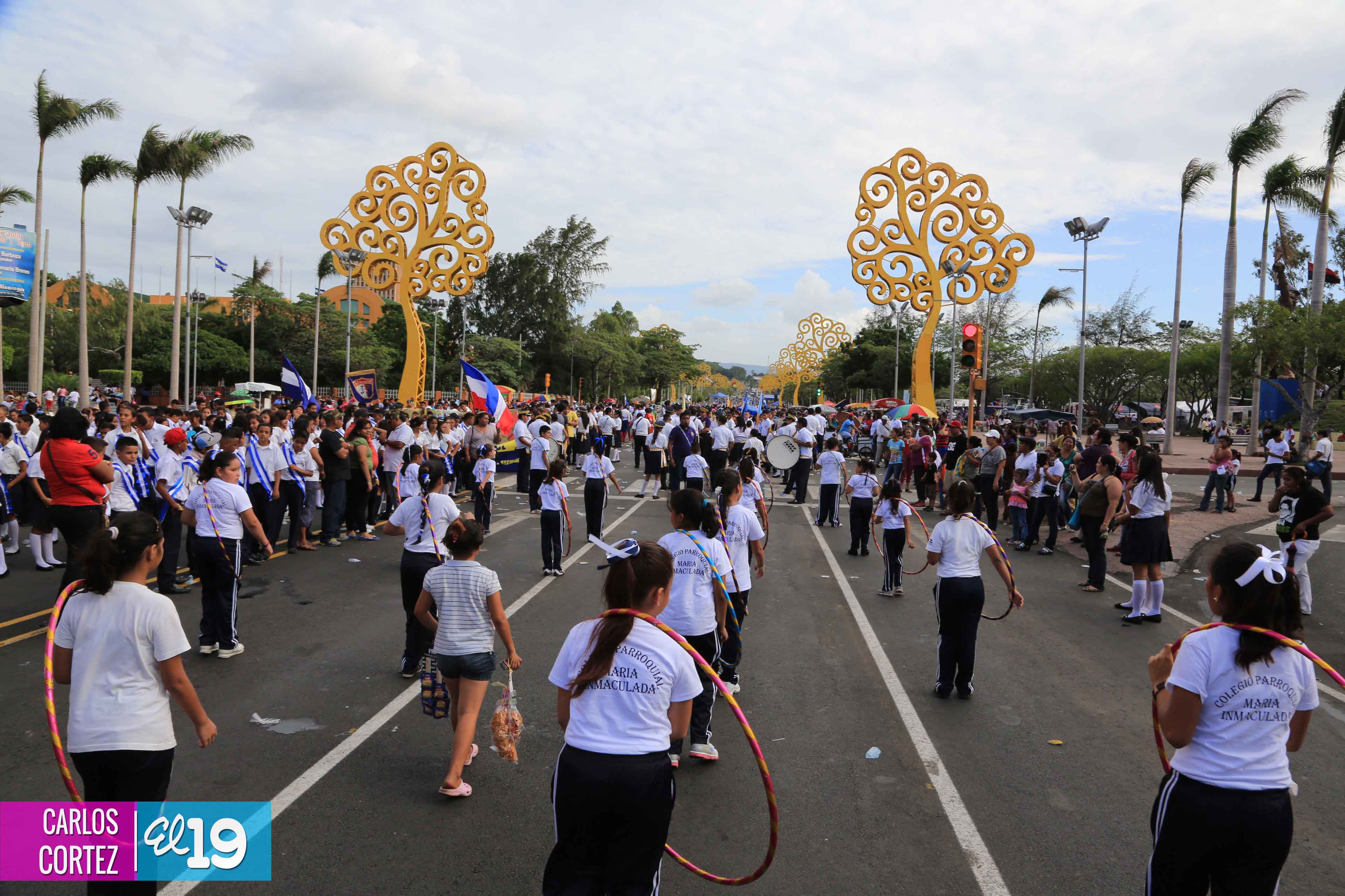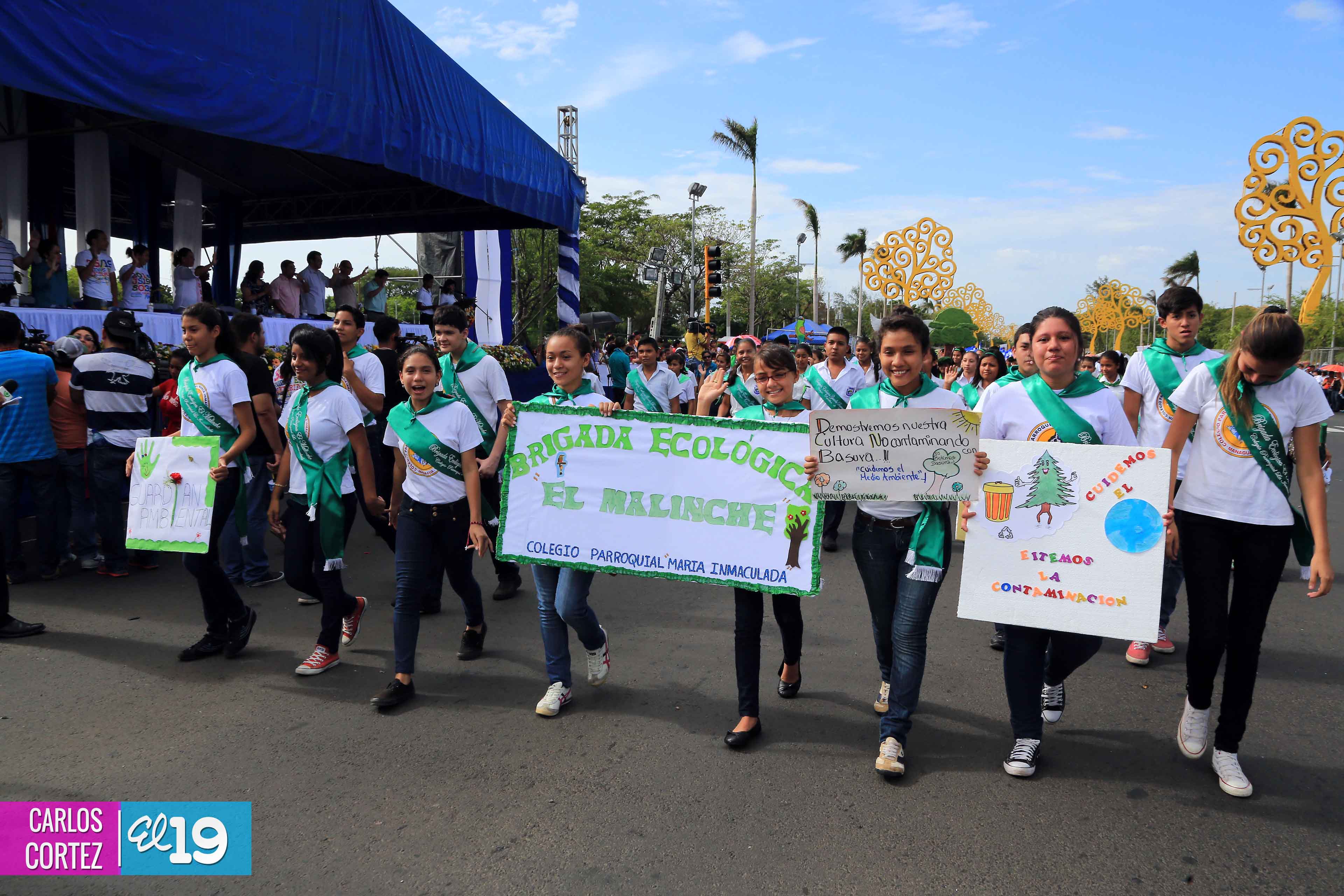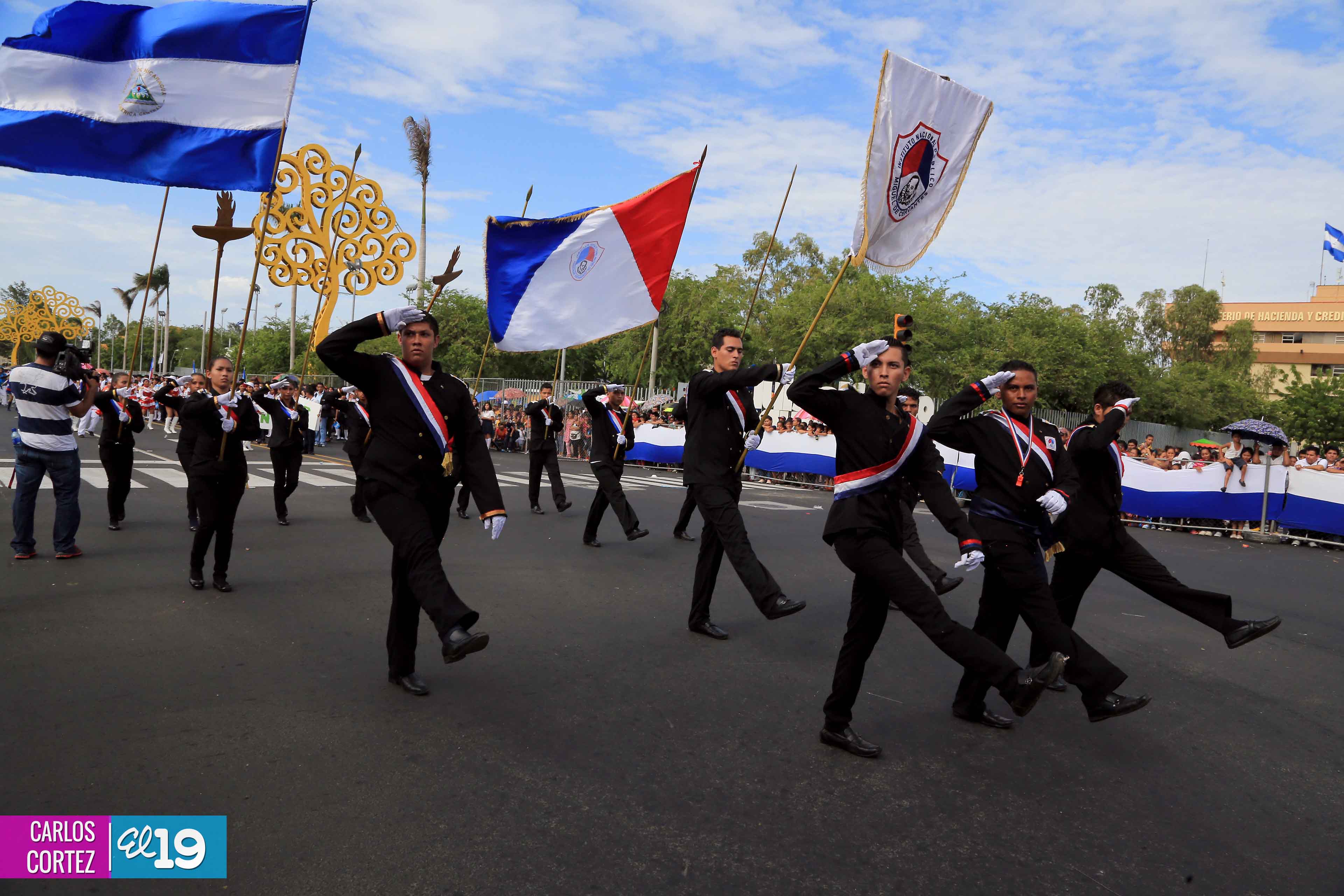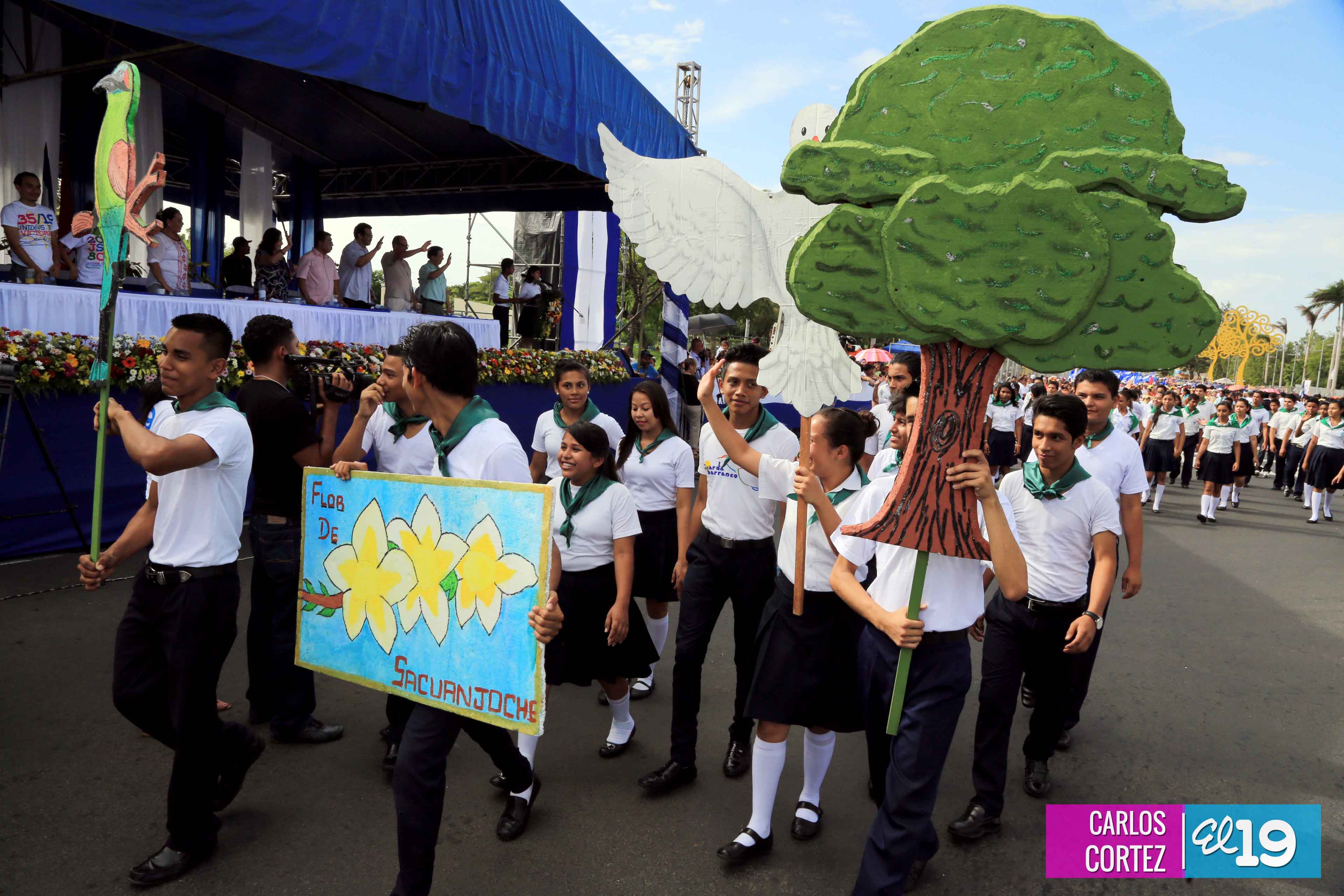 Miles de estudiantes de los distritos III y IV de Managua, protagonizaron el Desfile Patrio en saludo a la Cruzada Nacional de Alfabetización (CNA) que cumplió su 34 aniversario.