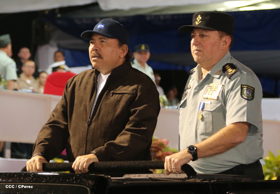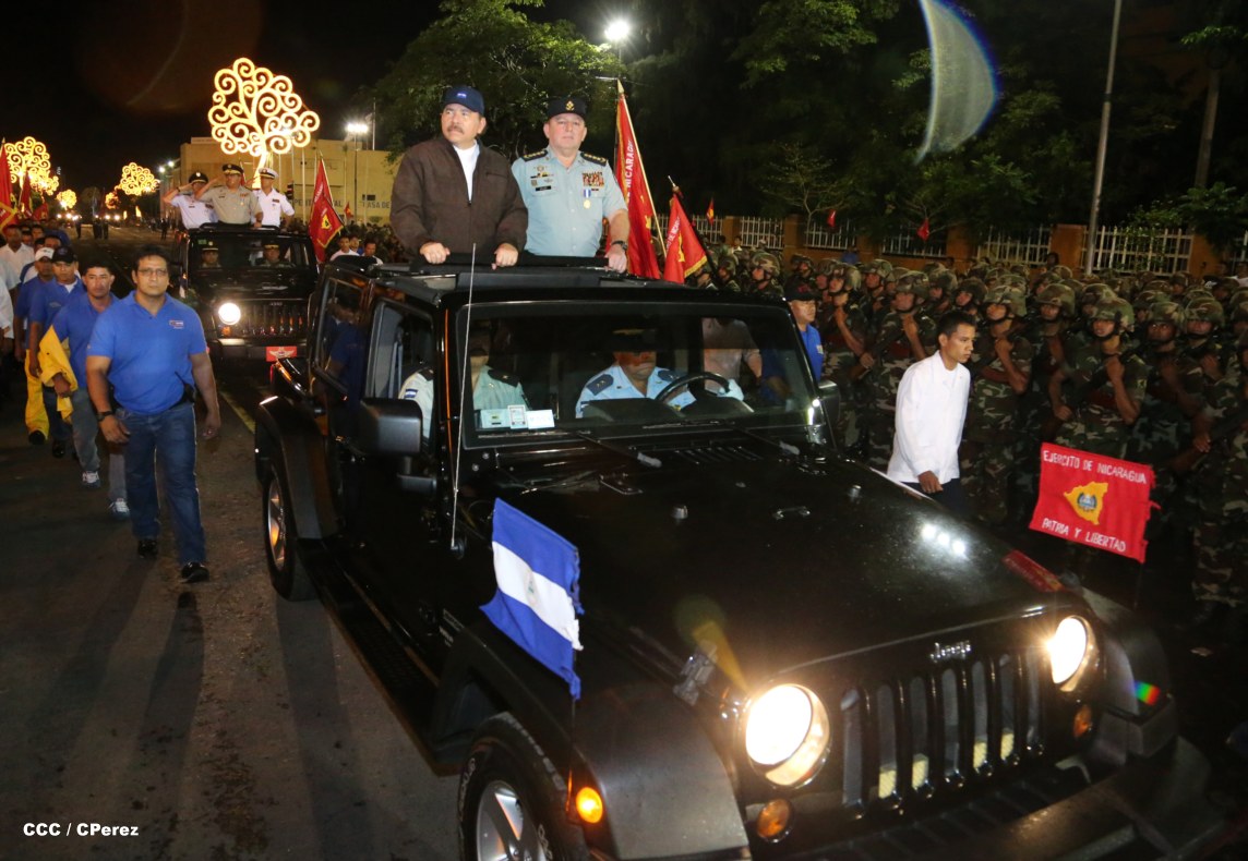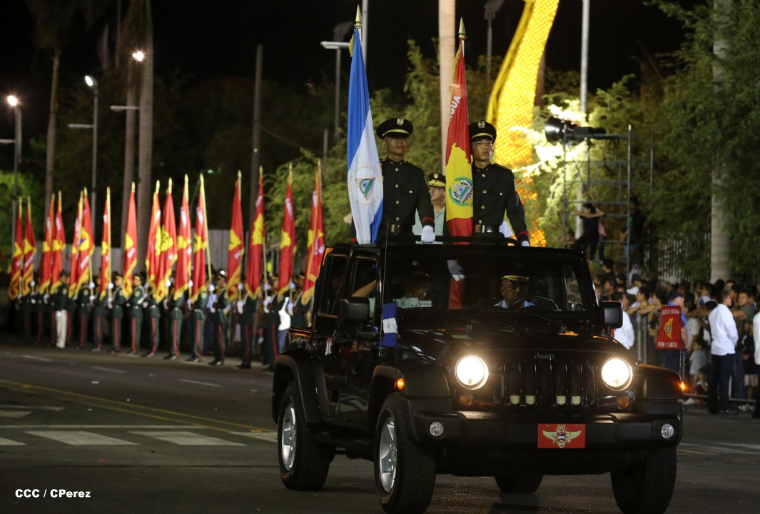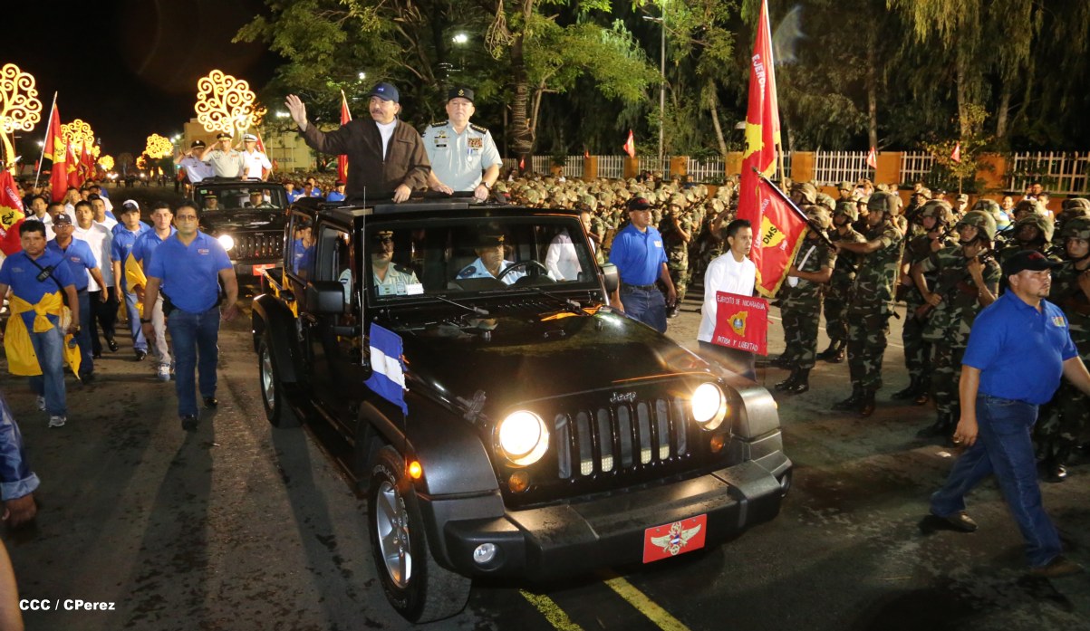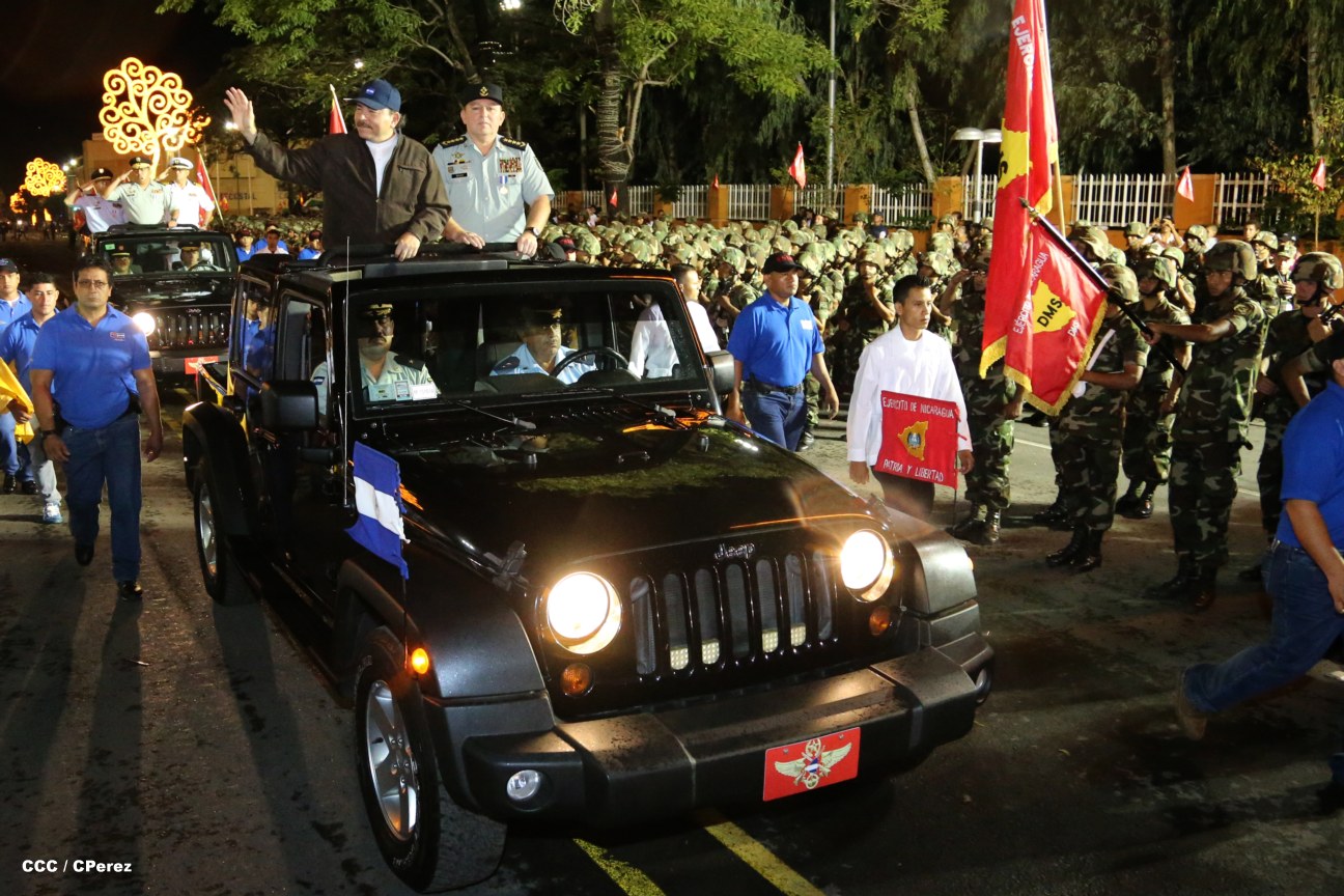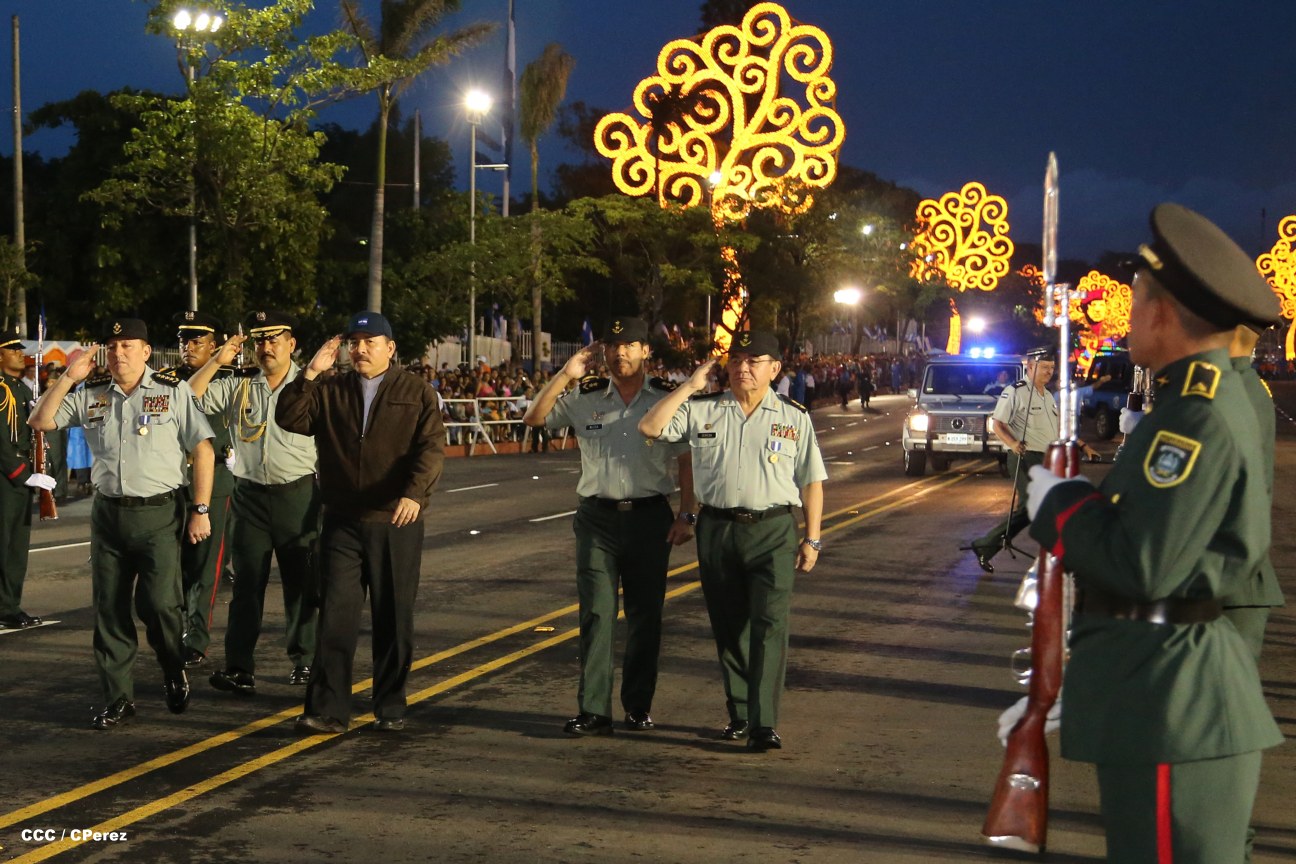 El Presidente de la República, comandante Daniel Ortega Saavedra, junto al Jefe del Ejército, General Julio César Avilés, encabezaron este miércoles el desfile militar en saludo al 35 Aniversario de la fundación de la Fuerzas Armadas de Nicaragua.