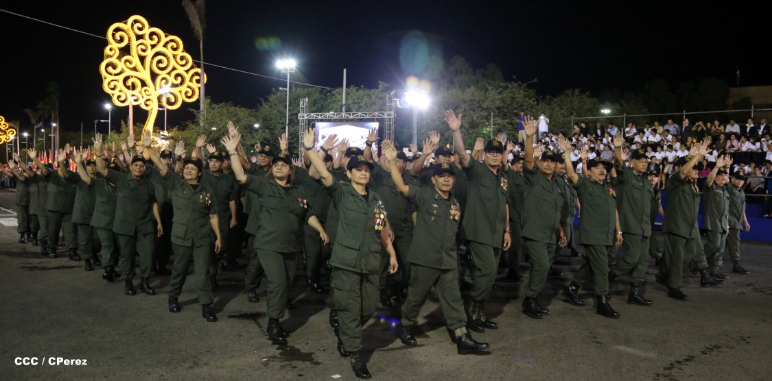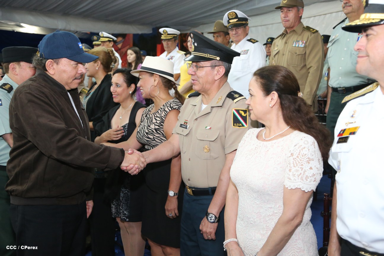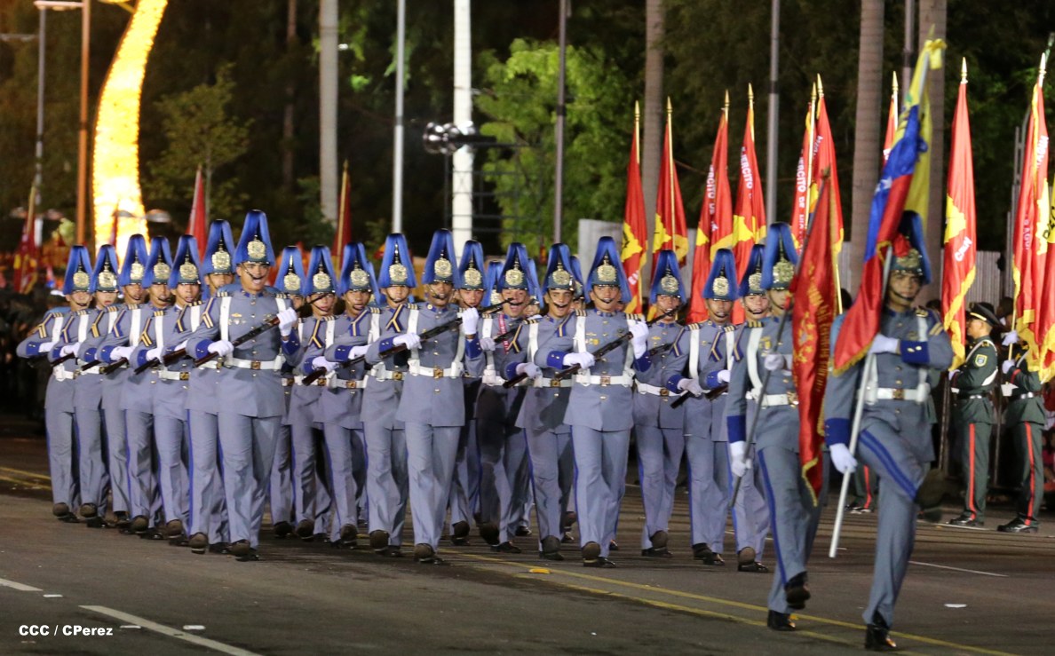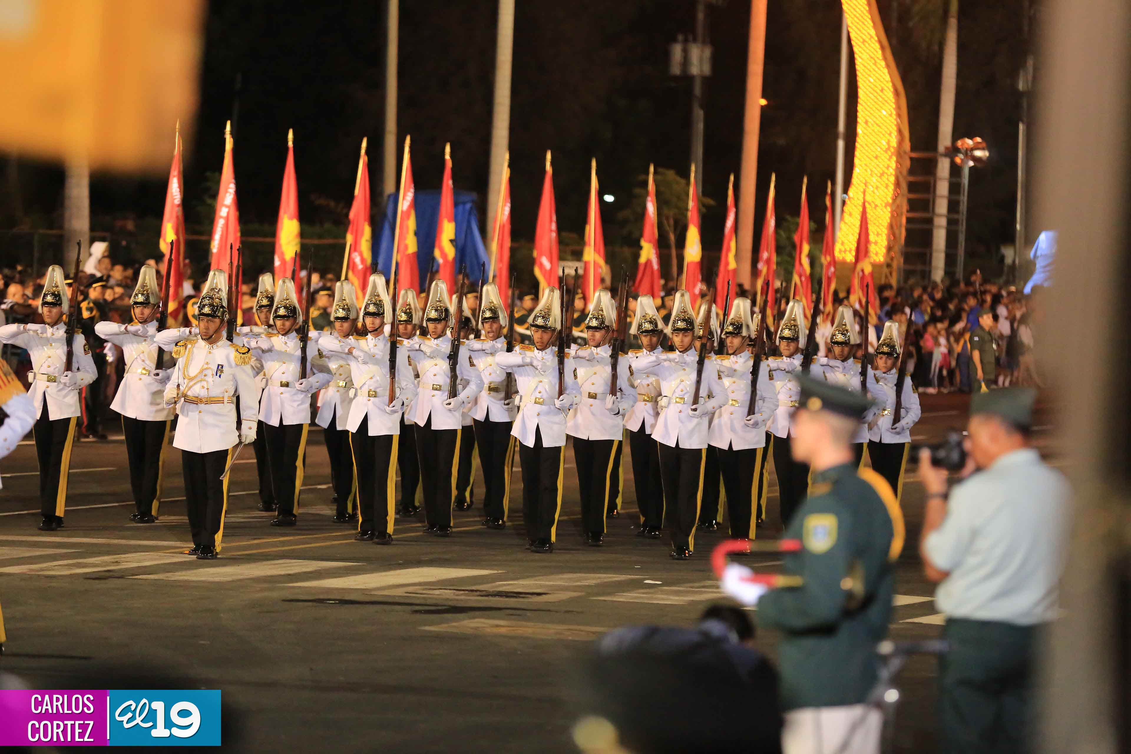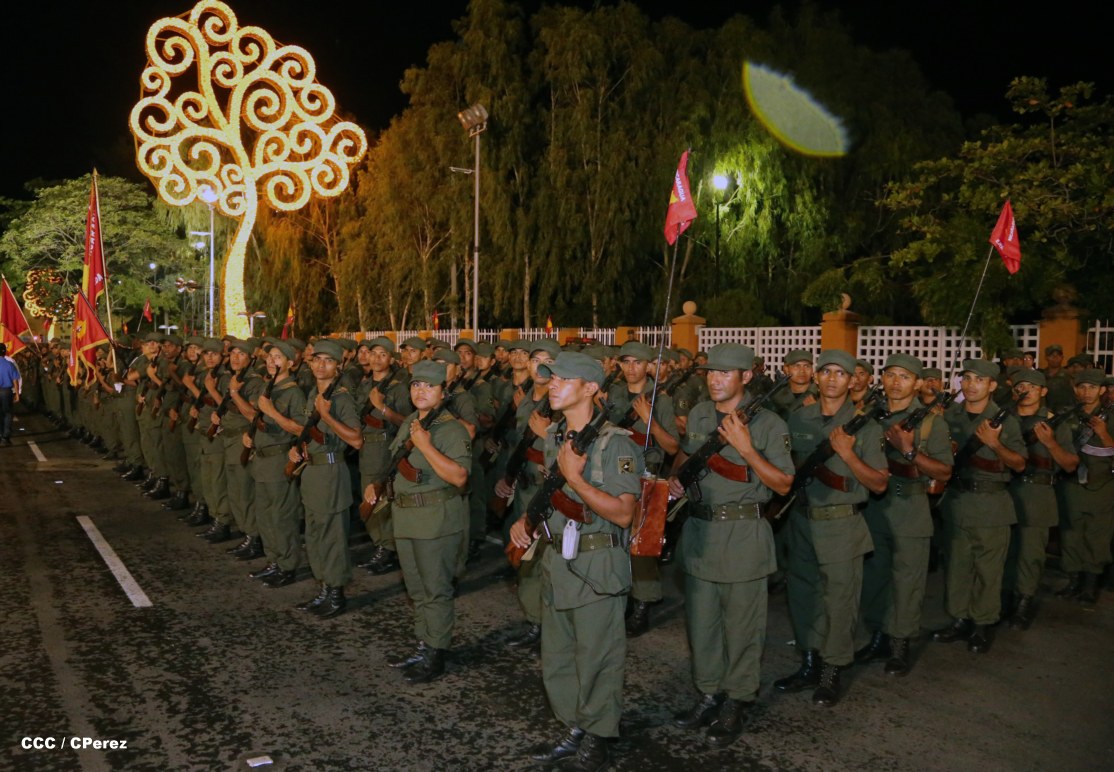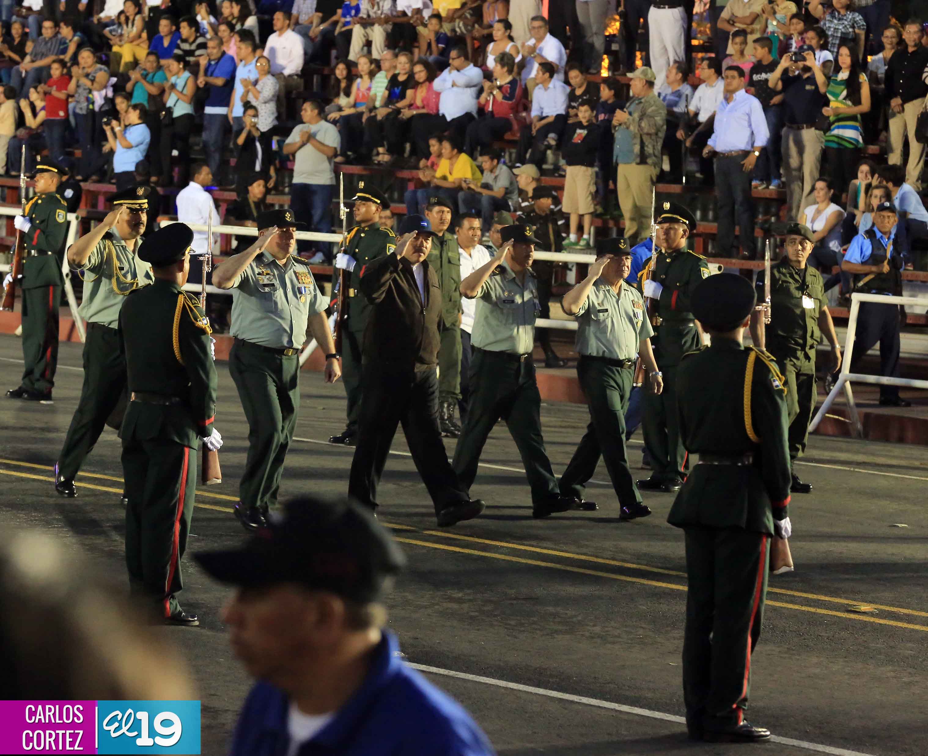 El Presidente de la República, comandante Daniel Ortega Saavedra, junto al Jefe del Ejército, General Julio César Avilés, encabezaron este miércoles el desfile militar en saludo al 35 Aniversario de la fundación de la Fuerzas Armadas de Nicaragua.