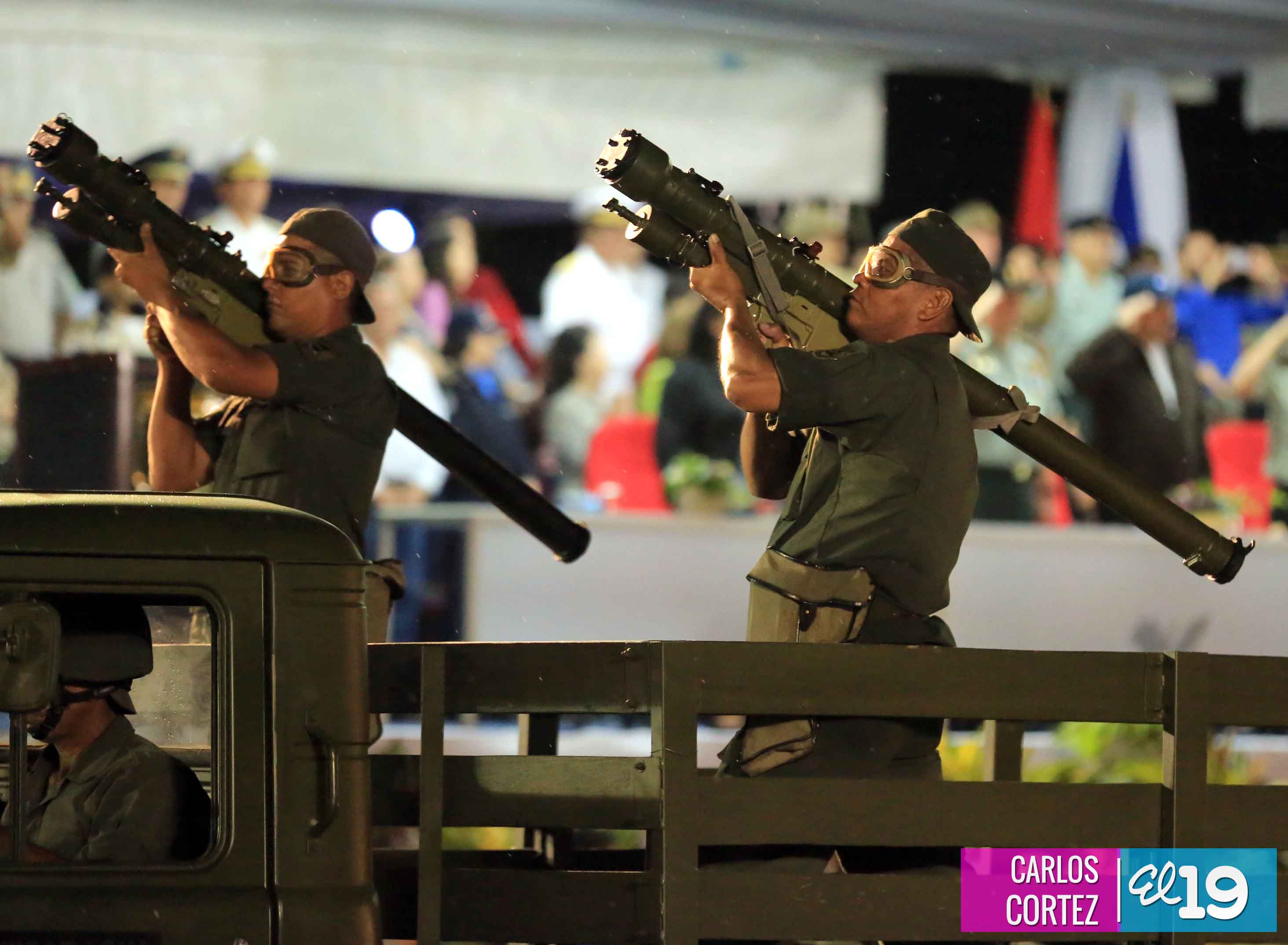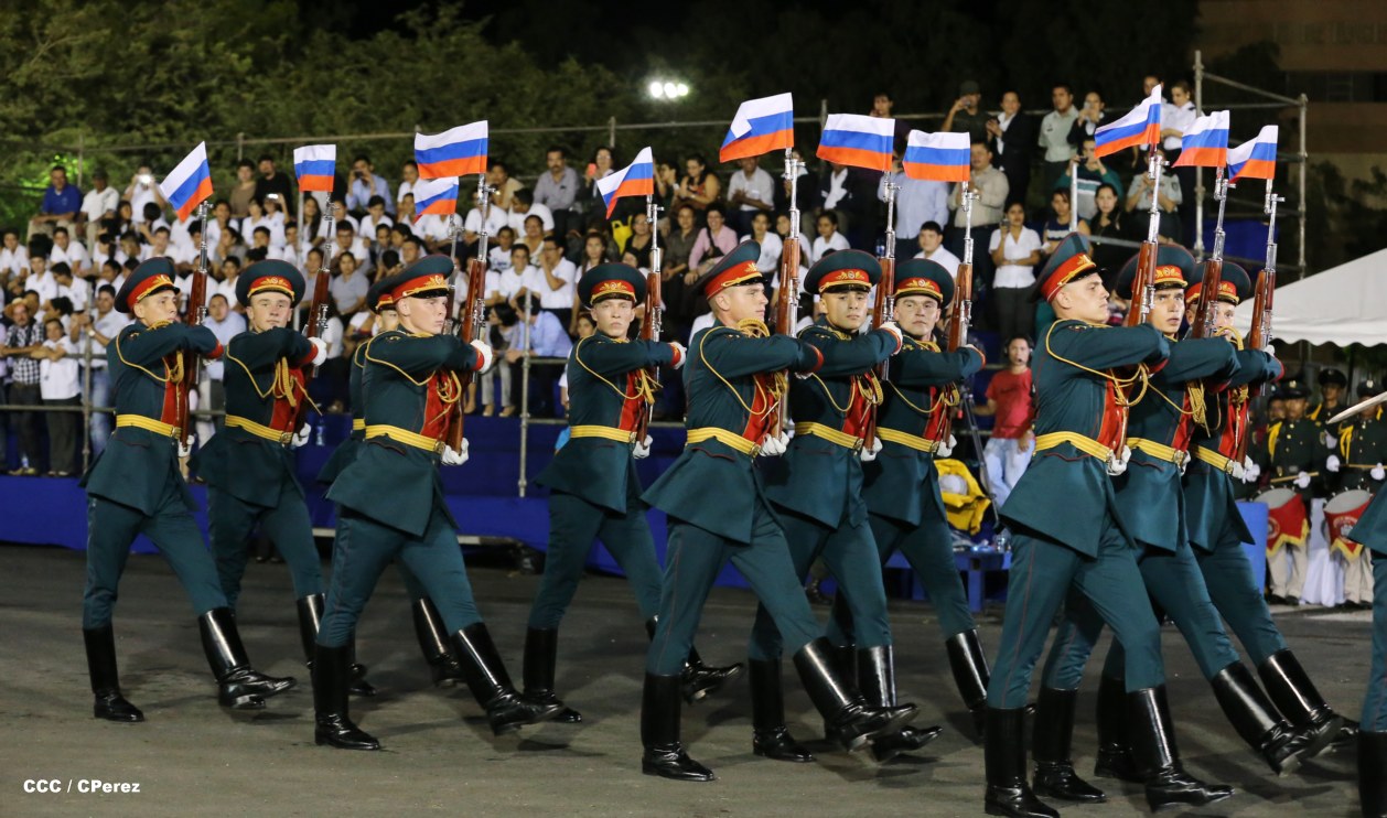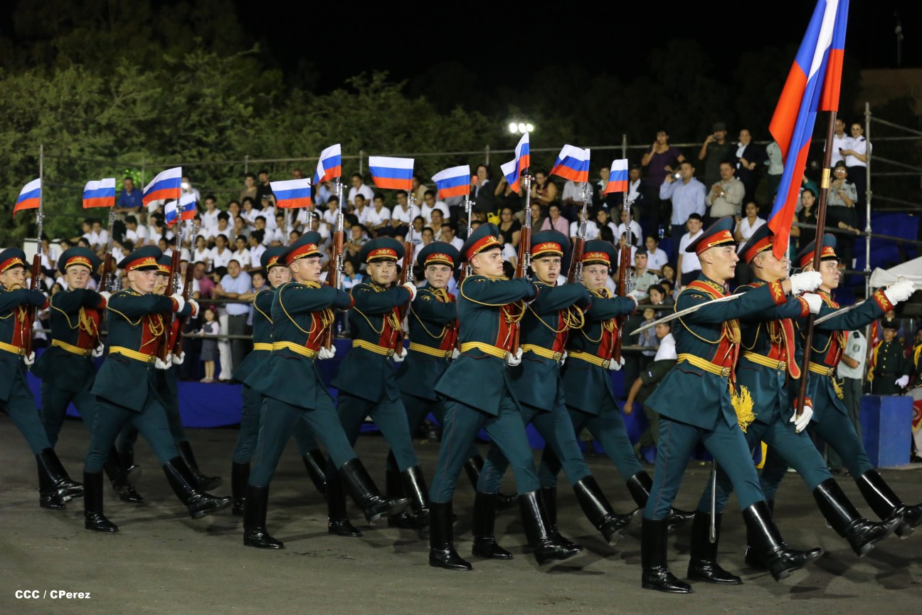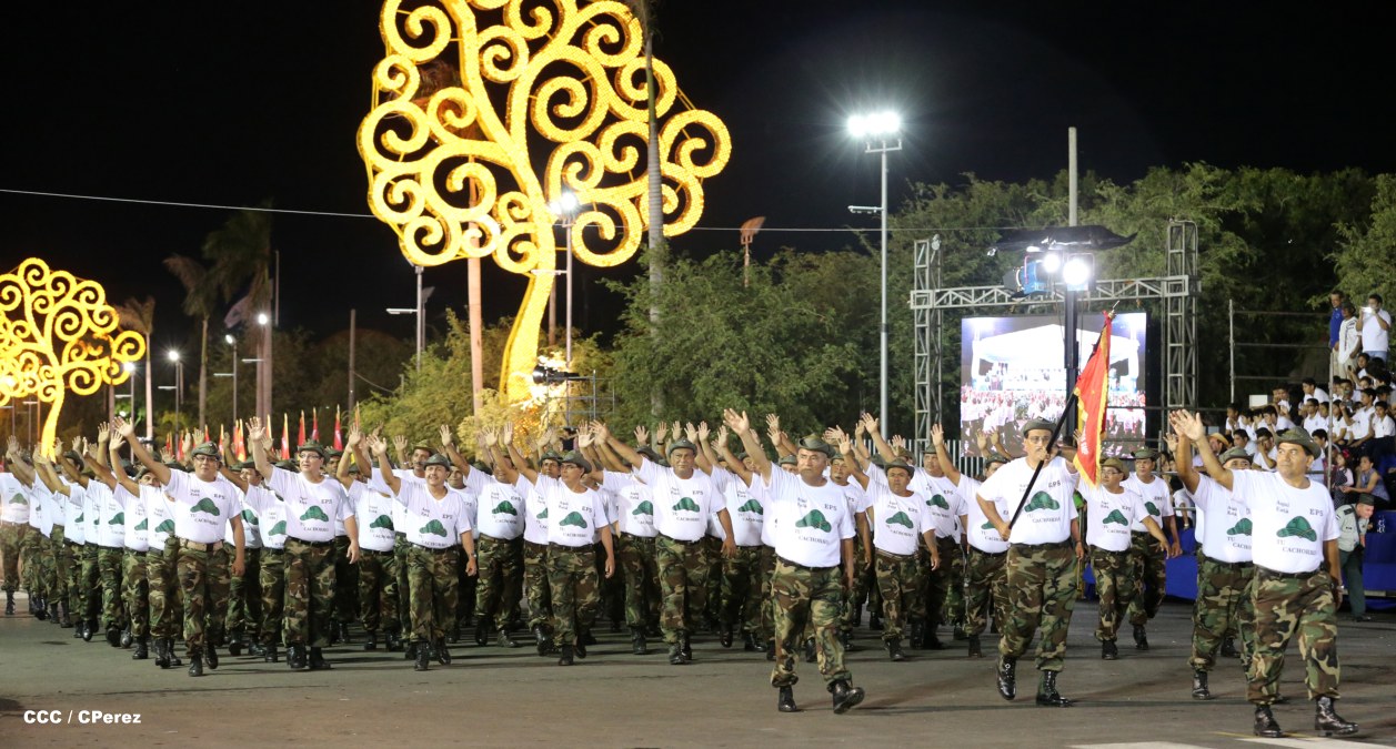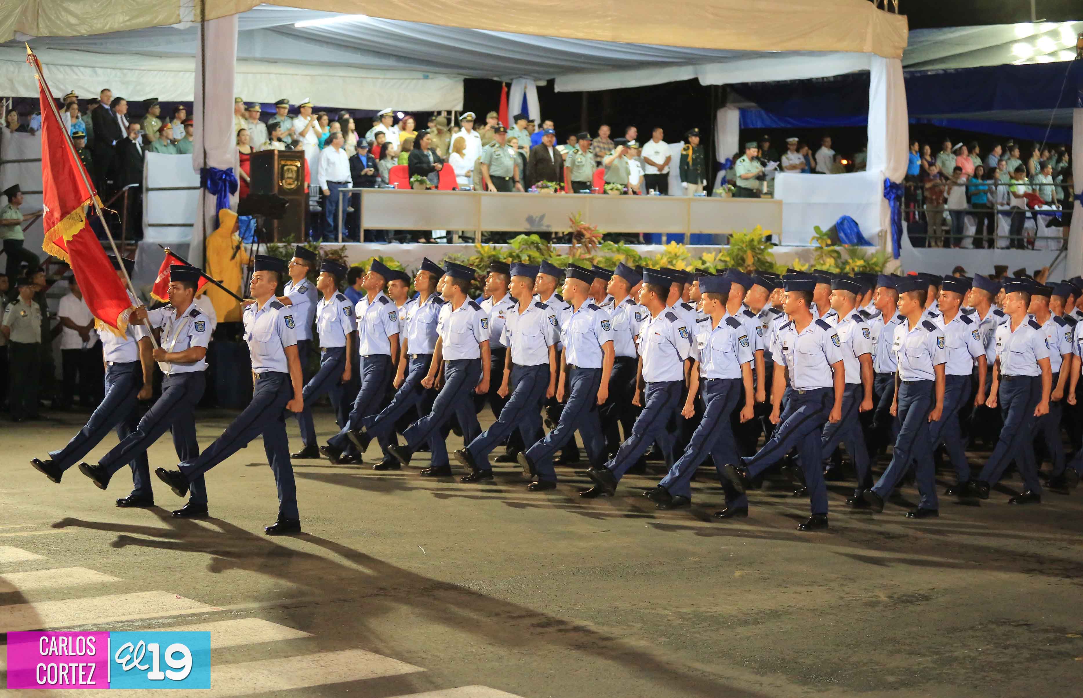El Presidente de la República, comandante Daniel Ortega Saavedra, junto al Jefe del Ejército, General Julio César Avilés, encabezaron este miércoles el desfile militar en saludo al 35 Aniversario de la fundación de la Fuerzas Armadas de Nicaragua.