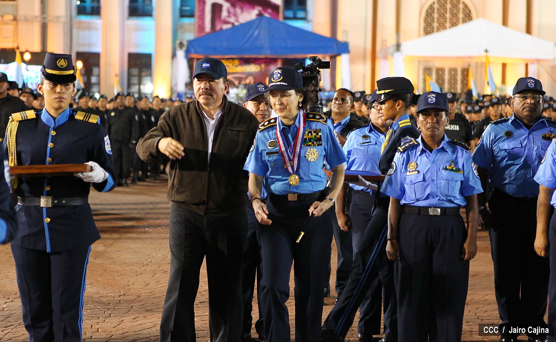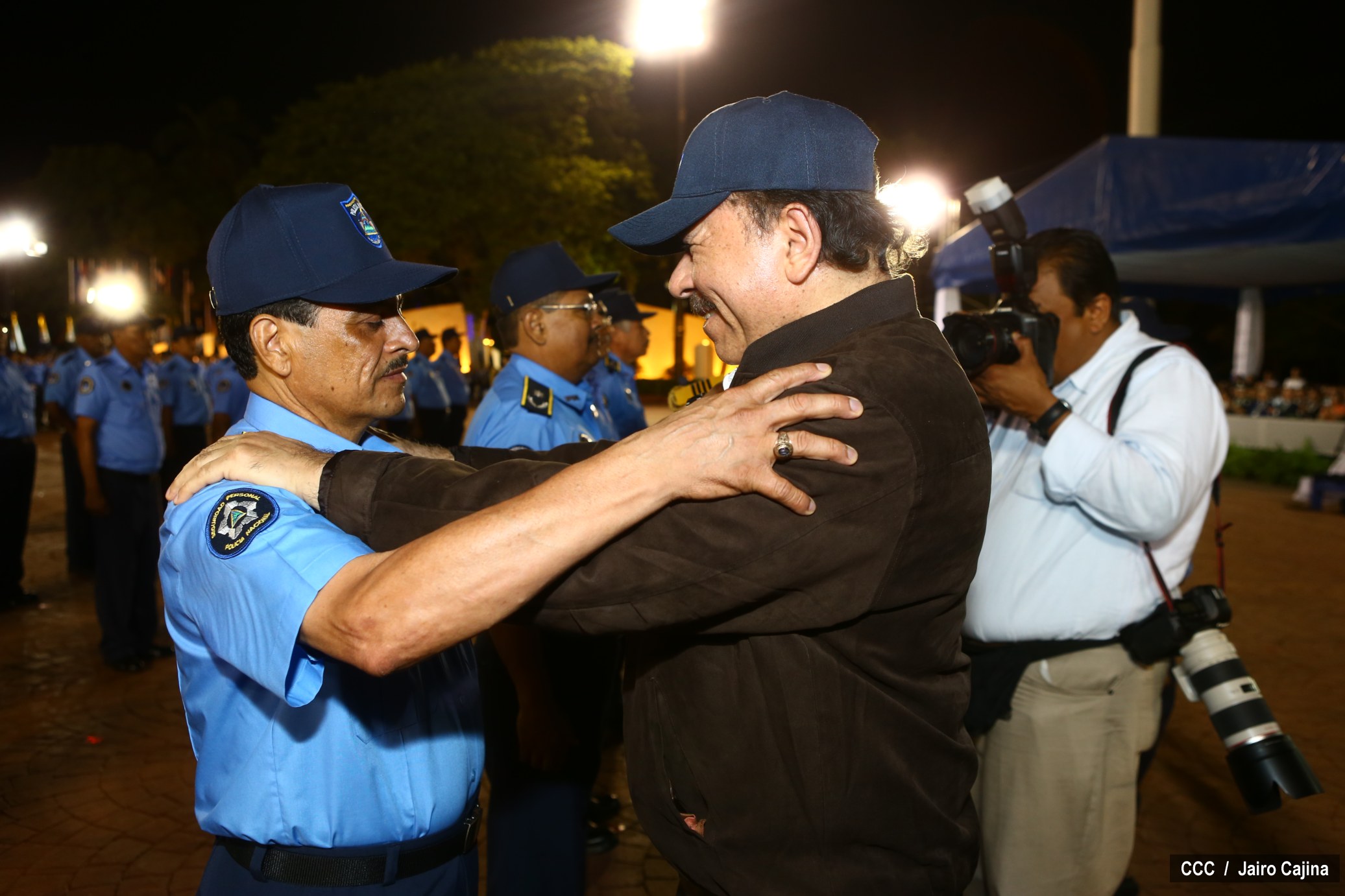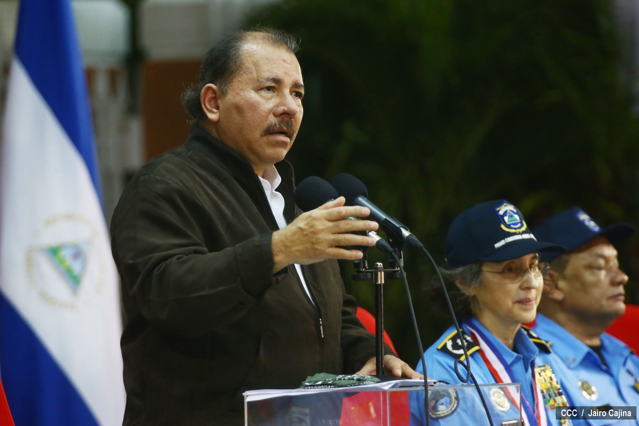 El Presidente de la República, Comandante Daniel Ortega Saavedra, encabezó el acto conmemorativo del 35 Aniversario de la fundación de la Policía Nacional, en el cual destacó la entrega y el compromiso de los miembros de esta institución para salvaguardar la paz y la estabilidad de todos los nicaragüenses.