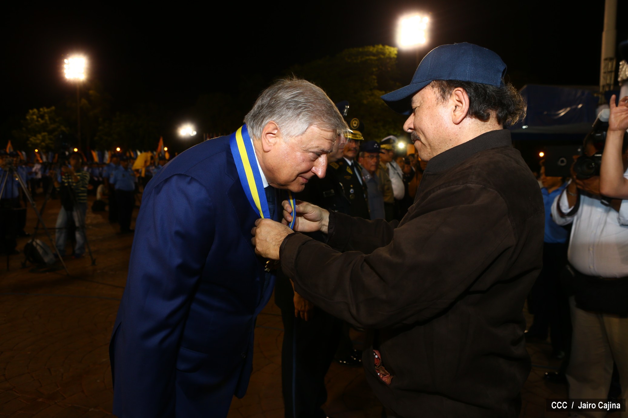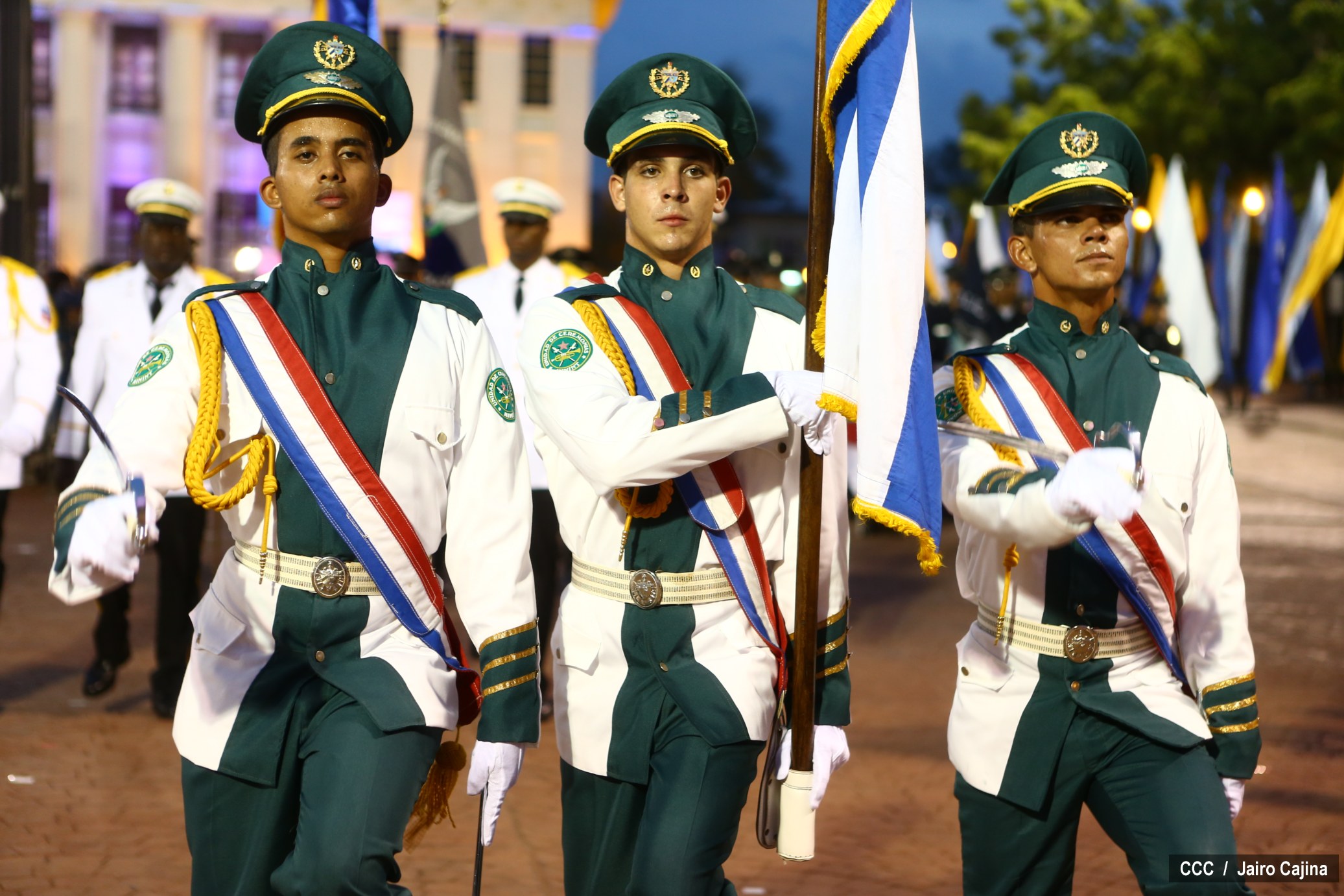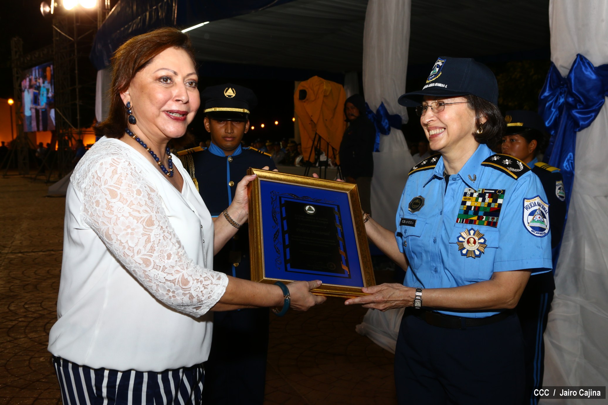 El Presidente de la República, Comandante Daniel Ortega Saavedra, encabezó el acto conmemorativo del 35 Aniversario de la fundación de la Policía Nacional, en el cual destacó la entrega y el compromiso de los miembros de esta institución para salvaguardar la paz y la estabilidad de todos los nicaragüenses.