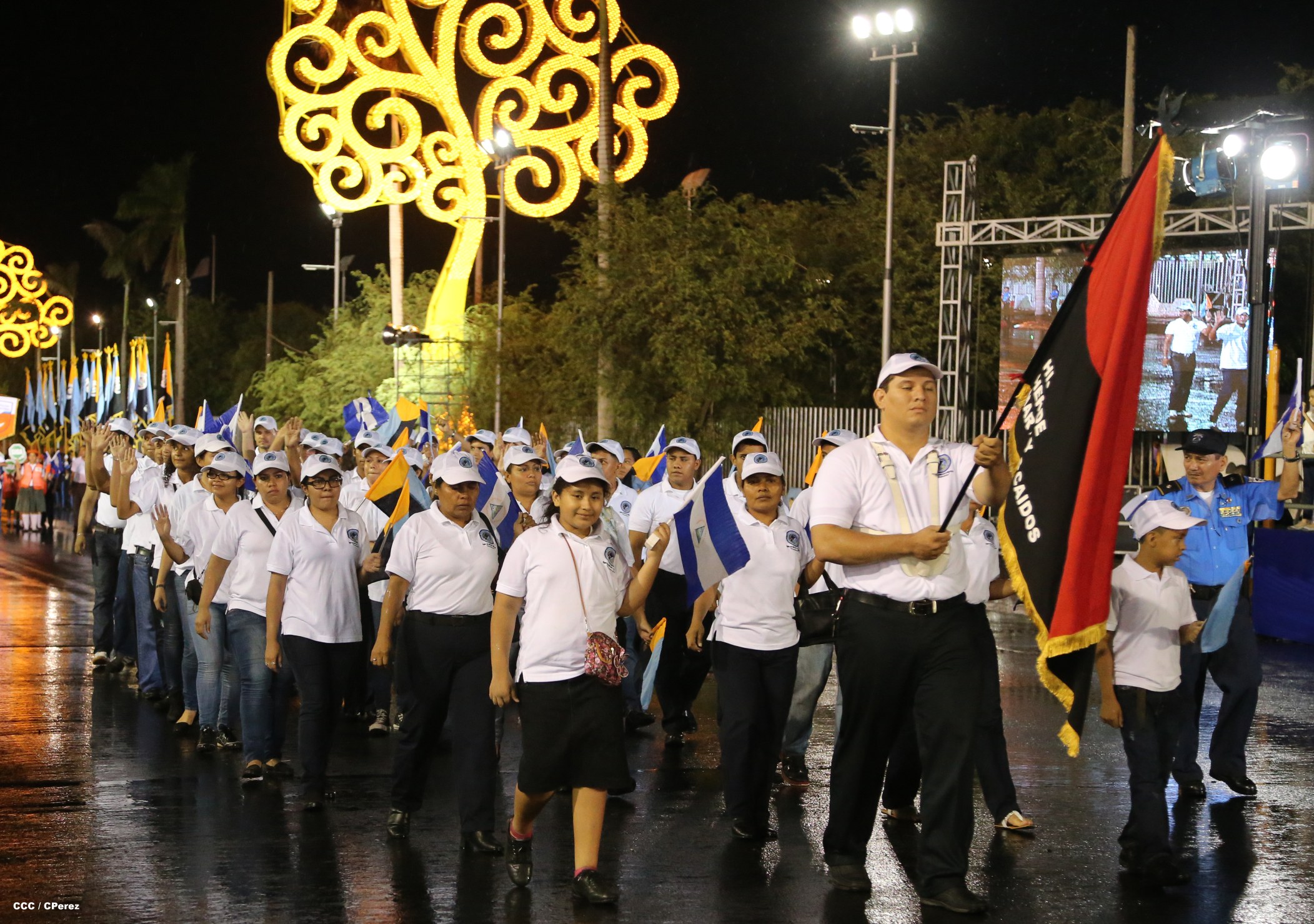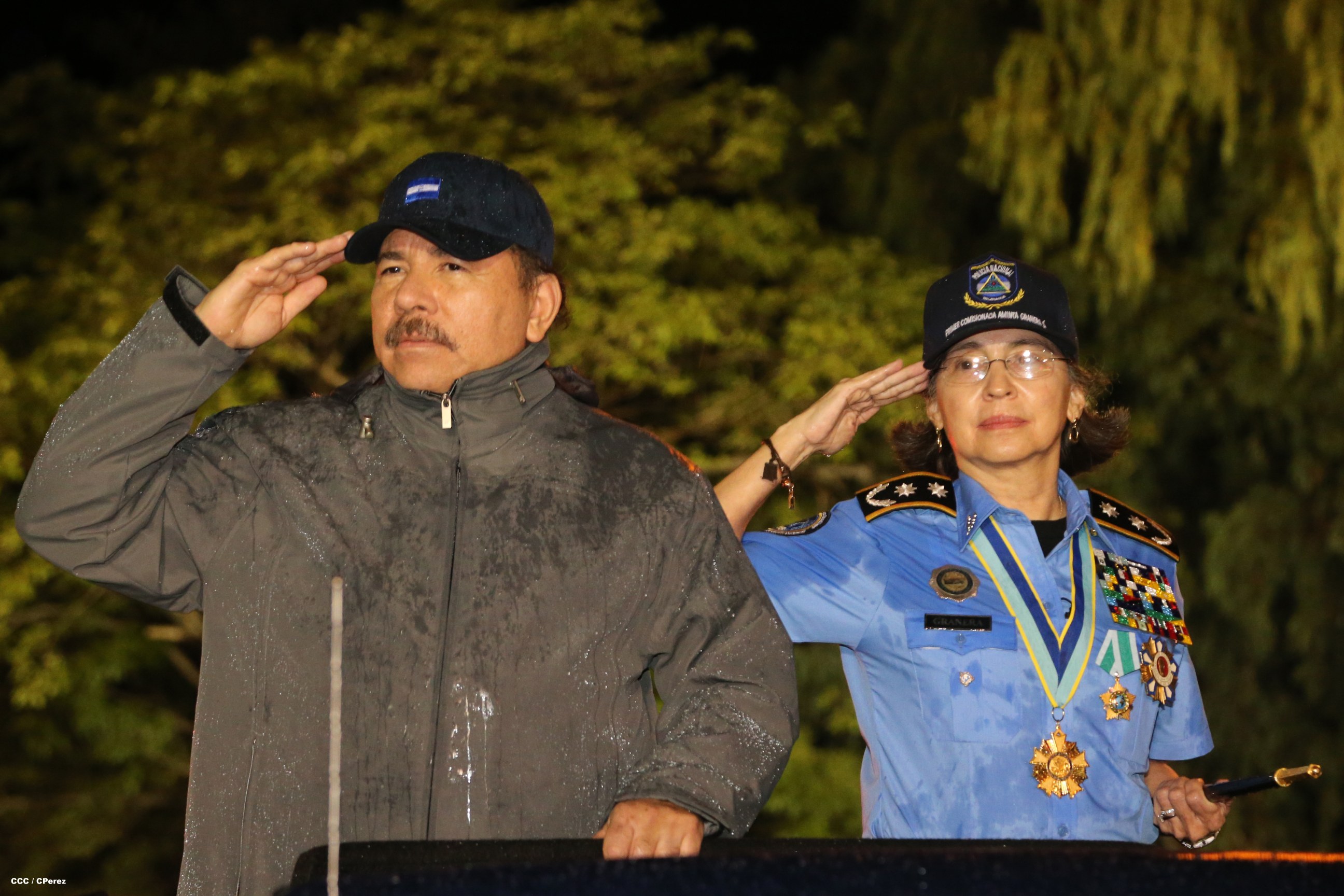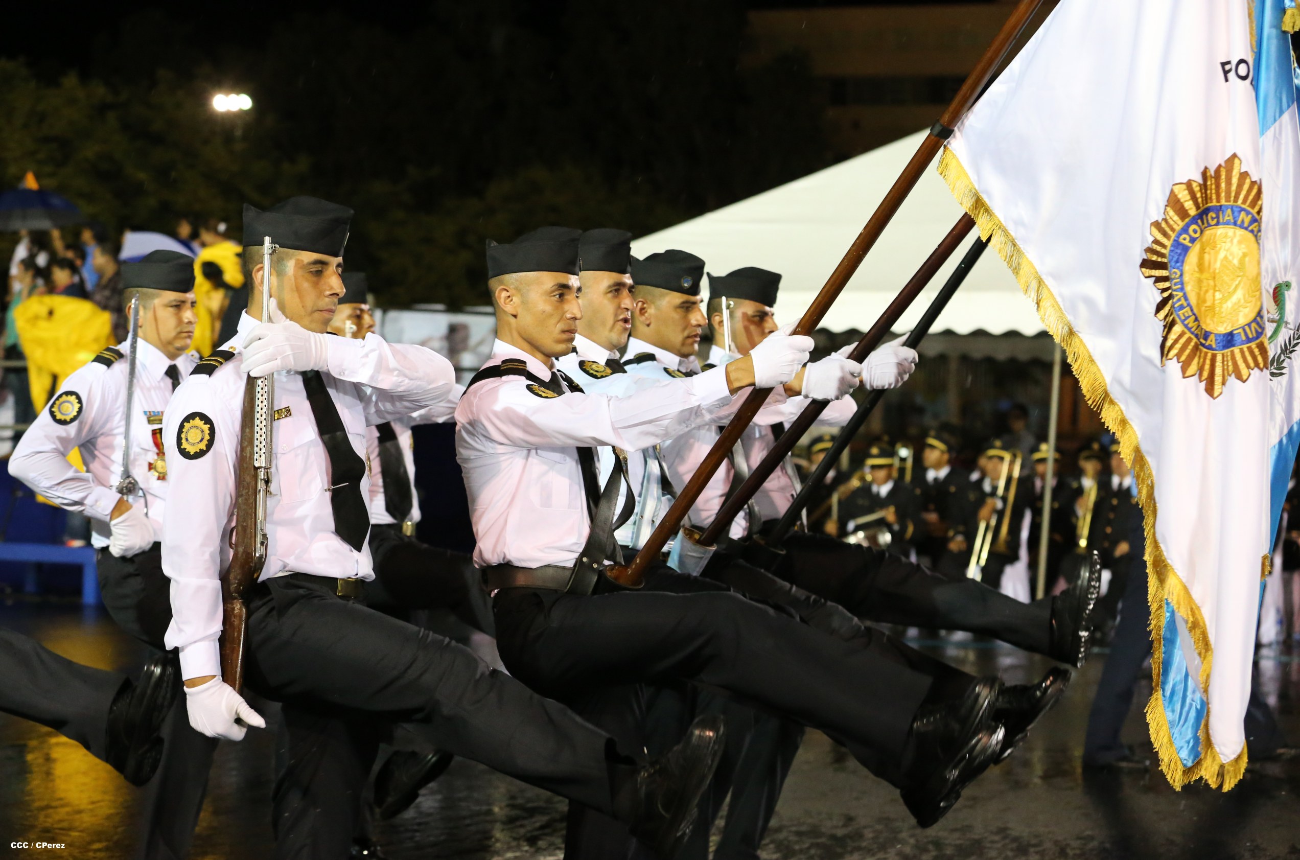 Desde la Avenida de Bolívar a Chávez, el Presidente de la República, Comandante Daniel Ortega Saavedra, presidió la noche de este jueves el desfile conmemorativo del 35 Aniversario de Fundación de la Policía Nacional, institución que atribuyó parte de los importantes logros que ha tenido en los últimos años Nicaragua en materia de paz y estabilidad.