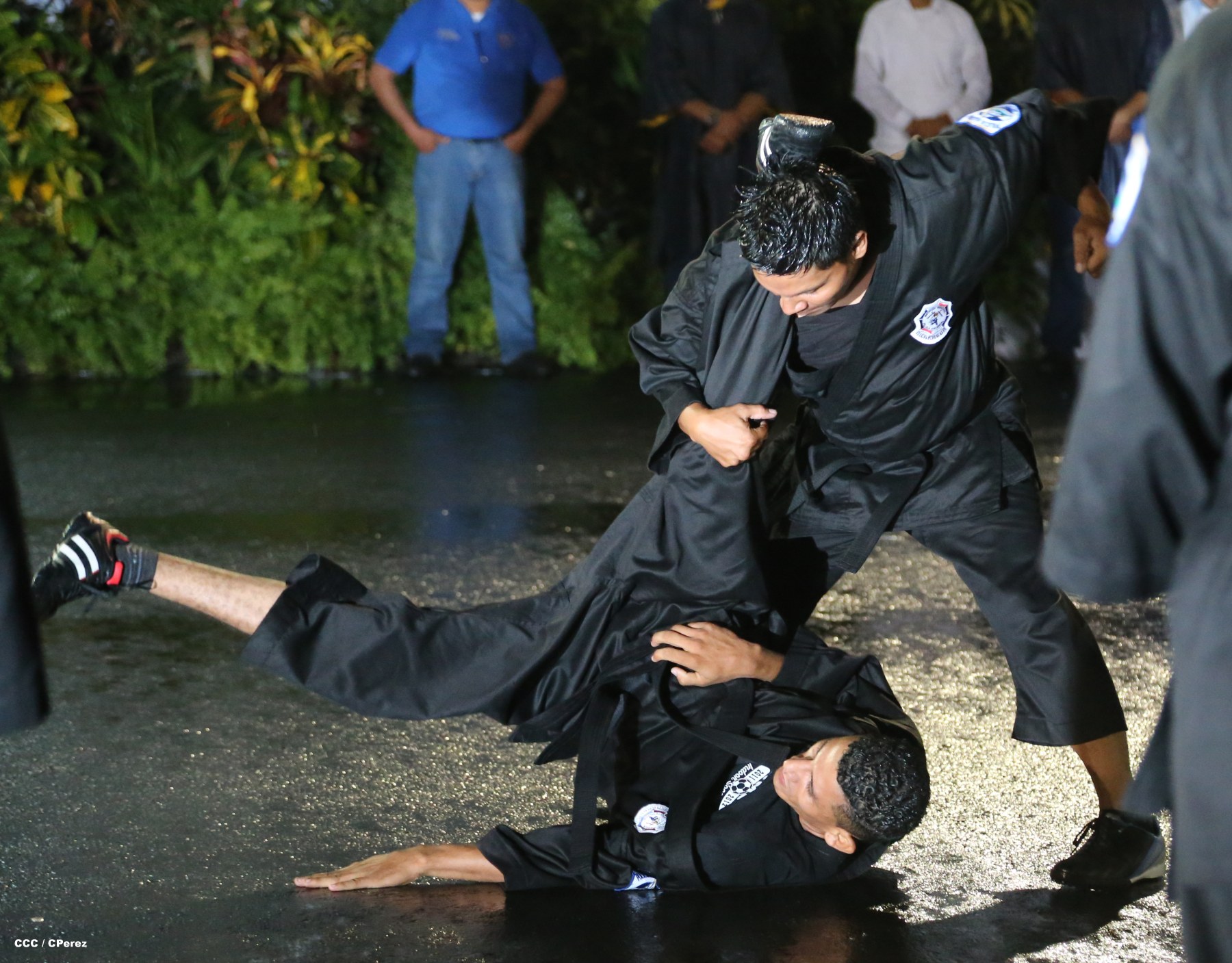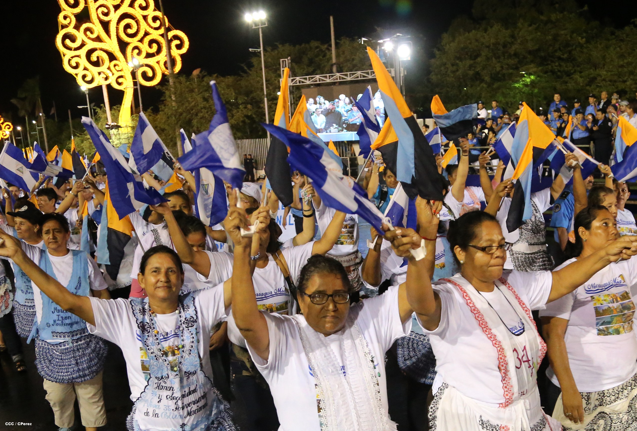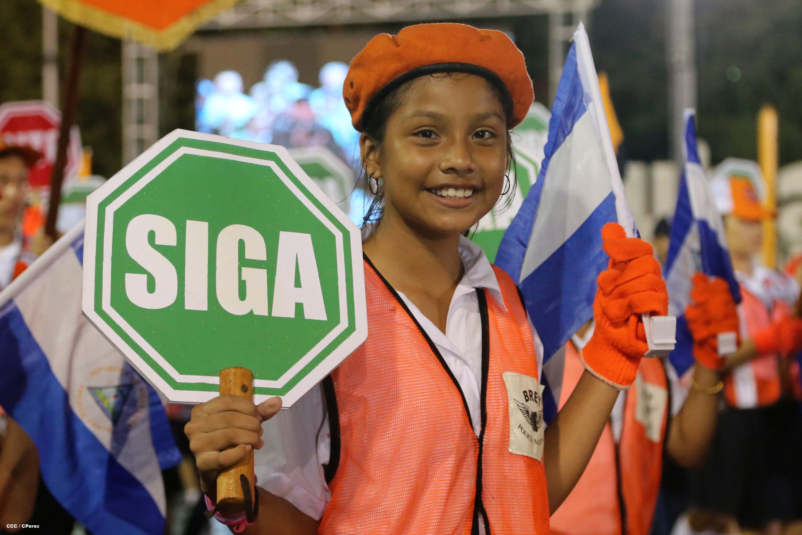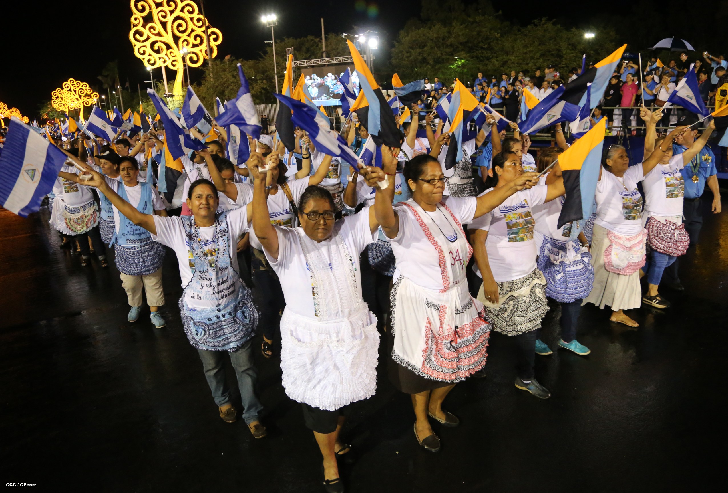 Desde la Avenida de Bolívar a Chávez, el Presidente de la República, Comandante Daniel Ortega Saavedra, presidió la noche de este jueves el desfile conmemorativo del 35 Aniversario de Fundación de la Policía Nacional, institución que atribuyó parte de los importantes logros que ha tenido en los últimos años Nicaragua en materia de paz y estabilidad.