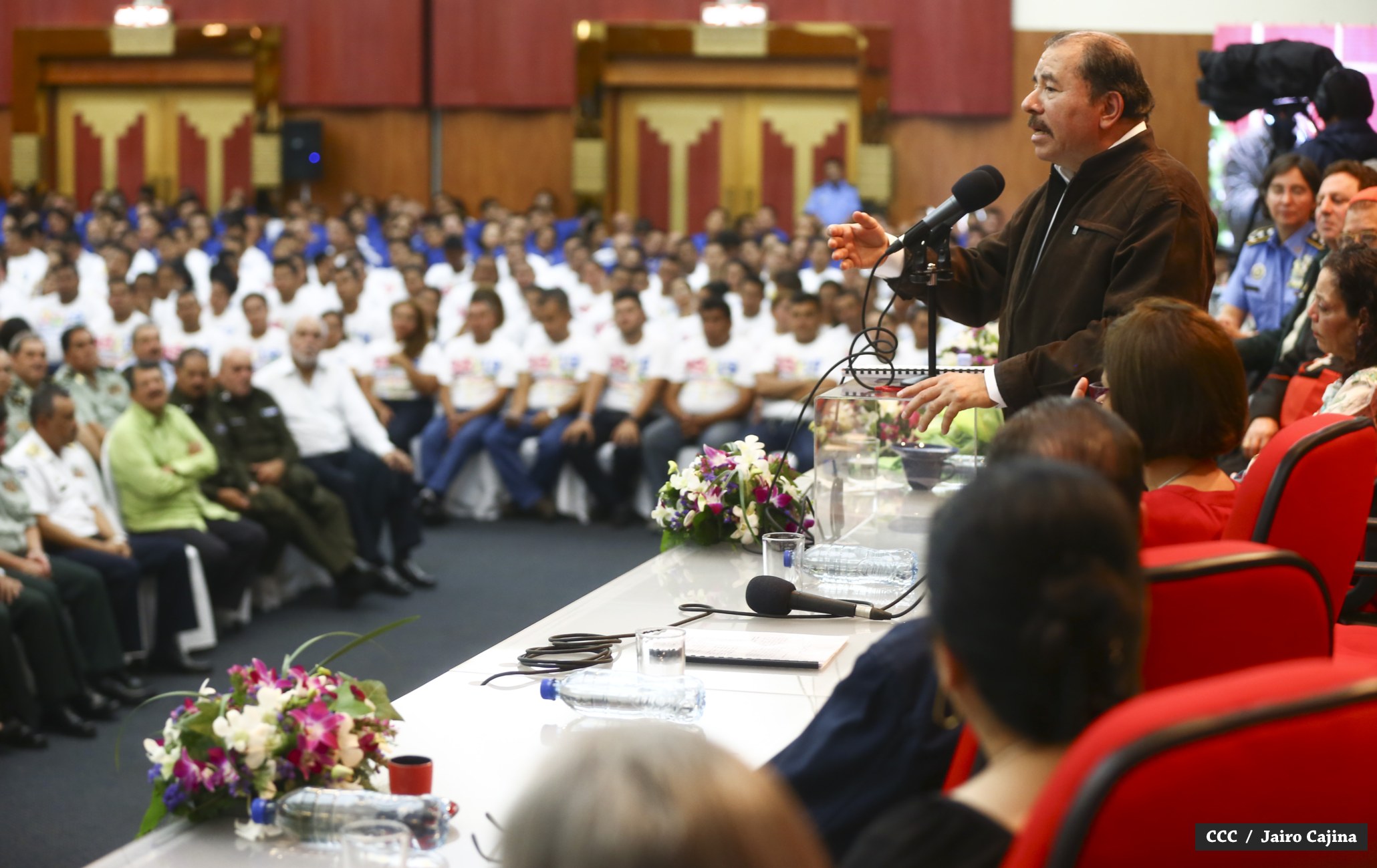 El Presidente Daniel Ortega y la Compañera Rosario Murillo encabezaron el acto del 35 Aniversario del Ministerio de Gobernación (MIGOB).