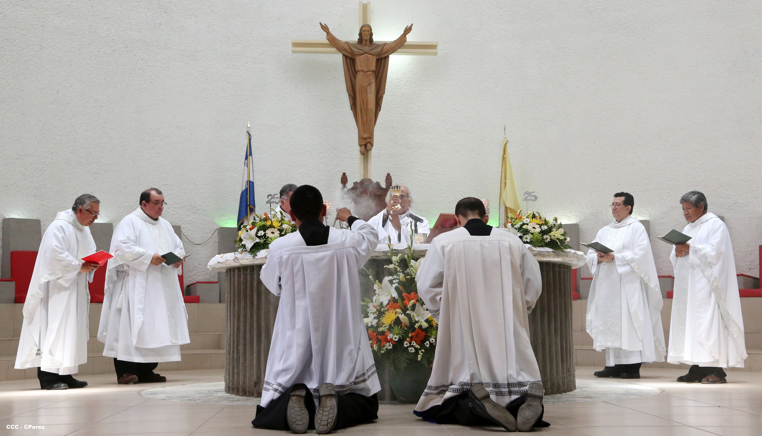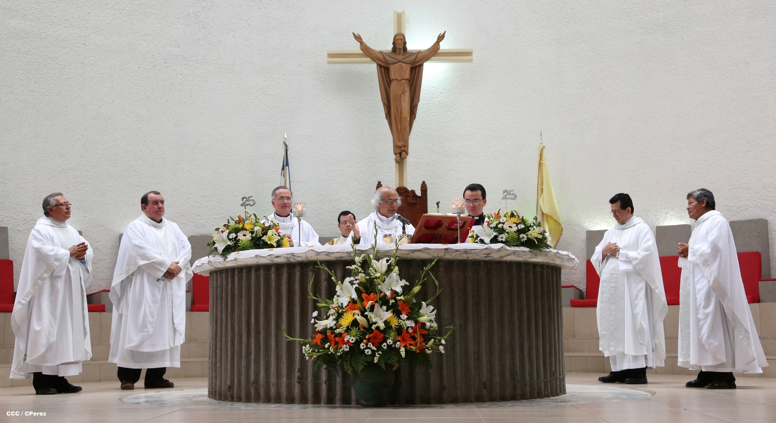 Su Eminencia Reverendísima, Cardenal Leopoldo Brenes celebró en la Catedral Metropolitana los 25 años de vida sacerdotal de Monseñor Ismael Serrano, Carlos Avilés, Mario Guevara, Miguel Mántica y Gustavo Zúniga.