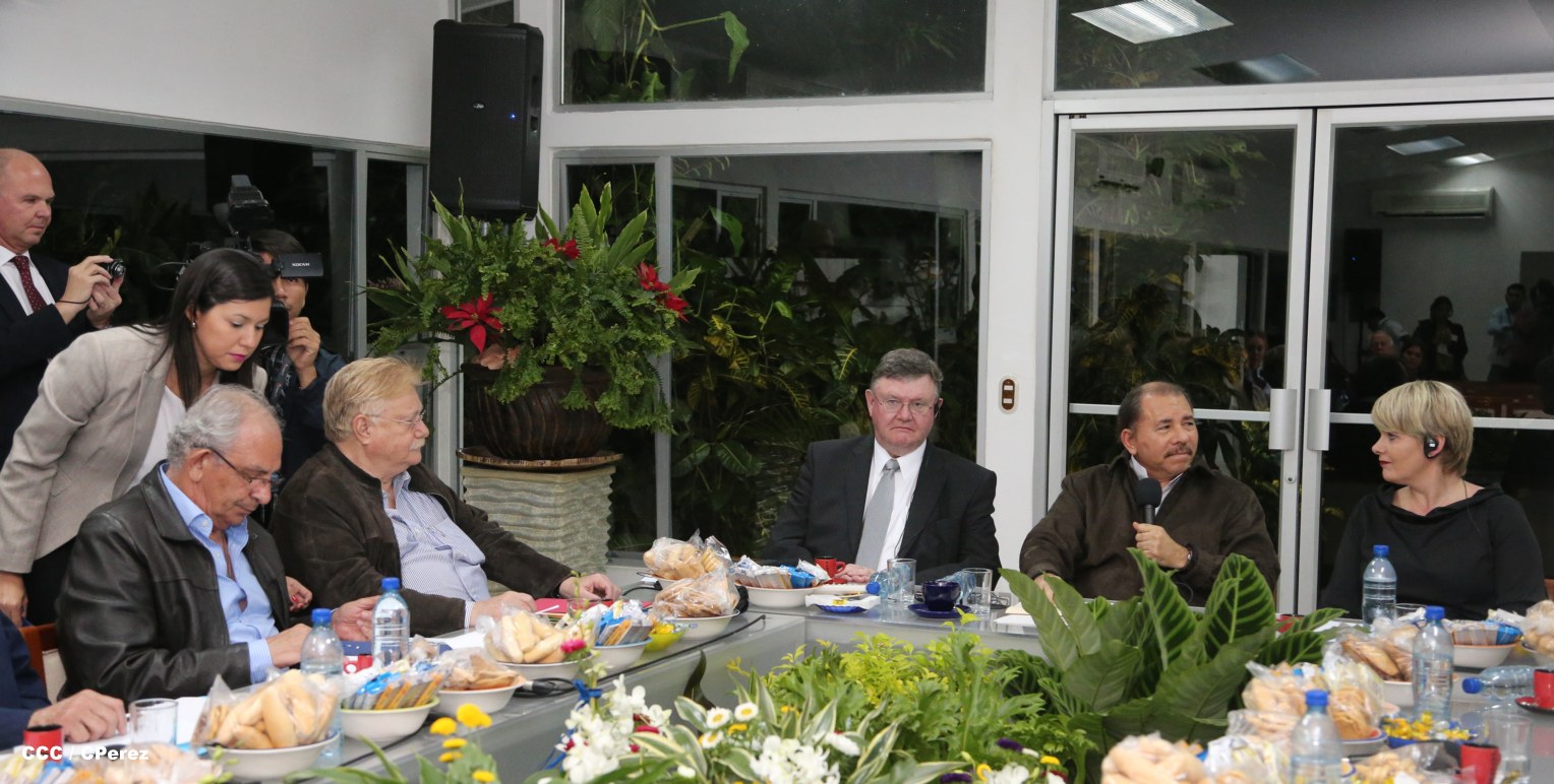 El Presidente de la República, Comandante Daniel Ortega Saavedra, la noche de este martes sostuvo un encuentro con una delegación de funcionarios de Gobierno y empresarios de Islandia, con quienes se suscribieron dos importantes acuerdos marcos de cooperación y exploración de inversiones en el sector de energía geotérmica.