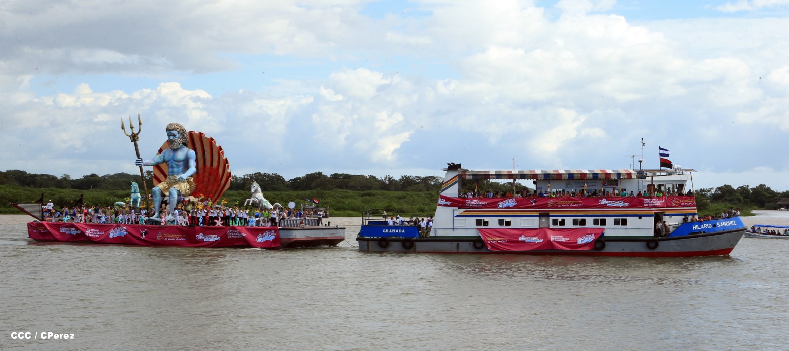 Por sexto año consecutivo el municipio de San Carlos, en el departamento de Río San Juan, se vistió de colorido, tradición y cultura con la realización del Carnaval Acuático, evento en el que los asistentes disfrutaron de la majestuosidad de 25 carrozas, las que surcaron las aguas de nuestro Rio San Juan, siendo este año el mayor atractivo la carroza nombrada Neptuno, la cual portaba la esfinge de Poseidón, el Dios de los mares.
