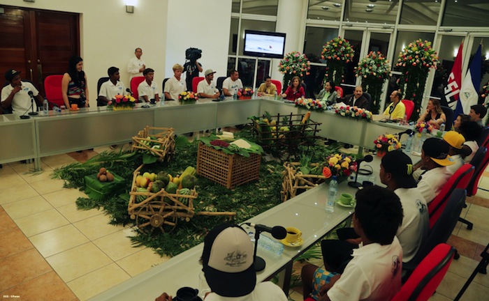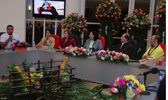 El Presidente de la República, Comandante Daniel Ortega, sostuvo una reunión con el Presidente de la Asociación Internacional de Surf, Fernando Aguerre, y miembros de la Asociación de Surfistas de San Juan del Sur, previo al inicio de la Onceava Edición d