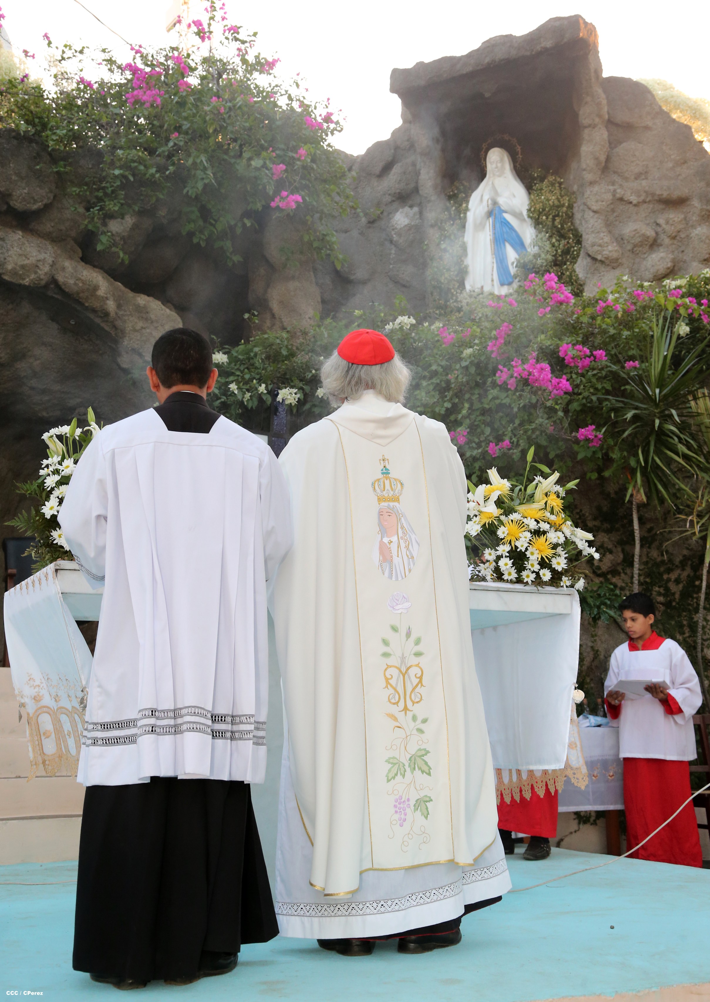 El Cardenal Leopoldo Brenes ofrece eucaristía en el Santuario Mariano Nuestra Señora de Lourdes, ubicado en la zona de la Gruta Xavier, en Managua.