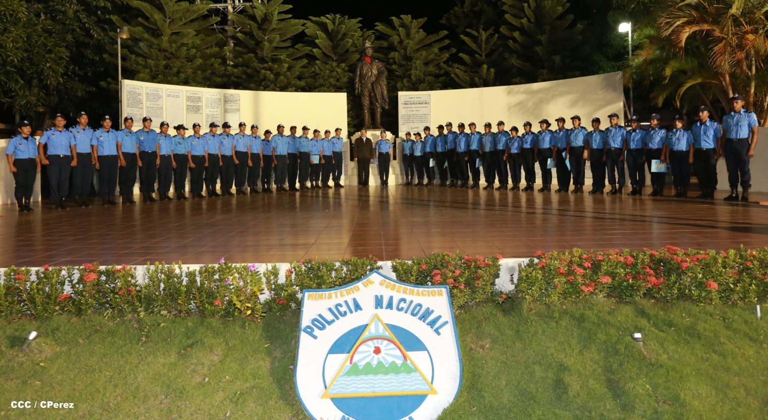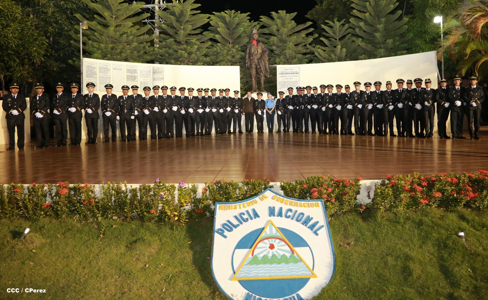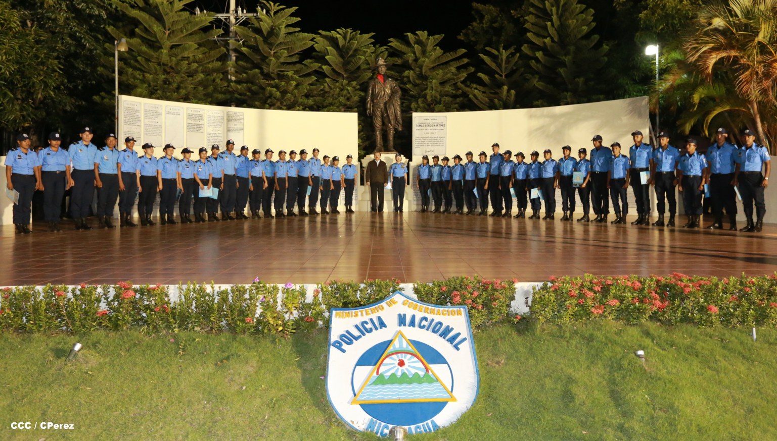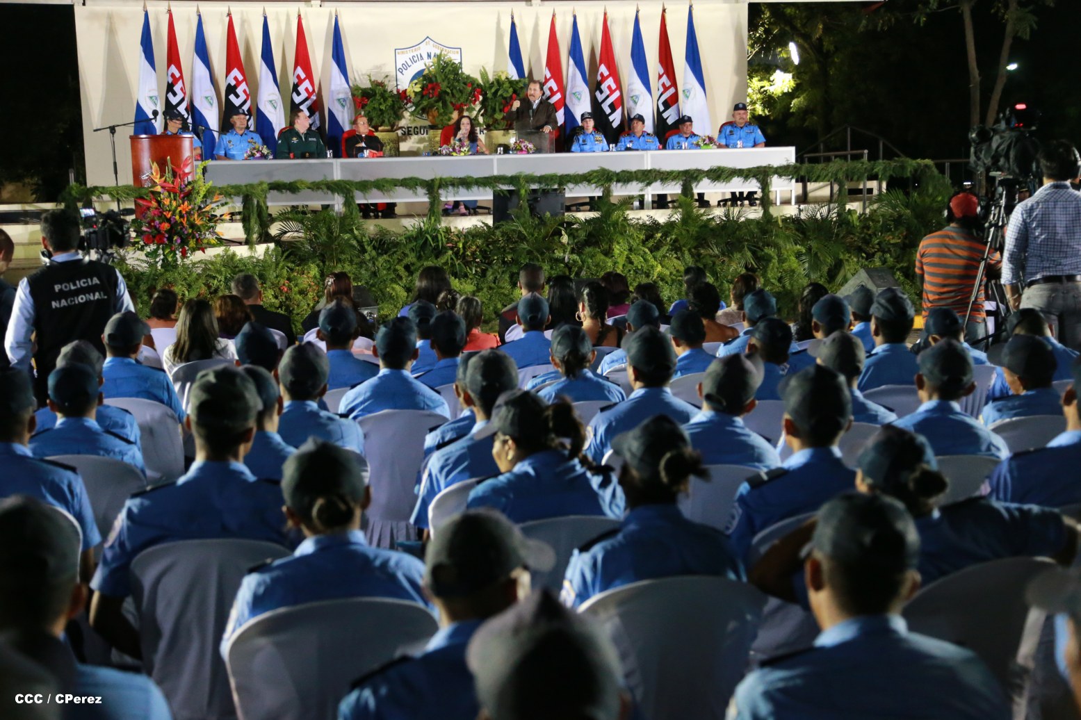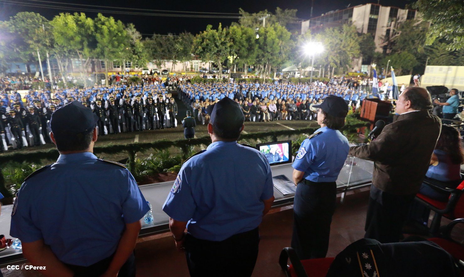 El Presidente de la República, Comandante Daniel Ortega, y la Coordinadora del Consejo de Comunicación y Ciudadanía, Compañera Rosario Murillo, presidieron este martes la XVII Promoción de Cadetes y Técnicos Medios de la Policía Nacional.
