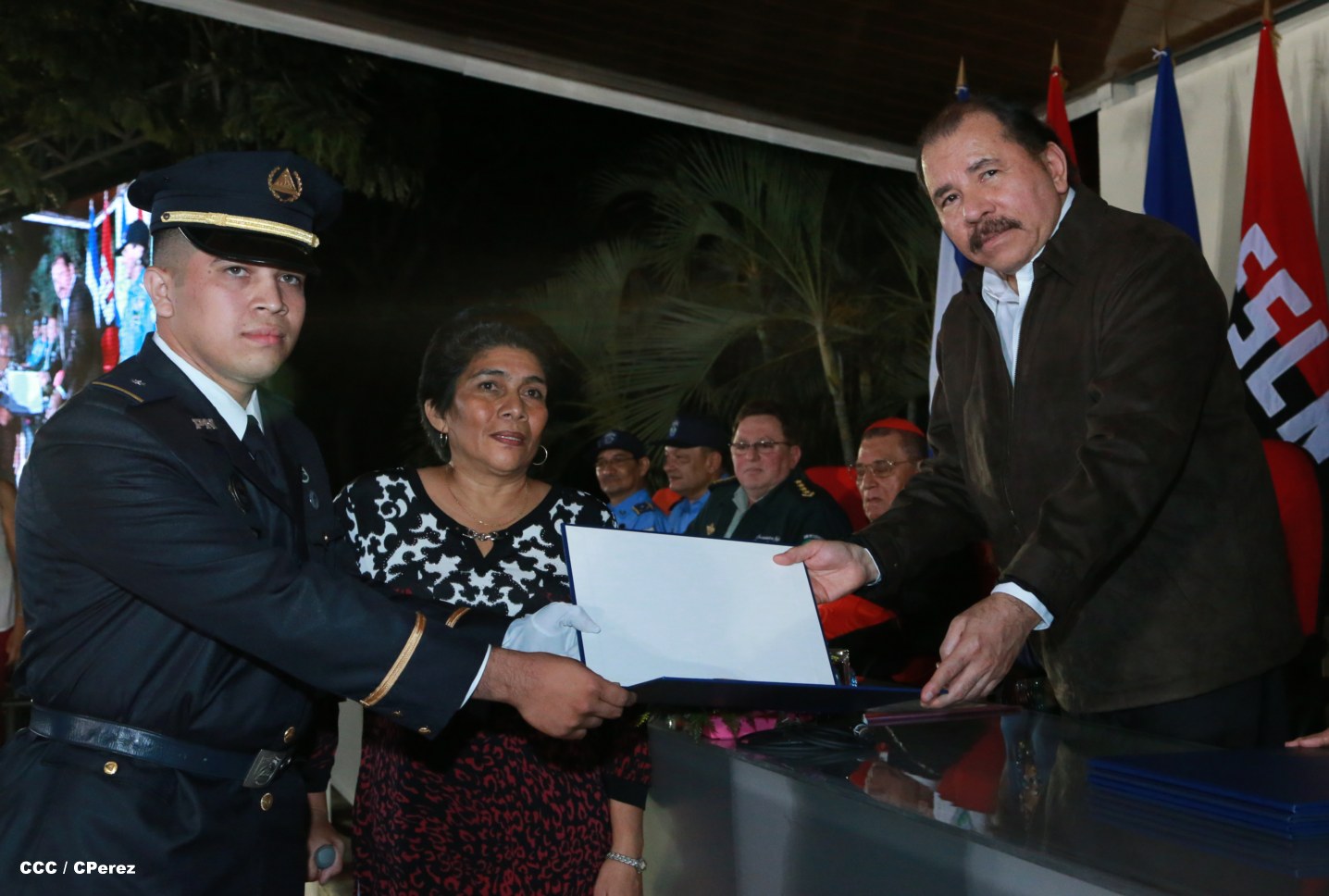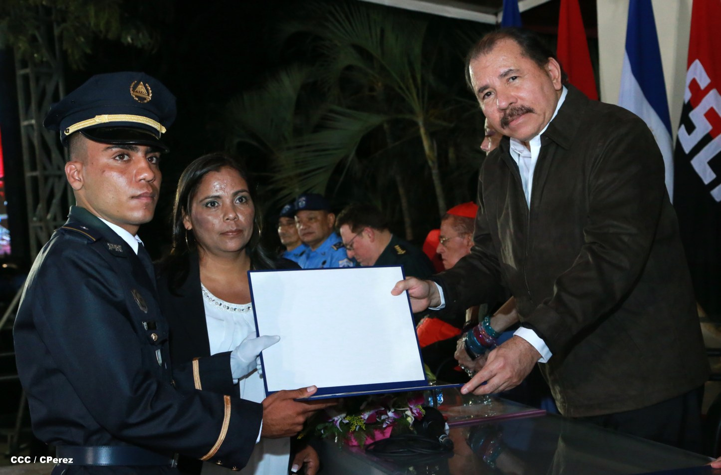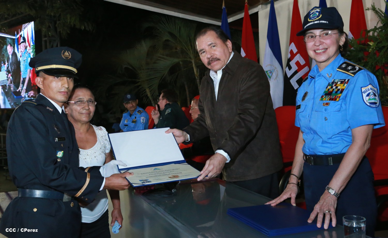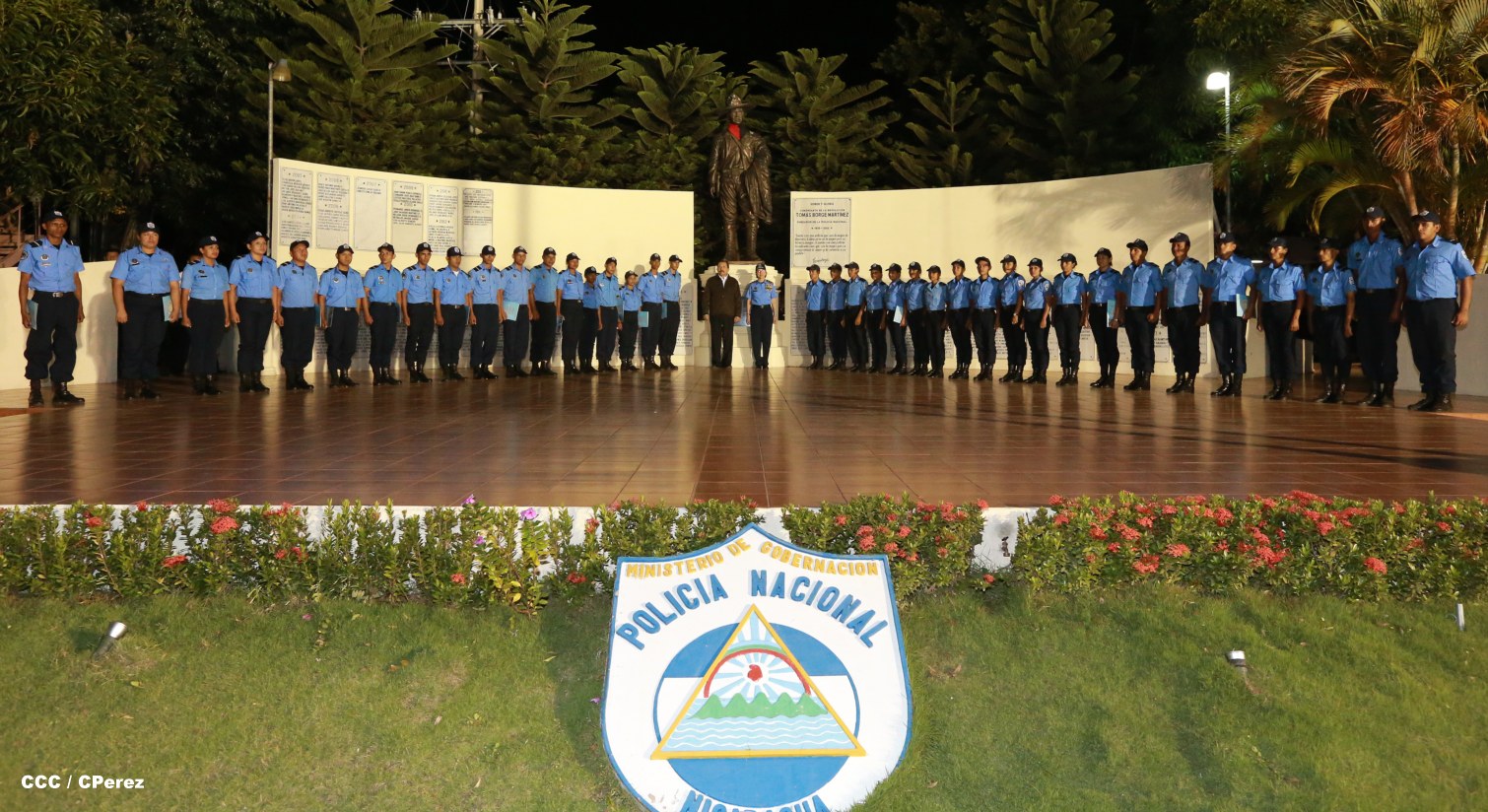 El Presidente de la República, Comandante Daniel Ortega, y la Coordinadora del Consejo de Comunicación y Ciudadanía, Compañera Rosario Murillo, presidieron este martes la XVII Promoción de Cadetes y Técnicos Medios de la Policía Nacional.