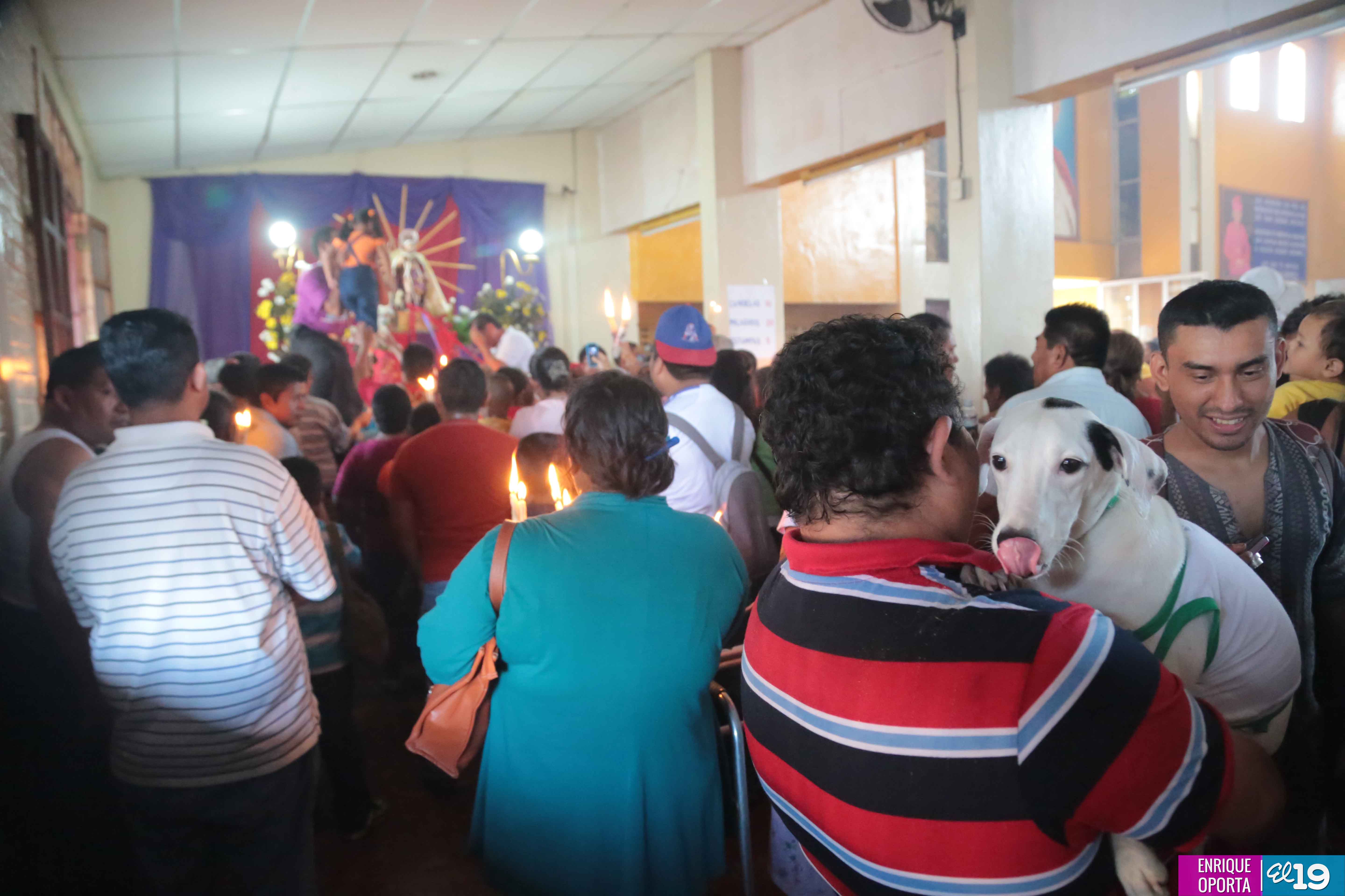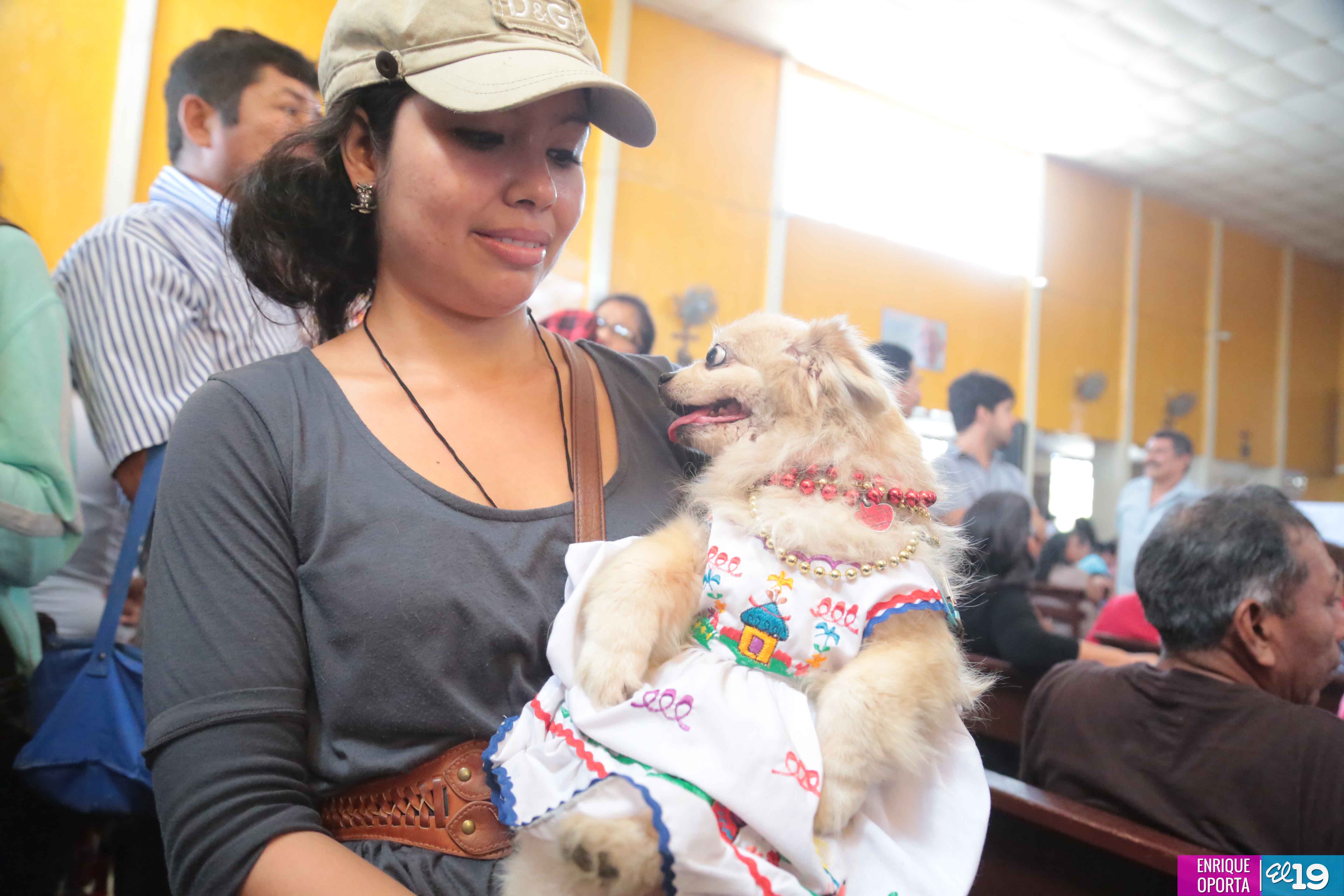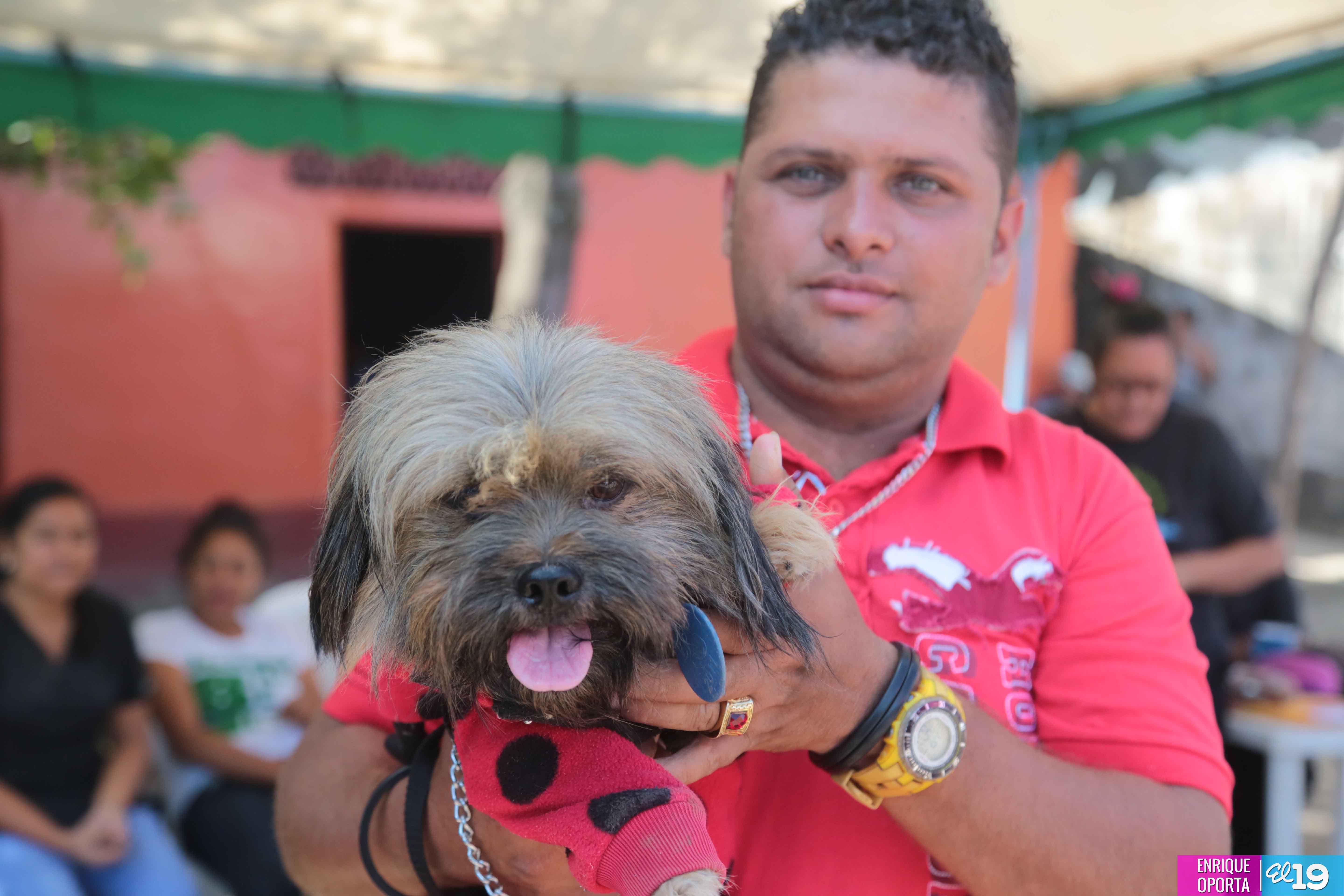 Engalanados con trajes coloridos y motivos especiales, centenares de perros de todas las razas fueron presentados a San Lázaro, durante la celebración de su solemnidad que se realiza en el municipio de Masaya.