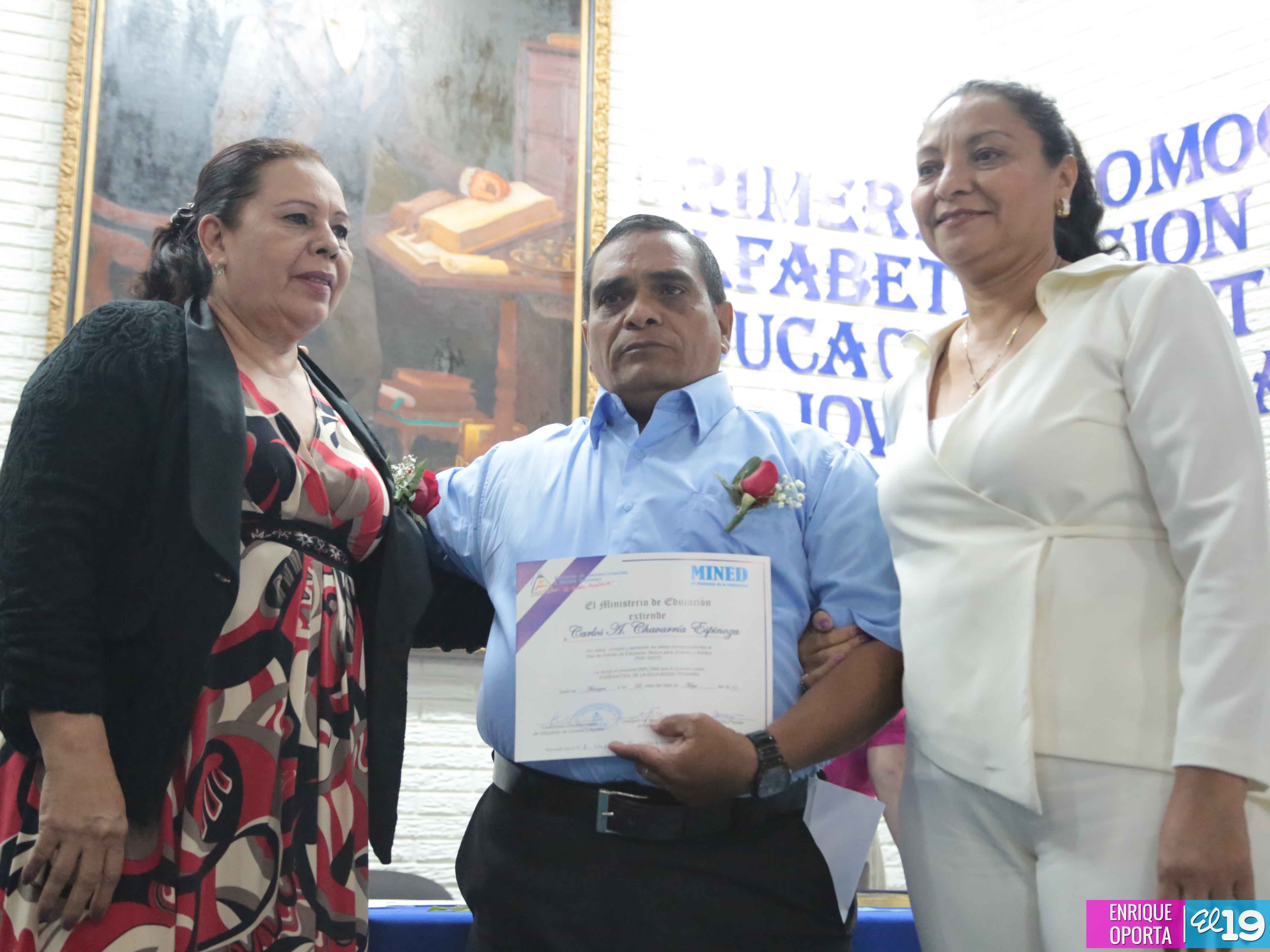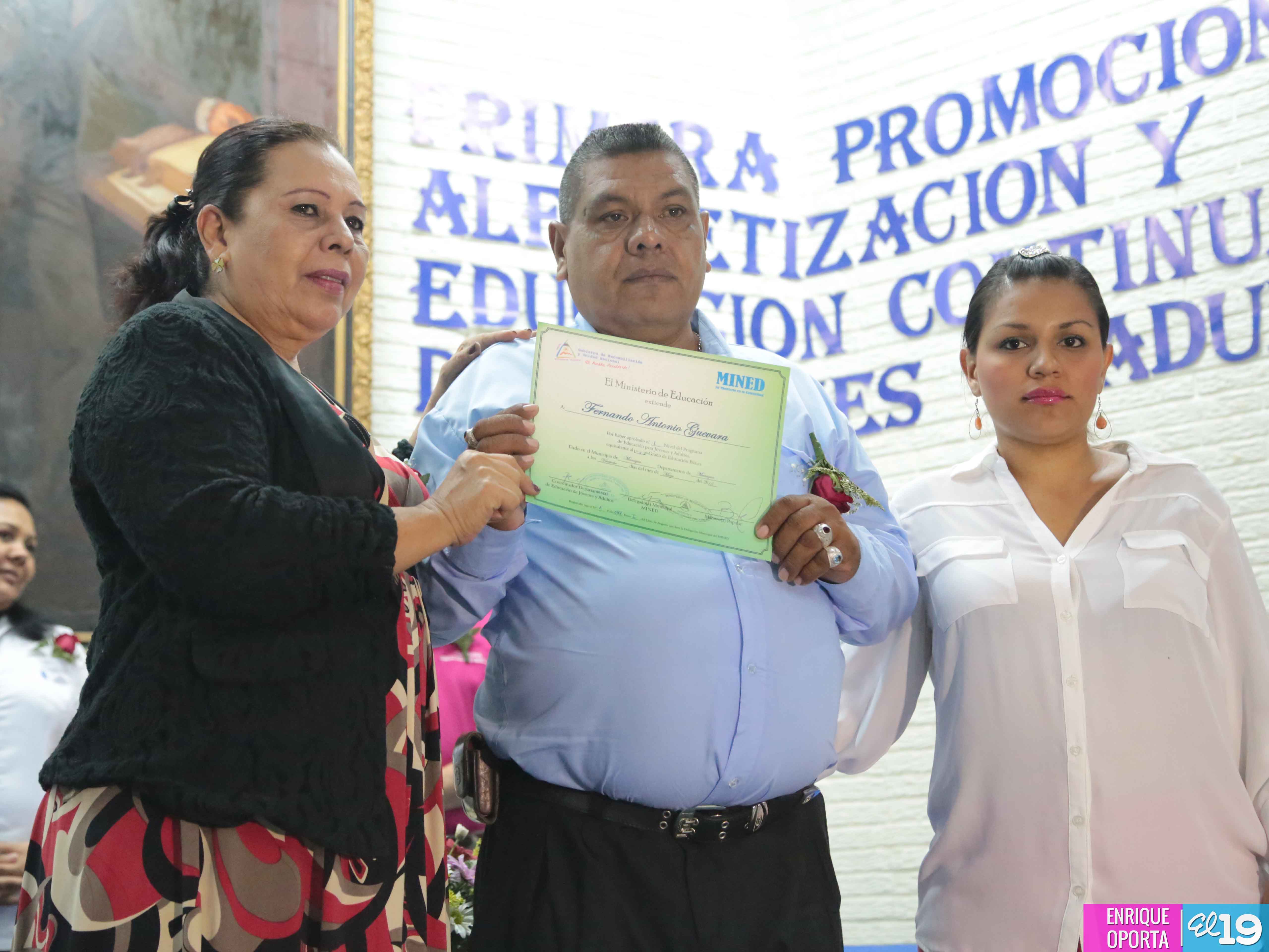 Con el apoyo del Ministerio de Educación (Mined), la Alcaldía de Managua realizó este lunes la primera Promoción de Alfabetización y Educación Continua de 17 jóvenes y adultos trabajadores de las diferentes áreas y departamentos de la Alcaldía de Managua.