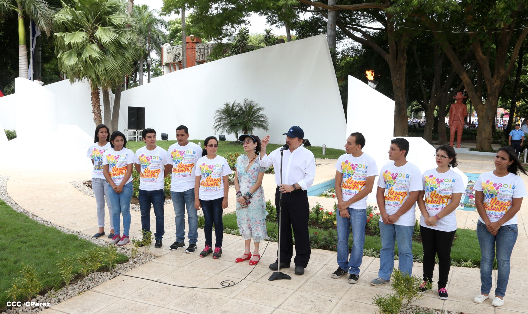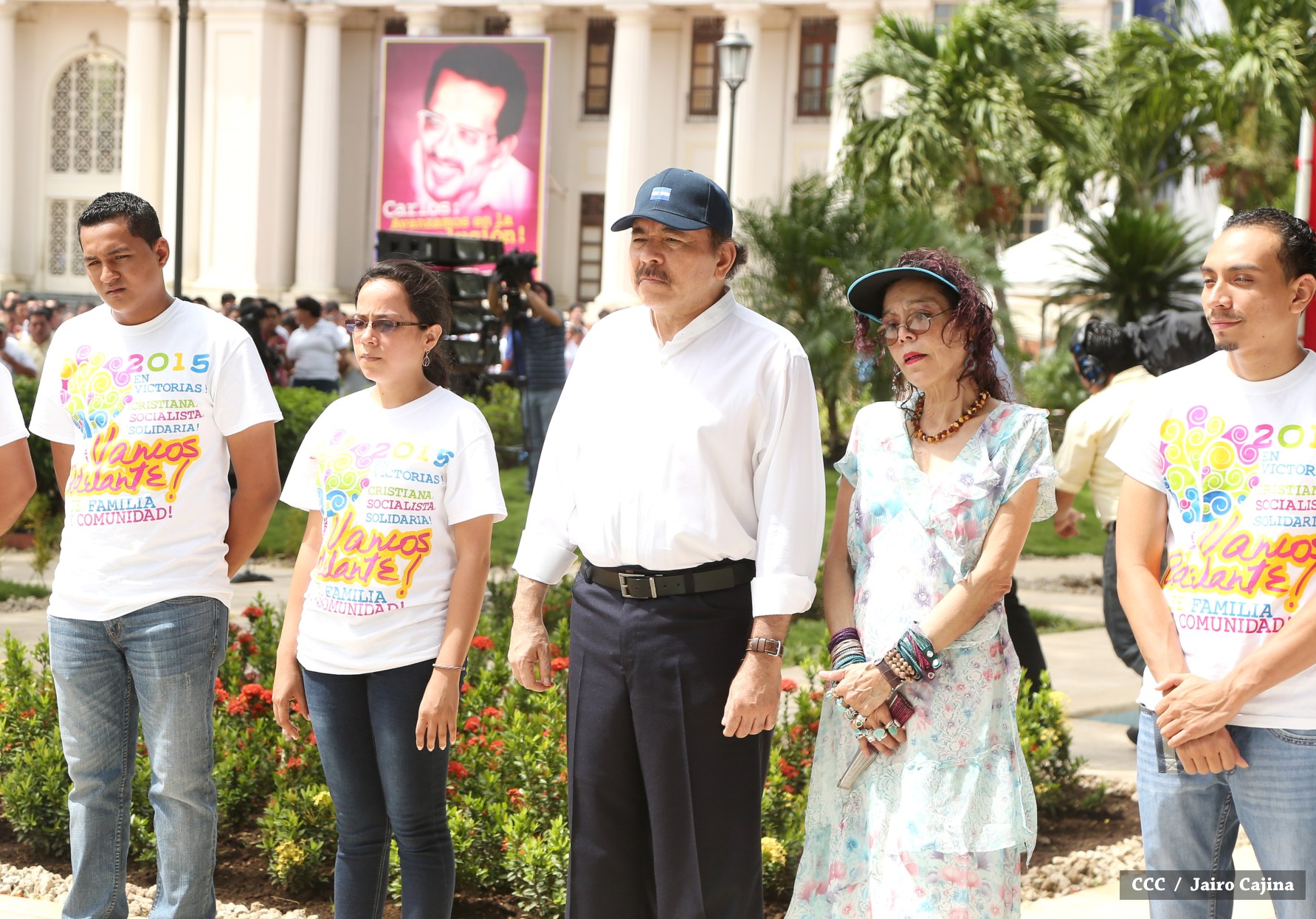 El Presidente de la República Comandante Daniel Ortega Saavedra y la compañera Rosario Murillo, coordinadora del Consejo de Comunicación y Ciudadanía, junto a miembros de la Juventud Sandinista 19 de Julio, rindieron honores al Comandante en Jefe de la Revolución Popular Sandinista, Carlos Fonseca Amador, en celebración del 79 aniversario de su natalicio.