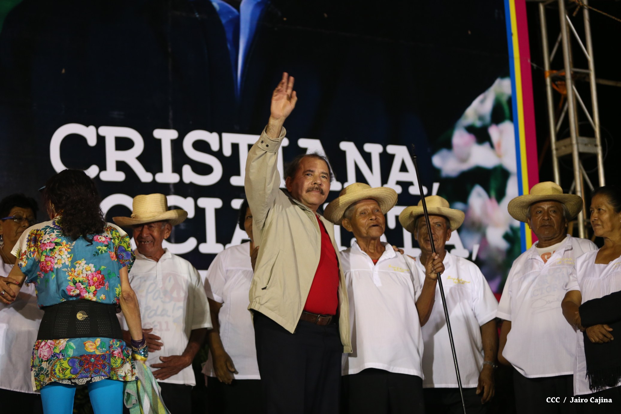 El Comandante-Presidente Daniel Ortega y la Coordinadora del Consejo de Comunicación, Compañera Rosario Murillo, arriban a la combativa comunidad de Monimbó, en la culminación del 36 Aniversario del Repliegue Táctico a Masaya.