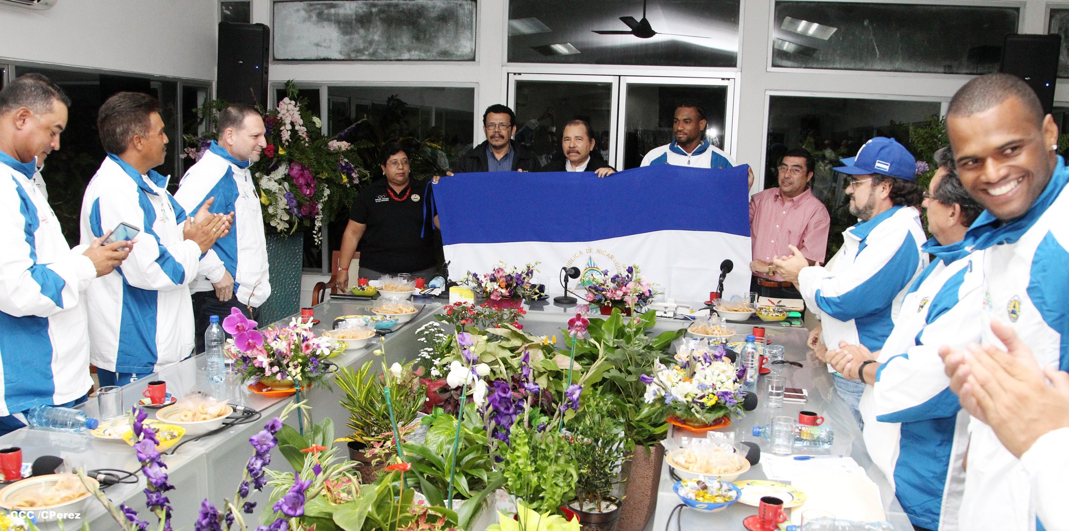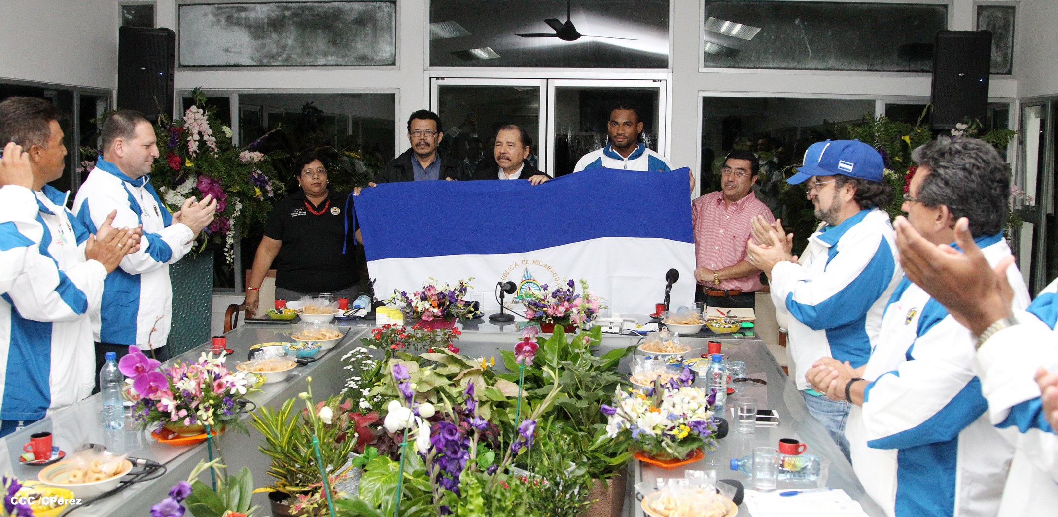 El Presidente de la República, Comandante Daniel Ortega Saavedra, abanderó a la delegación de atletas nicaragüenses que representarán al país en los XVII Juegos Panamericanos que se desarrollarán entre el 10 y el 26 de julio del 2015, en Toronto, Canadá.