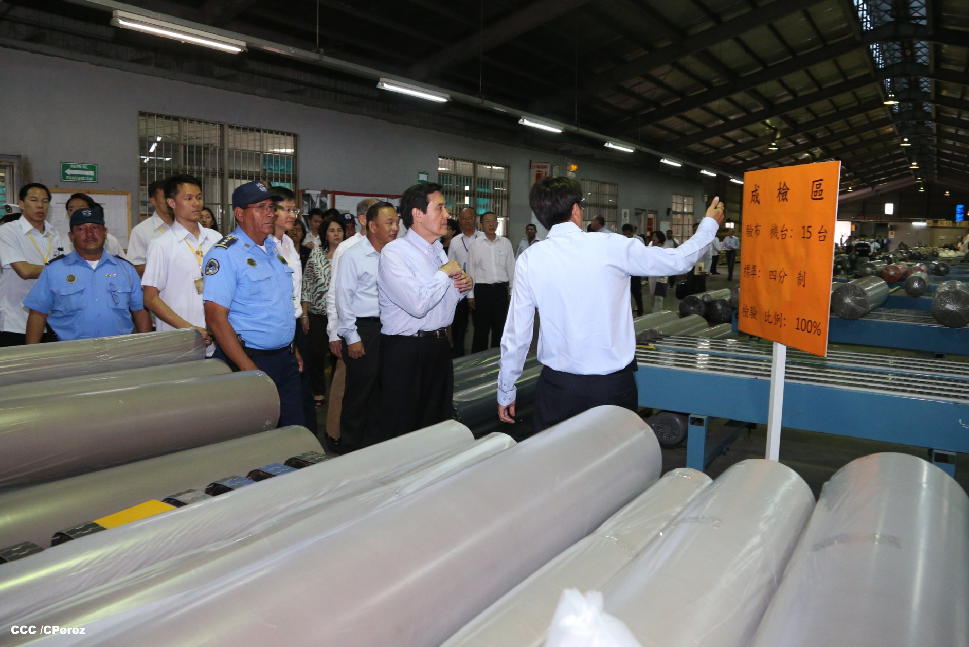 El Presidente Ma Ying-jeou realizó un recorrido por la Empresa de Zona Franca Alpha Textil Nicaragua S.A., de inversión taiwanesa, que se ubica en el kilómetro 15.5 de la carretera nueva a León, en el municipio de Mateare.