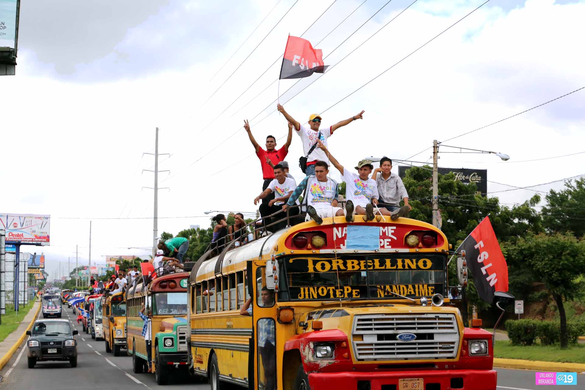 Familias de Masaya y Granada entraron en caravana a Managua para celebrar el 36 Aniversario de la Revolución Popular Sandinista.